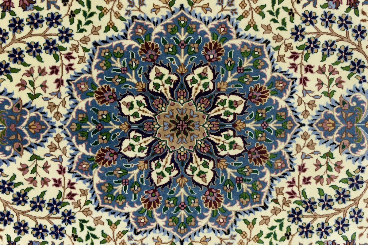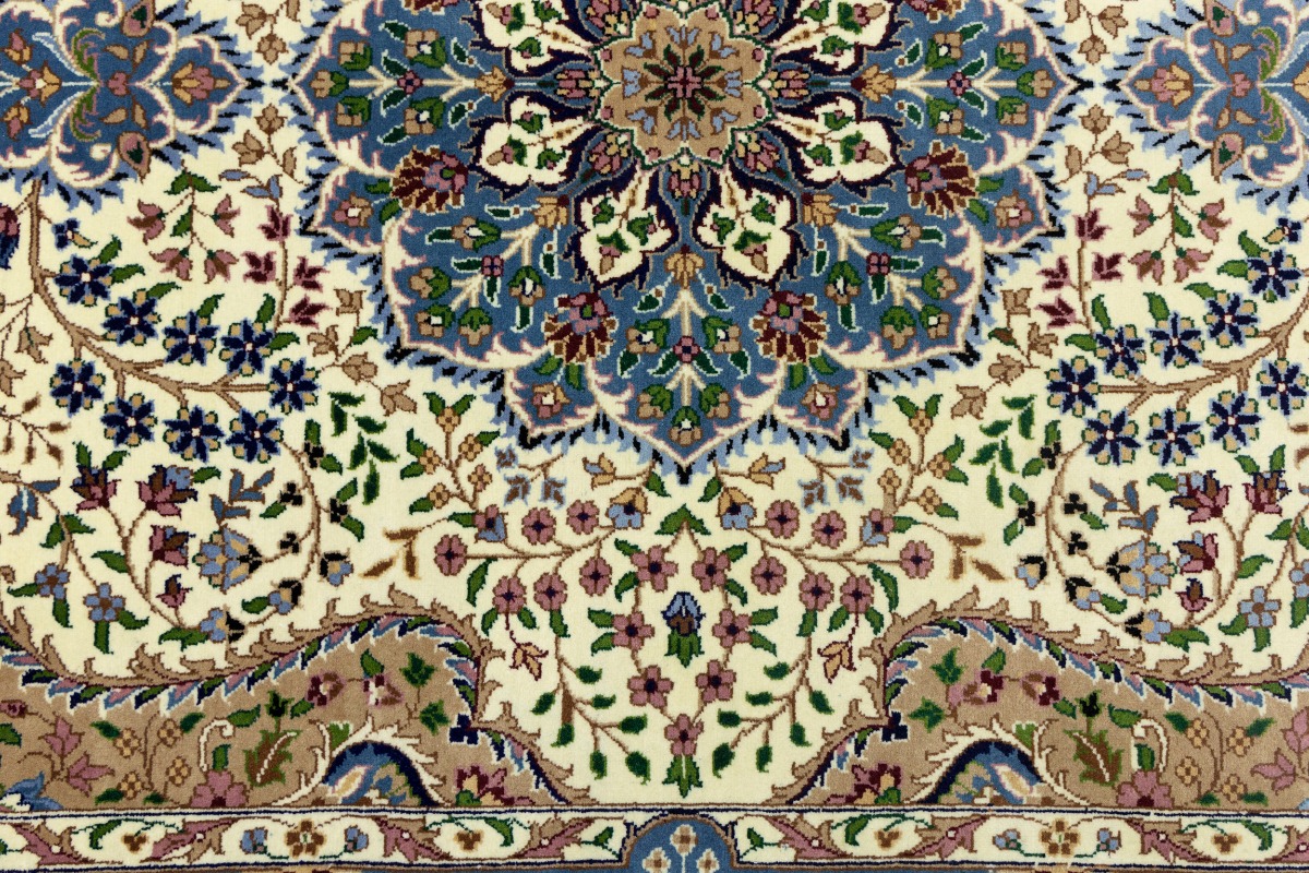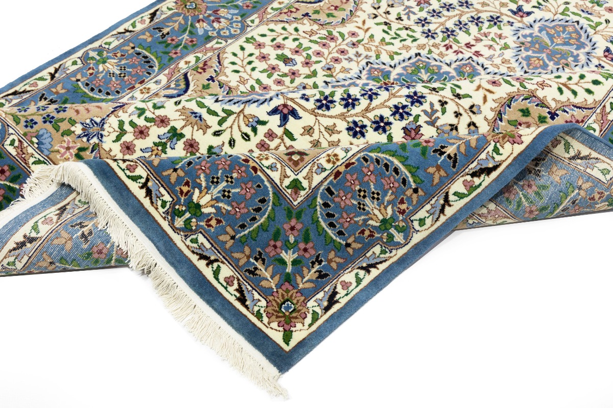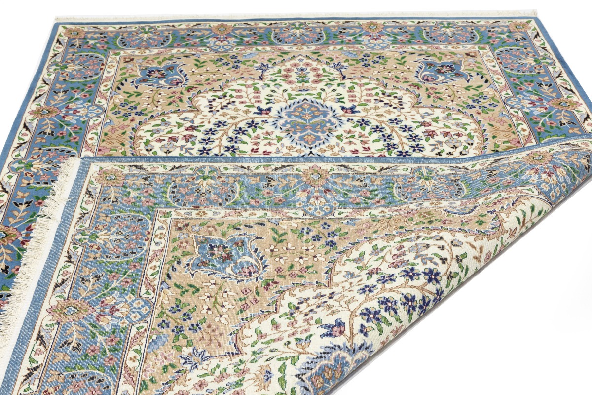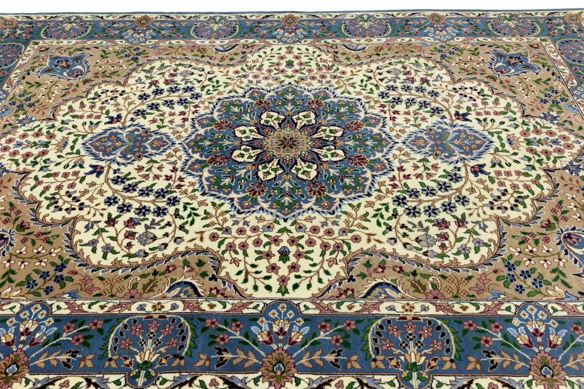Handmade 6'5X9'2 cream Oriental rug made with natural dyes (fine wool pile and cotton foundation), superior knot count, and appealing ancient designs. This Oriental rug never will go out of style and would be among your most valuable treasures.