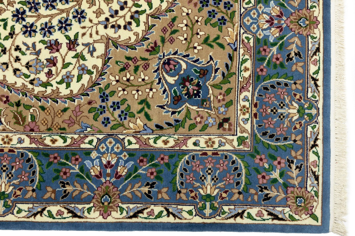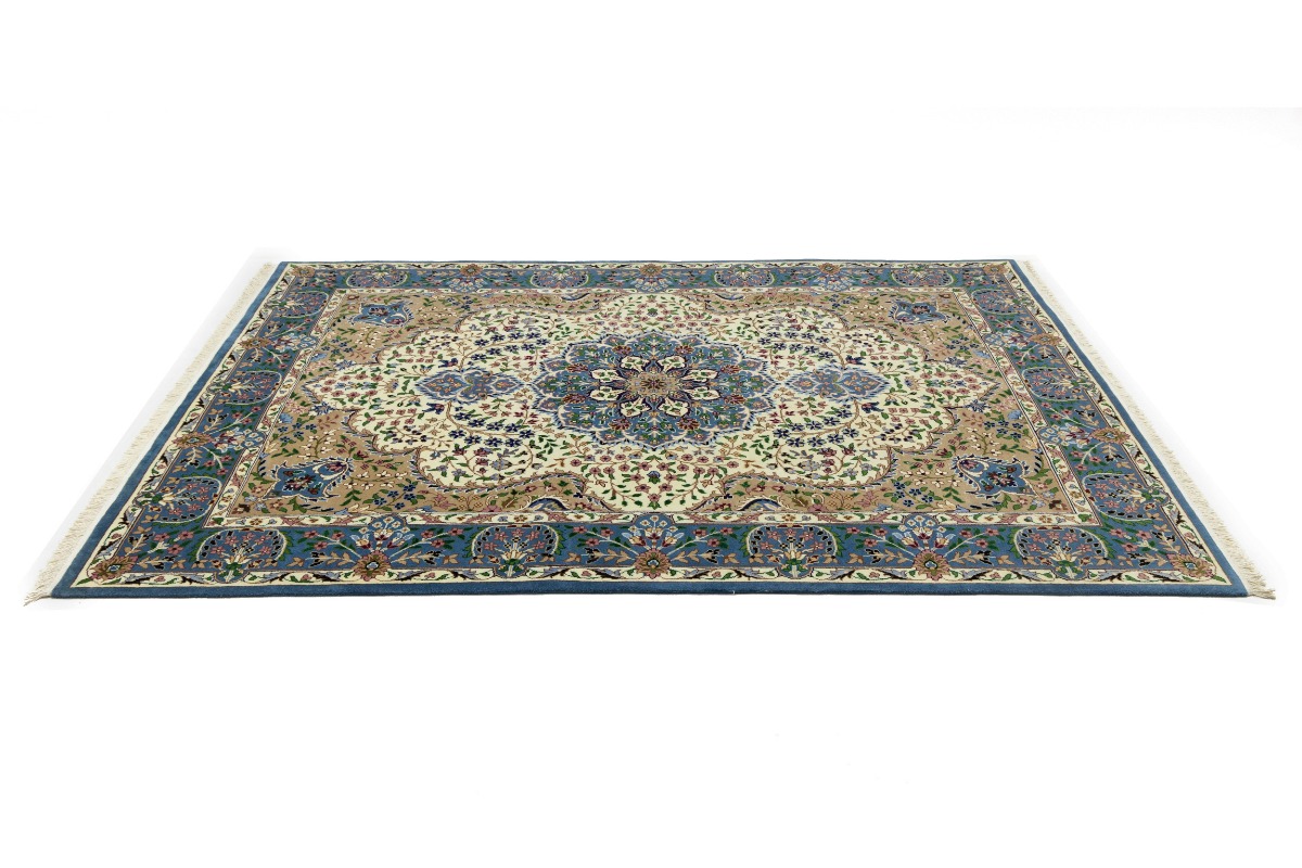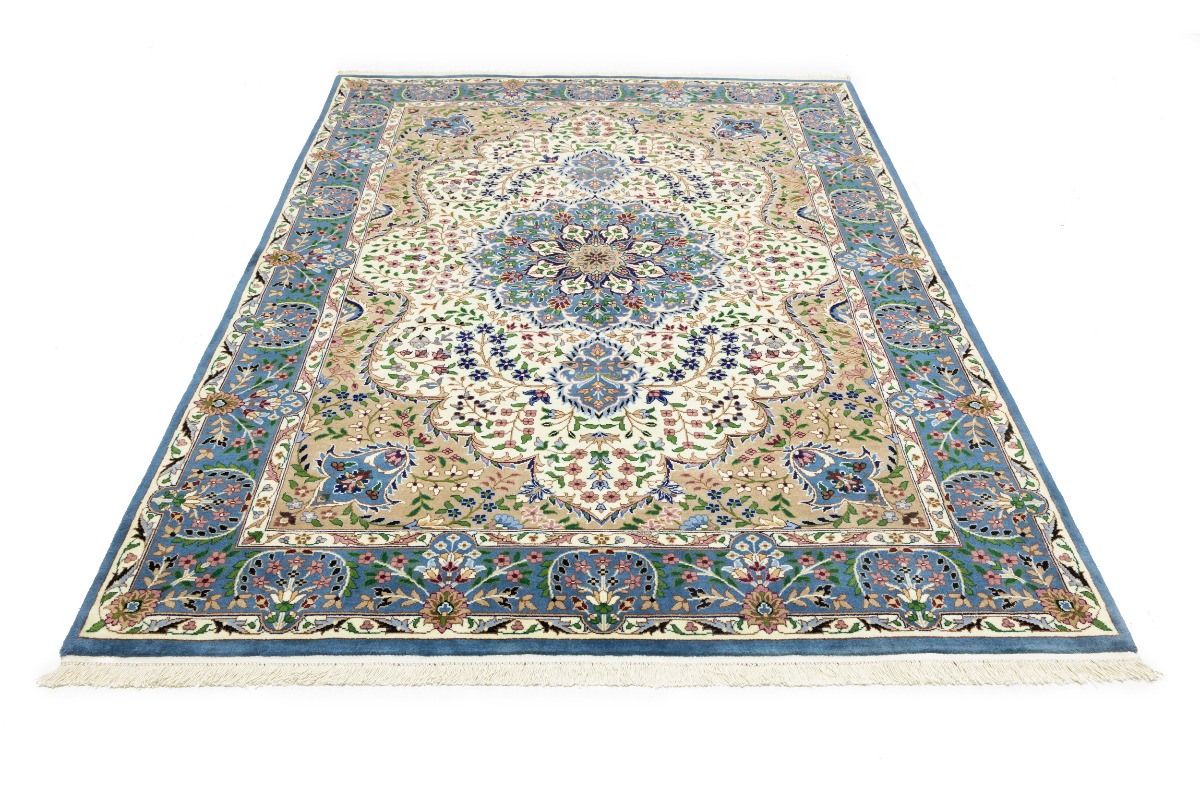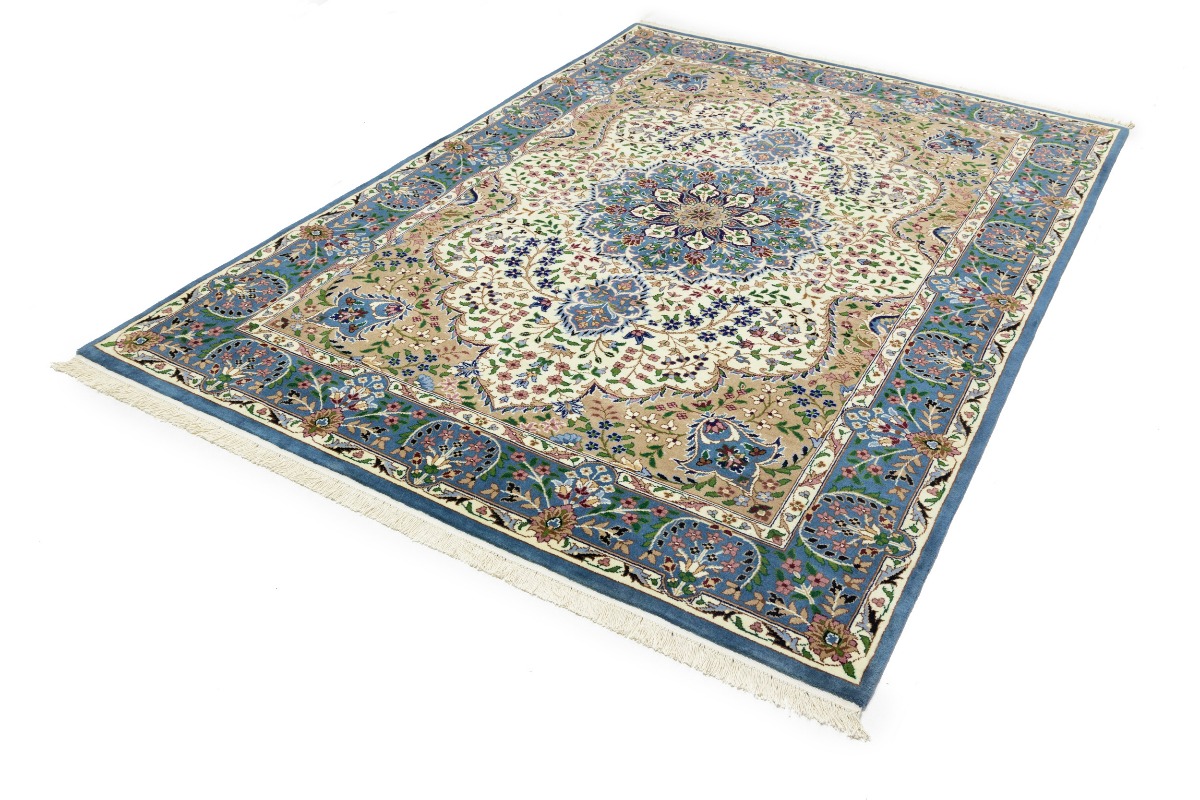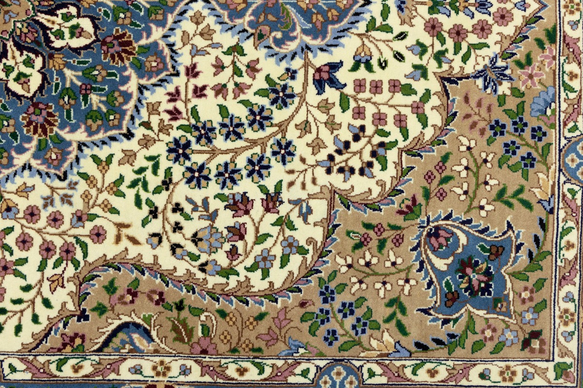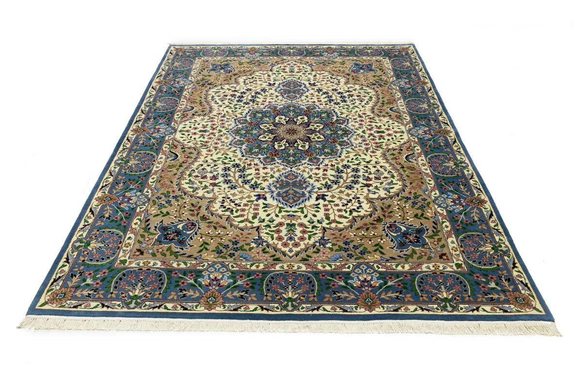 Handmade 6'5X9'2 cream Oriental rug made with natural dyes (fine wool pile and cotton foundation), superior knot count, and appealing ancient designs. This Oriental rug never will go out of style and would be among your most valuable treasures.