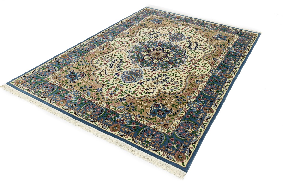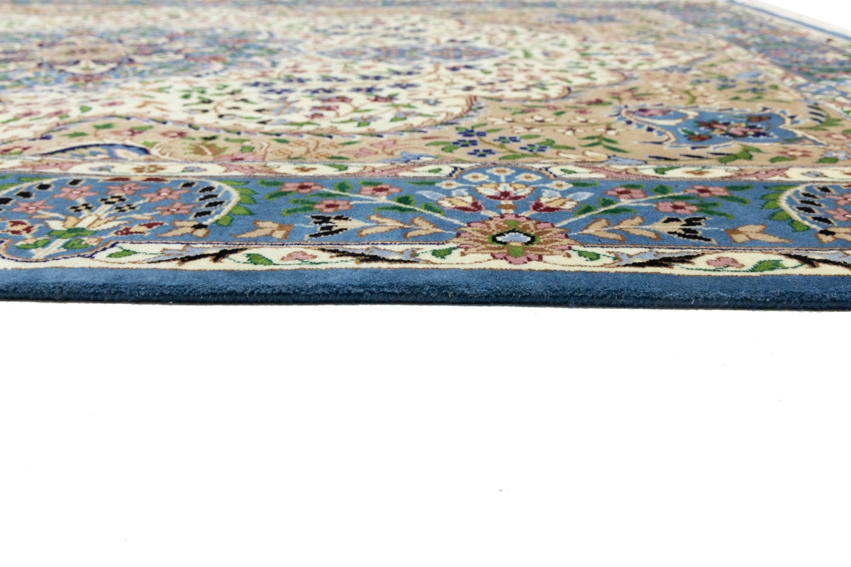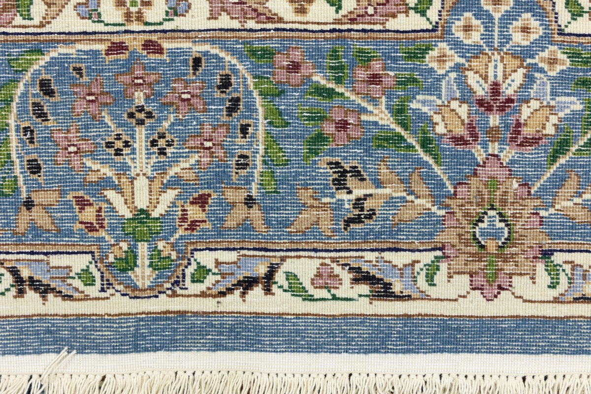 Cream & Blue Floral 6'5X9'2 Kirman Oriental Rug