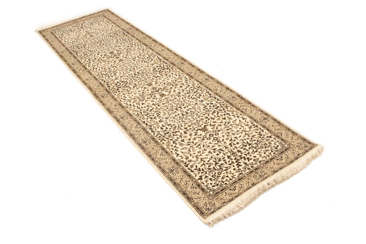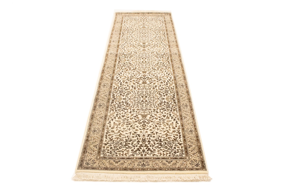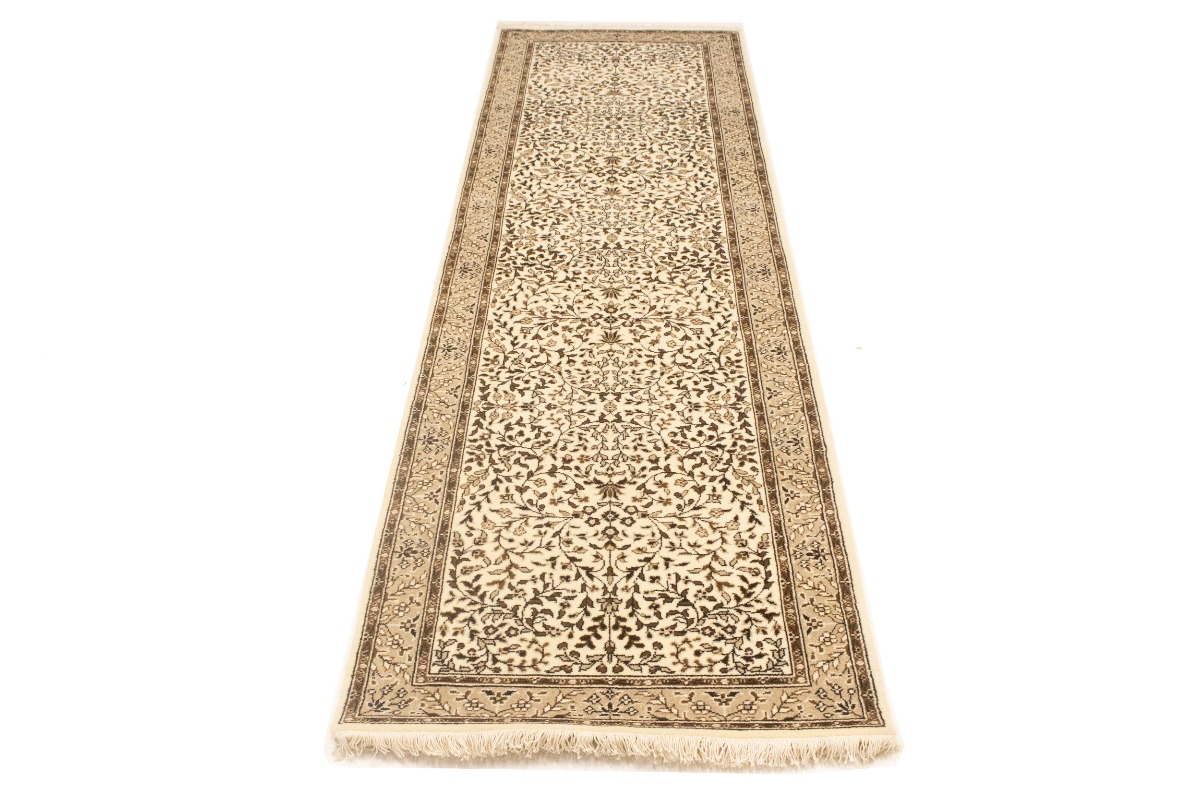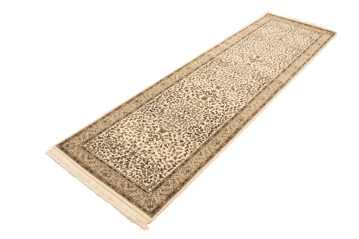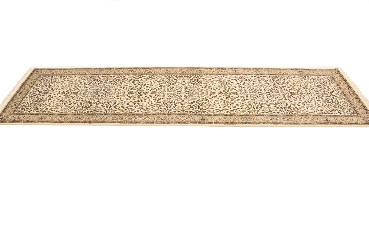 Handmade 3X10 cream oriental runner made with natural dyes (fine wool pile and cotton foundation), superior knot count, and appealing ancient designs. This Oriental runner never will go out of style and would be among your most valuable treasures.