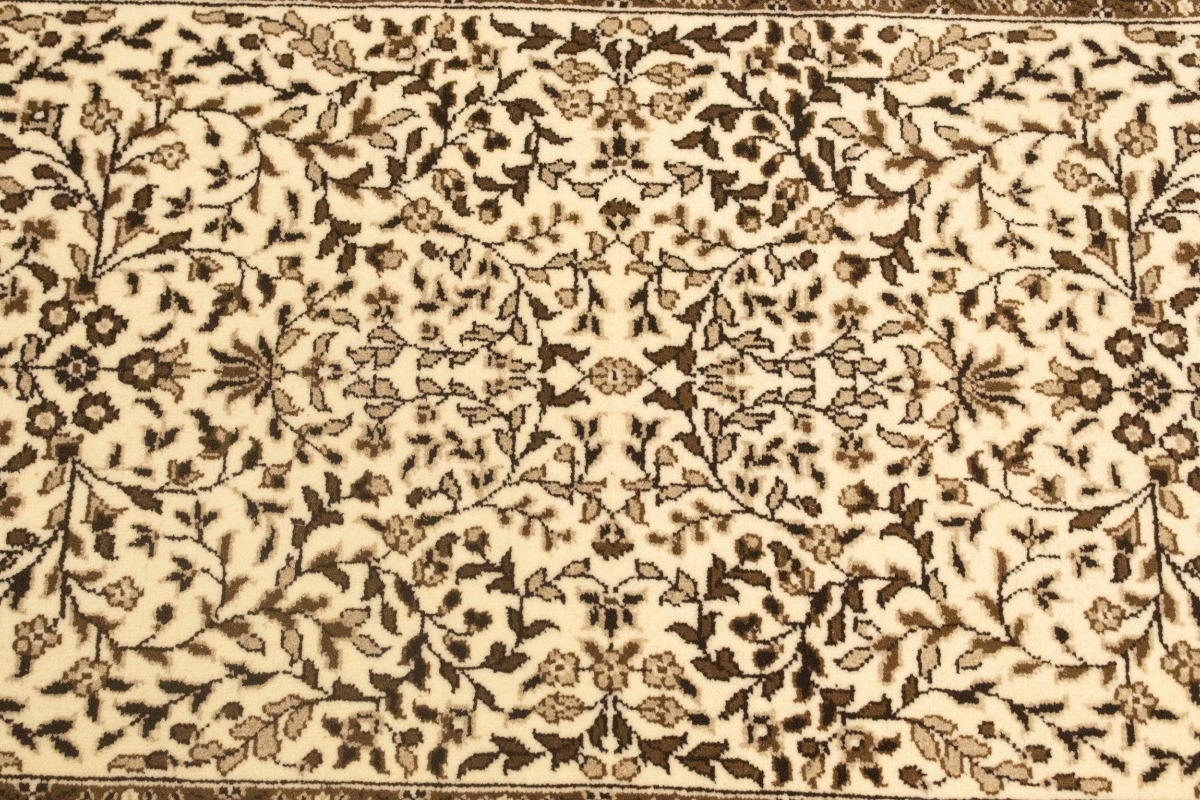 Cream Brown Floral 3X10 Kirman Oriental Runner Rug