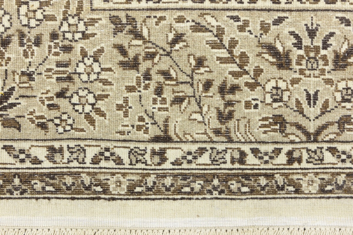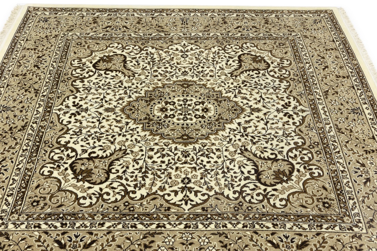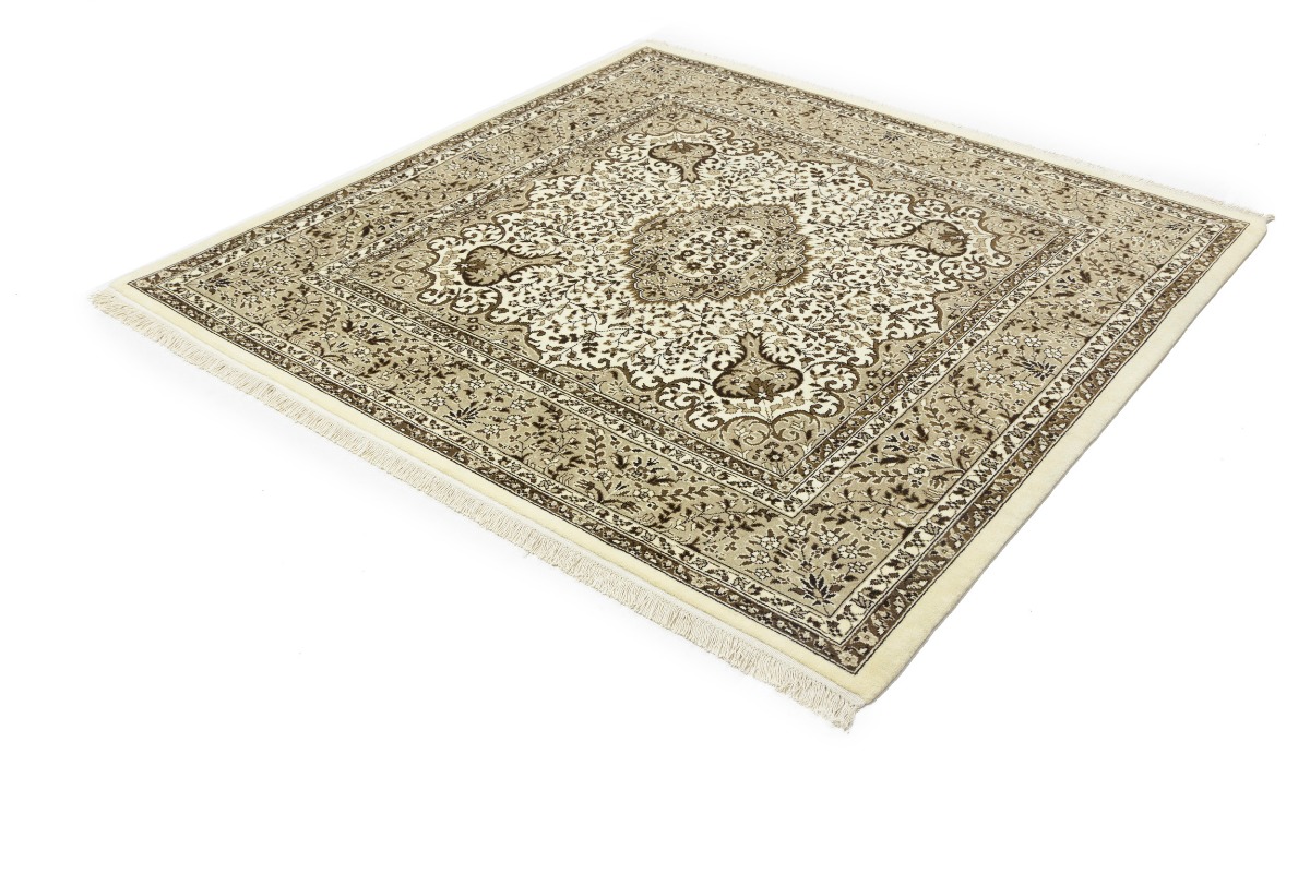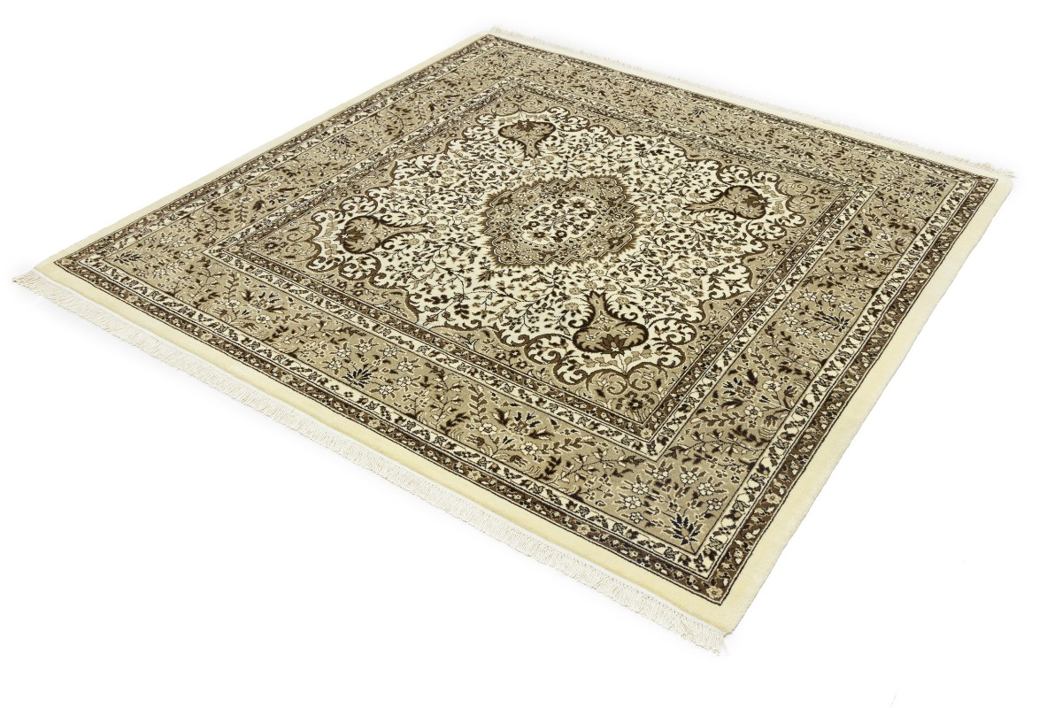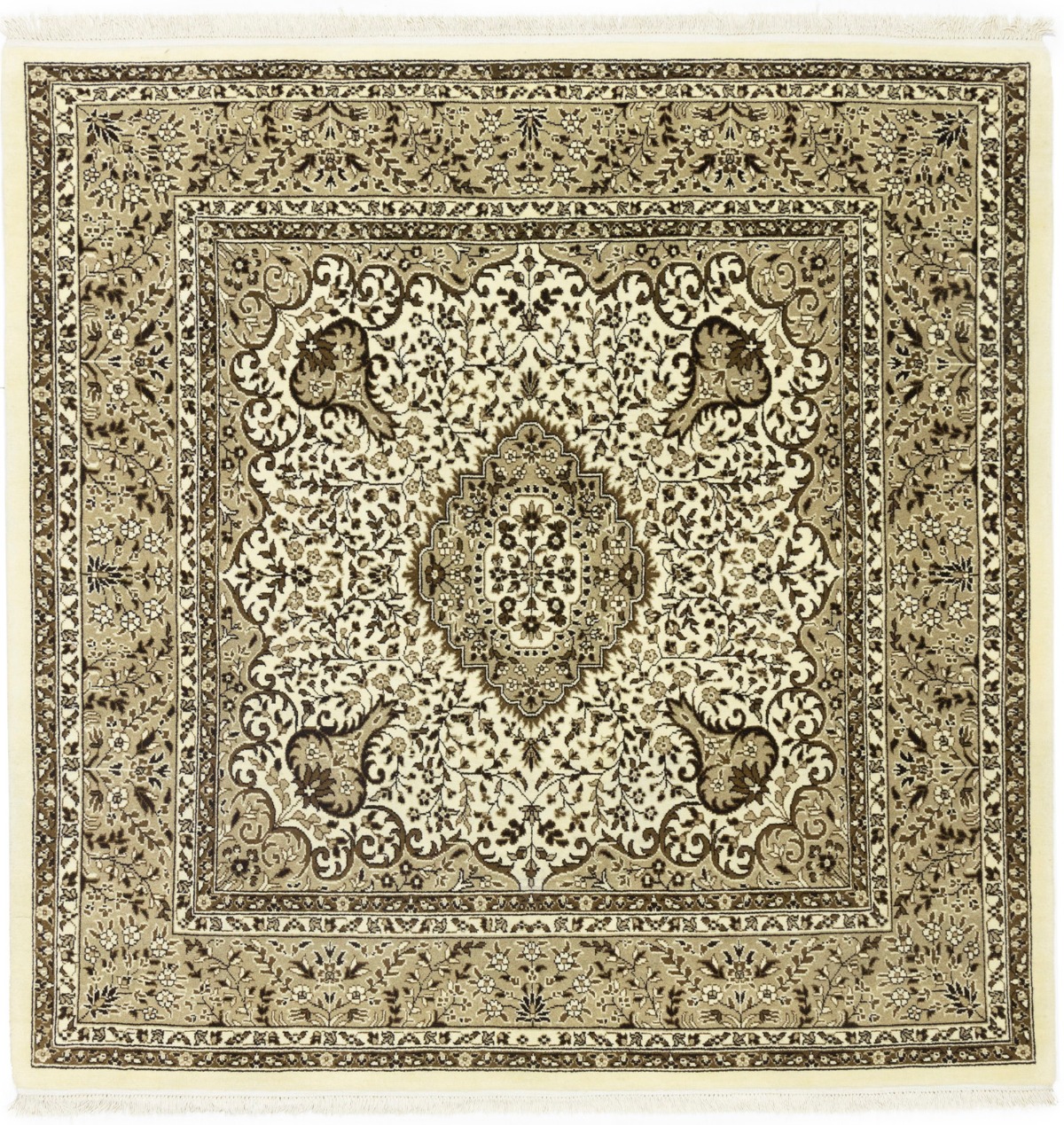 Cream Brown Floral 6X6 Kirman Oriental Square Rug