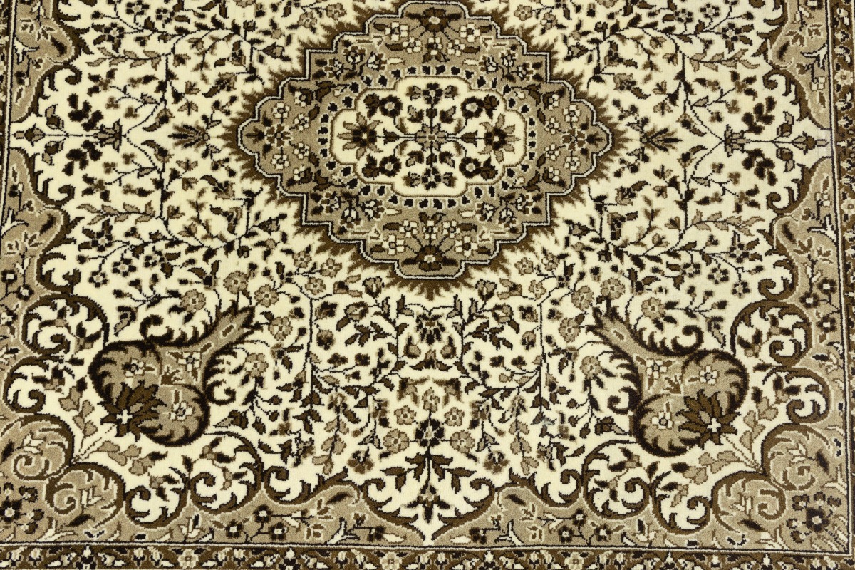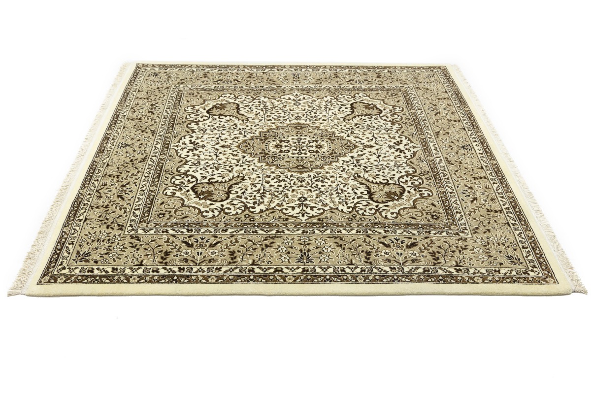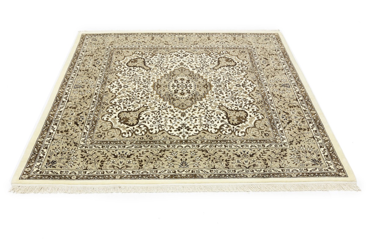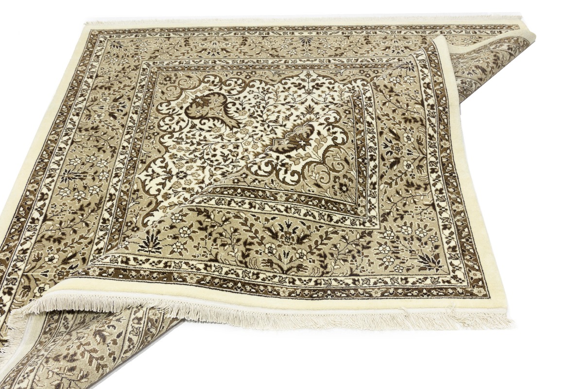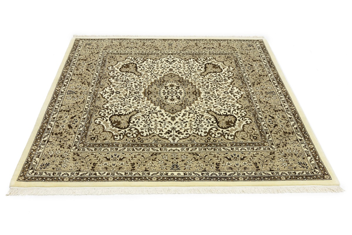Handmade 6X6 cream Oriental rug made with natural dyes (fine wool pile and cotton foundation), superior knot count, and appealing ancient designs. This Oriental rug never will go out of style and would be among your most valuable treasures.