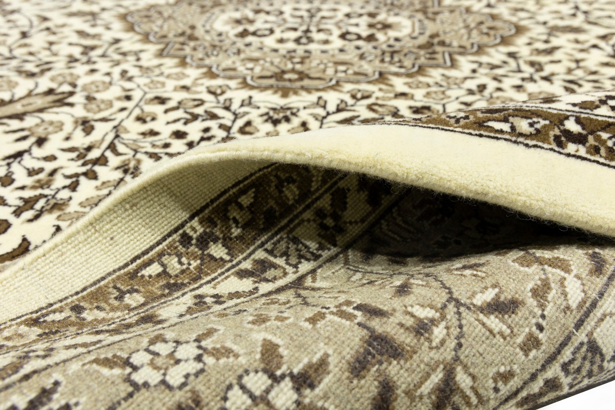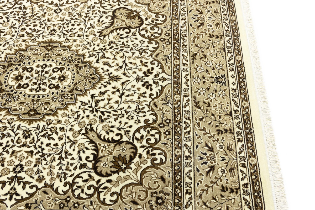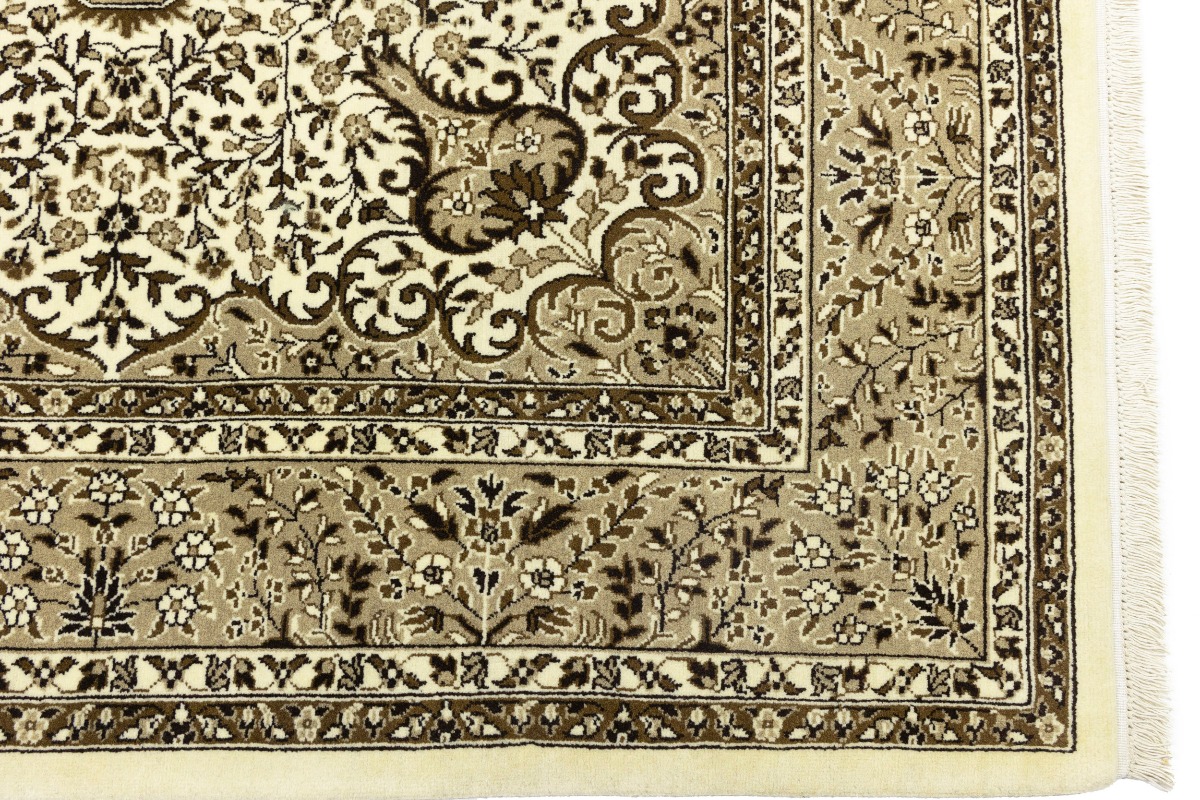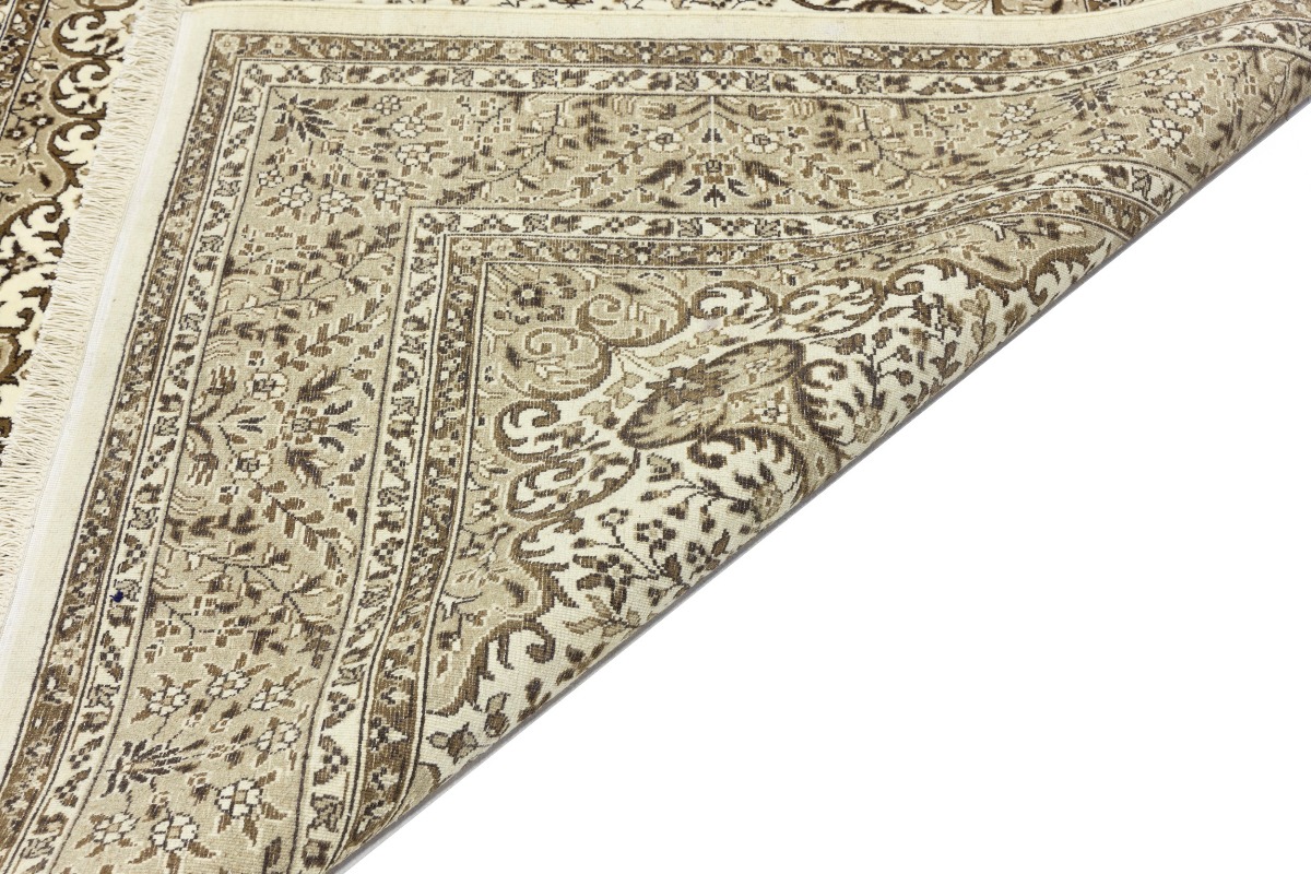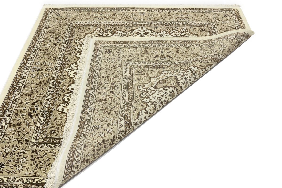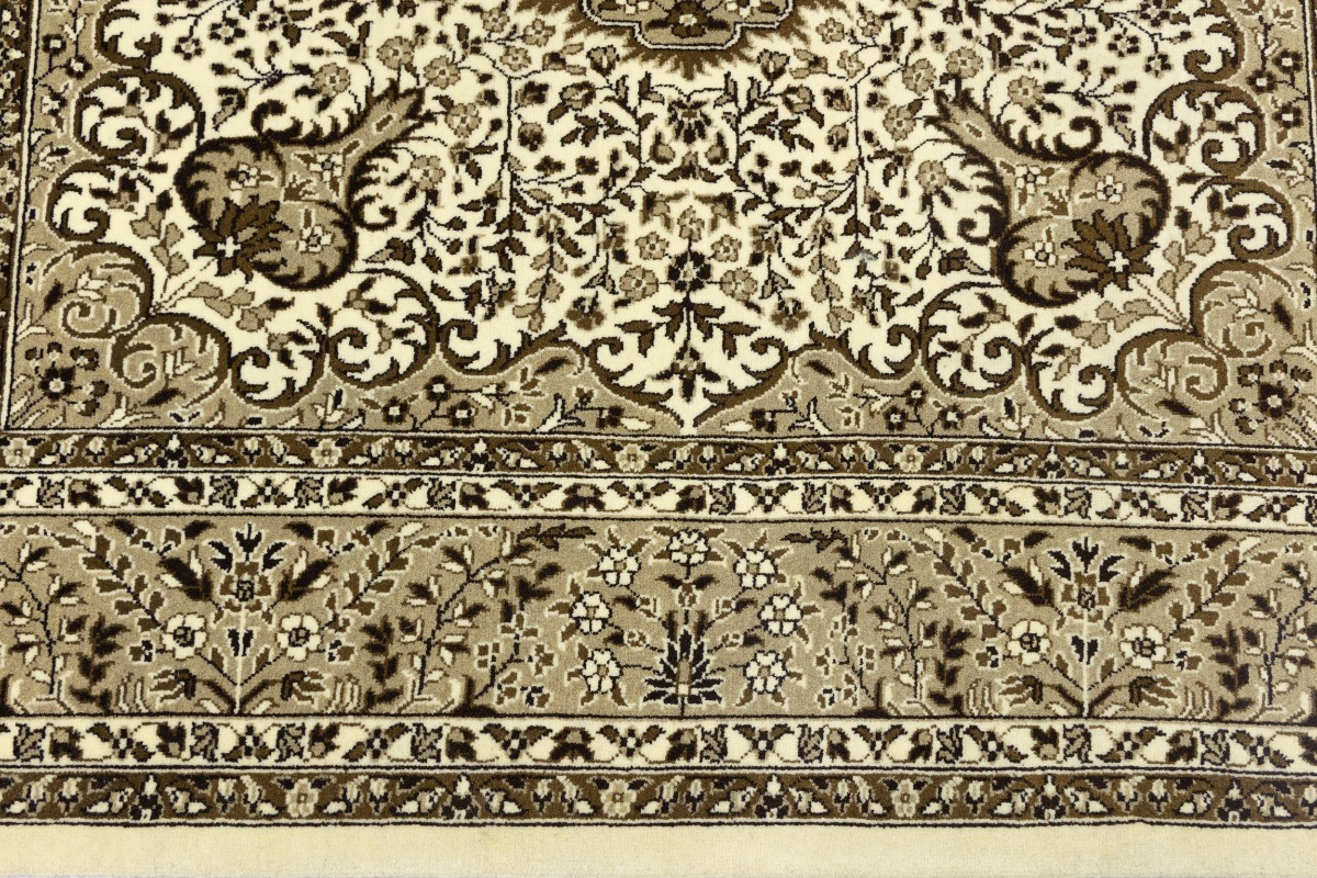 Handmade 6X6 cream Oriental rug made with natural dyes (fine wool pile and cotton foundation), superior knot count, and appealing ancient designs. This Oriental rug never will go out of style and would be among your most valuable treasures.