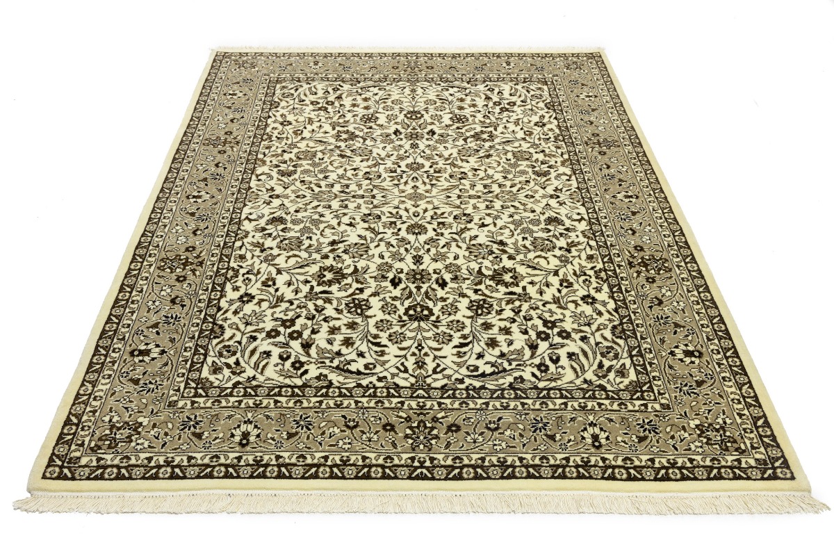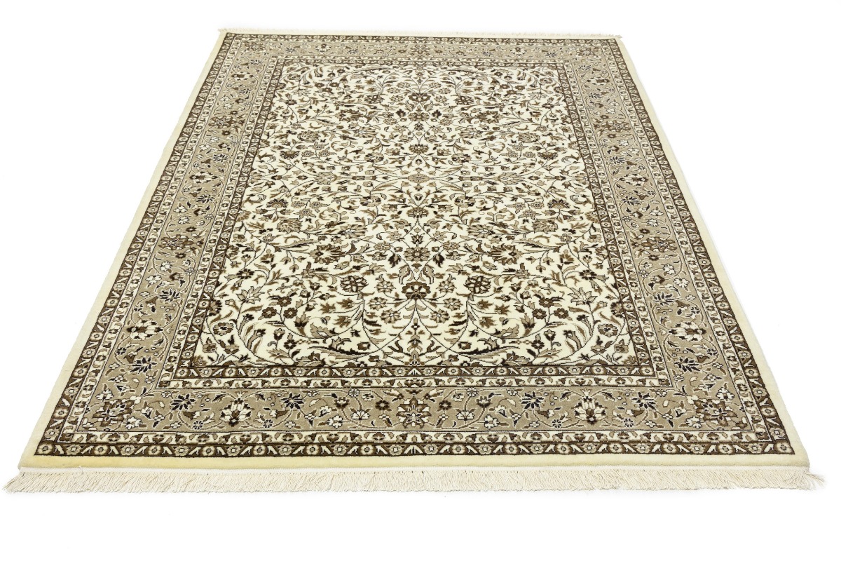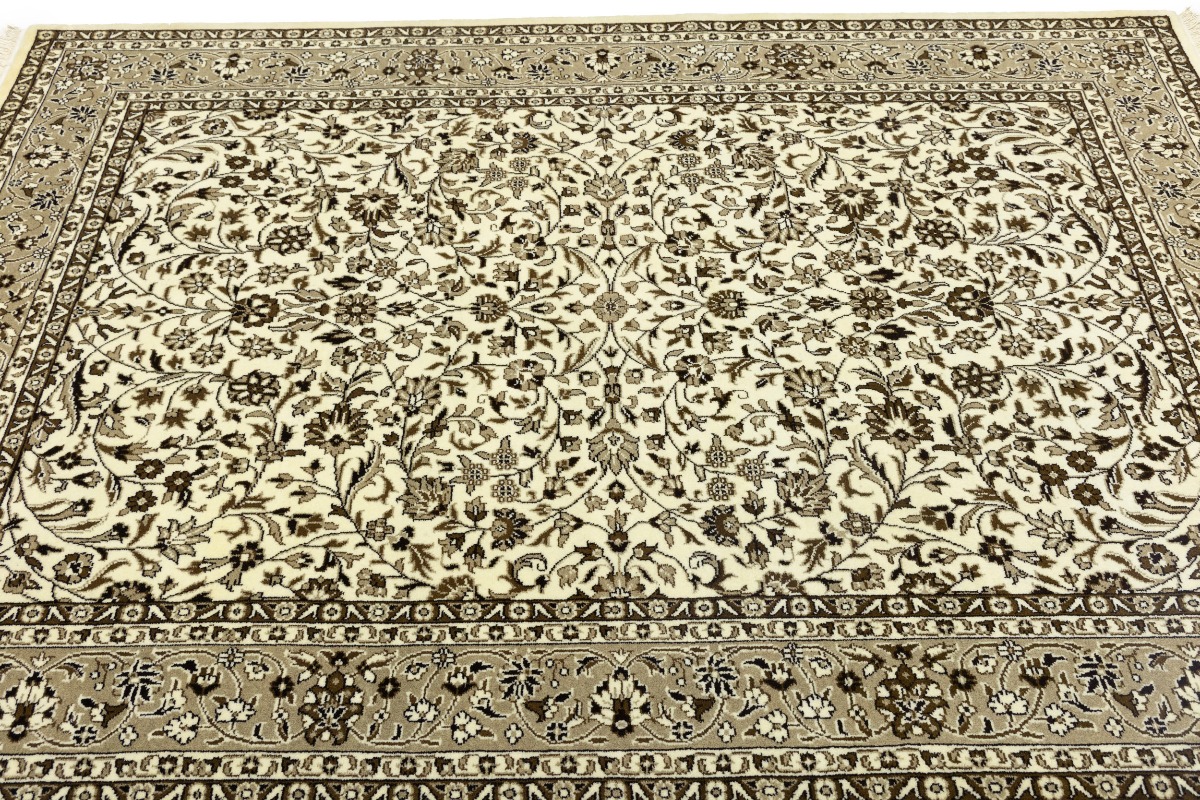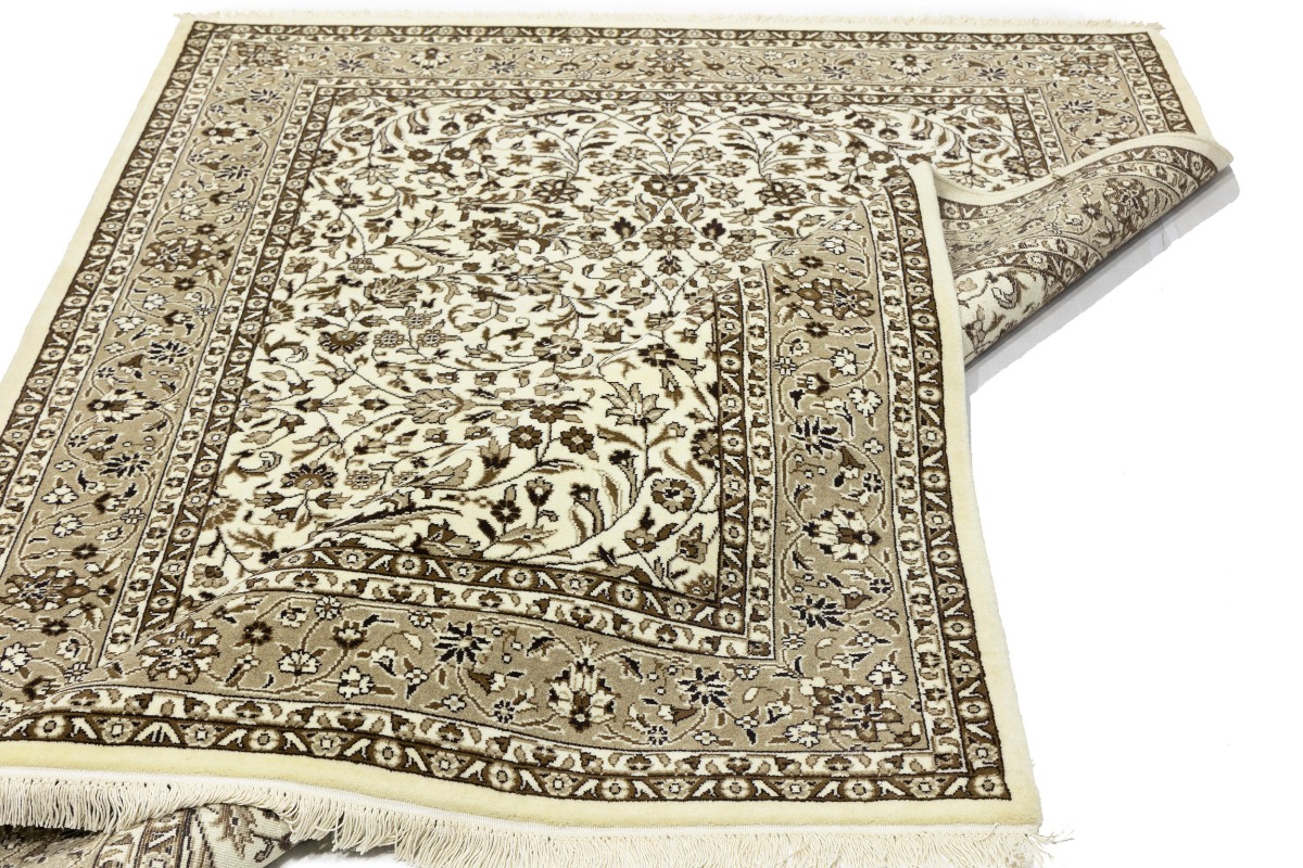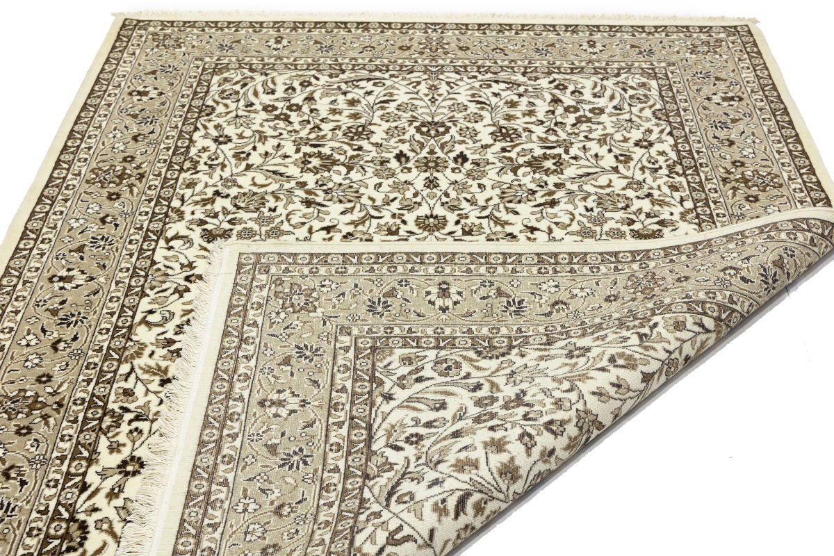 Handmade 6X8 cream Oriental rug made with natural dyes (fine wool pile and cotton foundation), superior knot count, and appealing ancient designs. This Oriental rug never will go out of style and would be among your most valuable treasures.