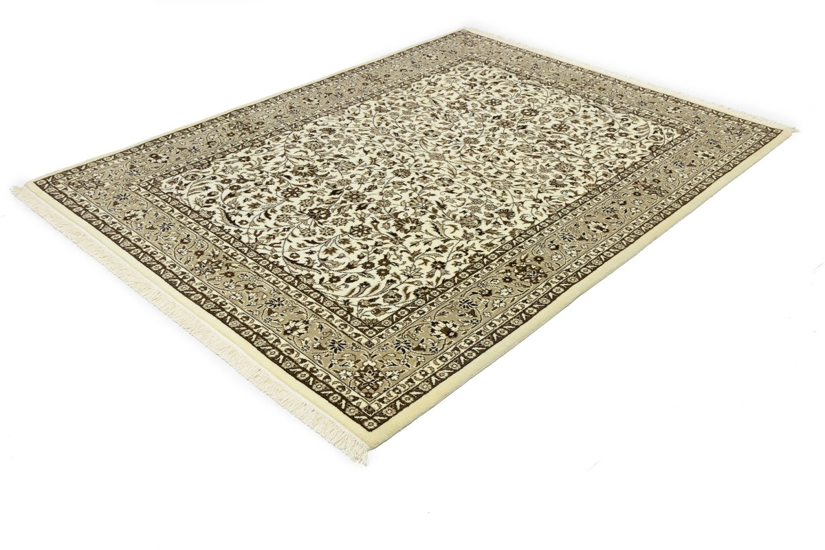 Cream Brown Floral 6X8 Kirman Oriental Rug