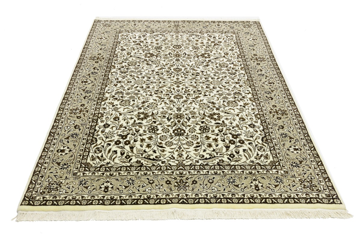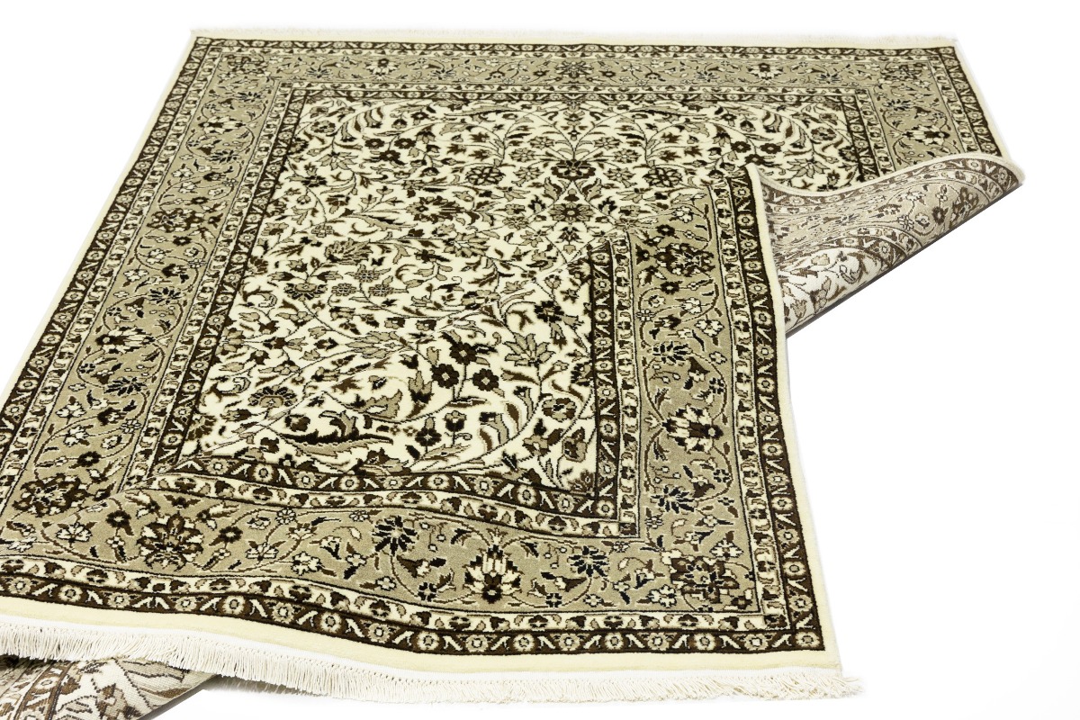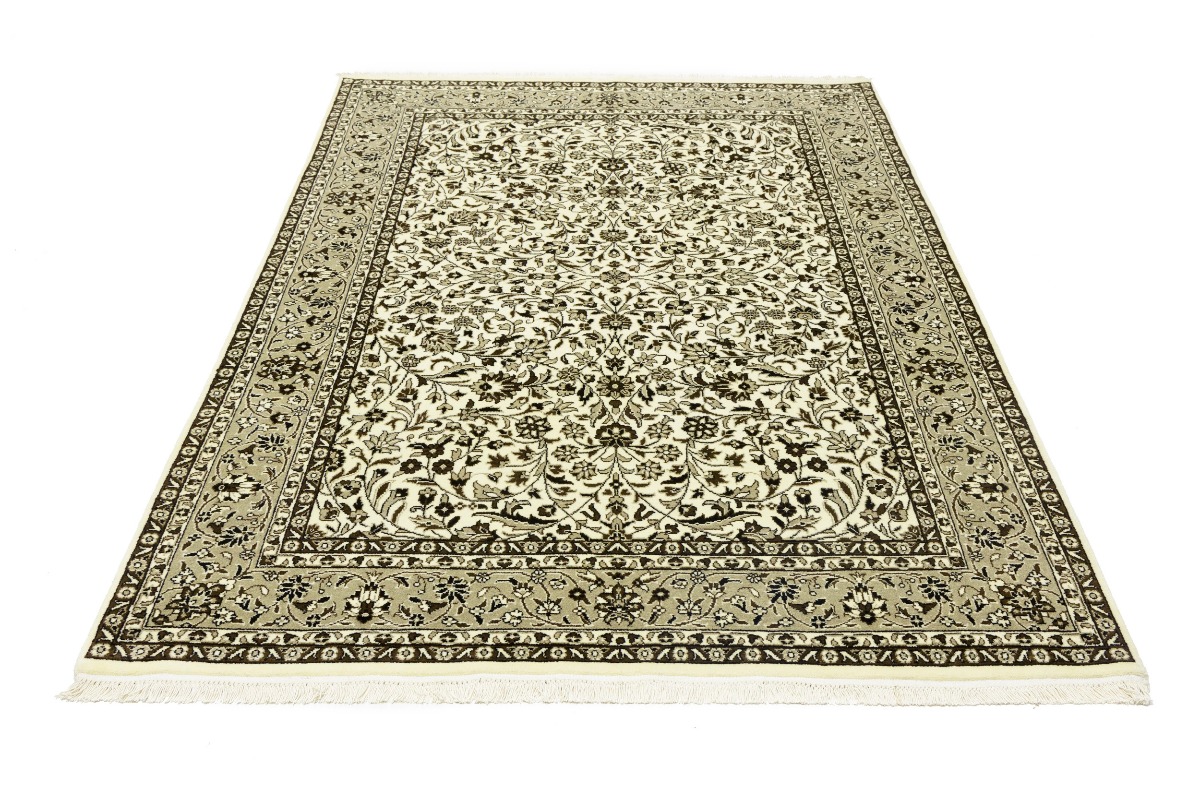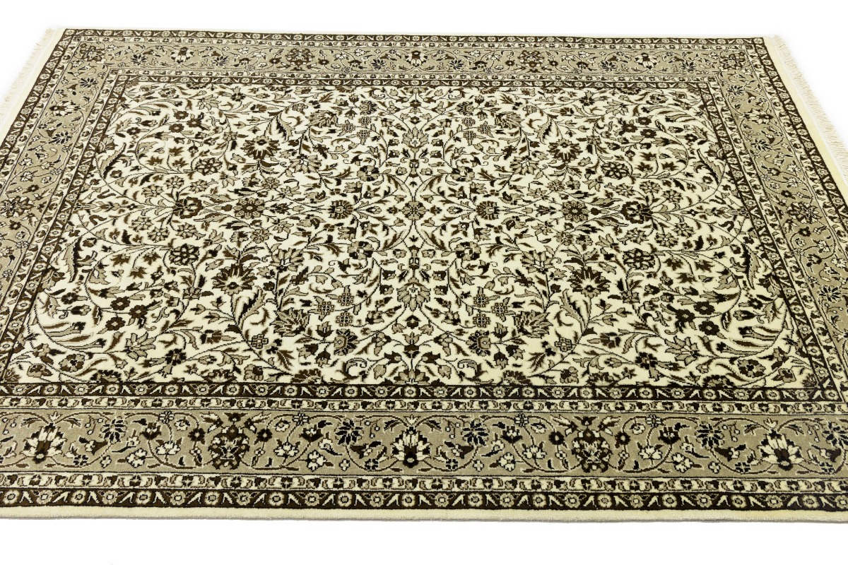 Handmade 6X8 cream Oriental rug made with natural dyes (fine wool pile and cotton foundation), superior knot count, and appealing ancient designs. This Oriental rug never will go out of style and would be among your most valuable treasures.