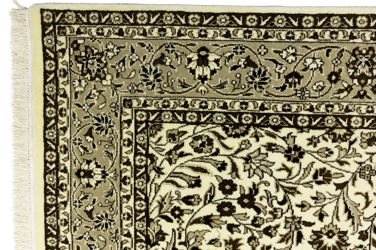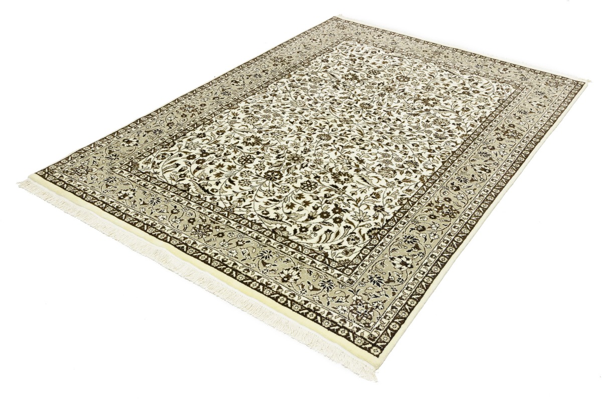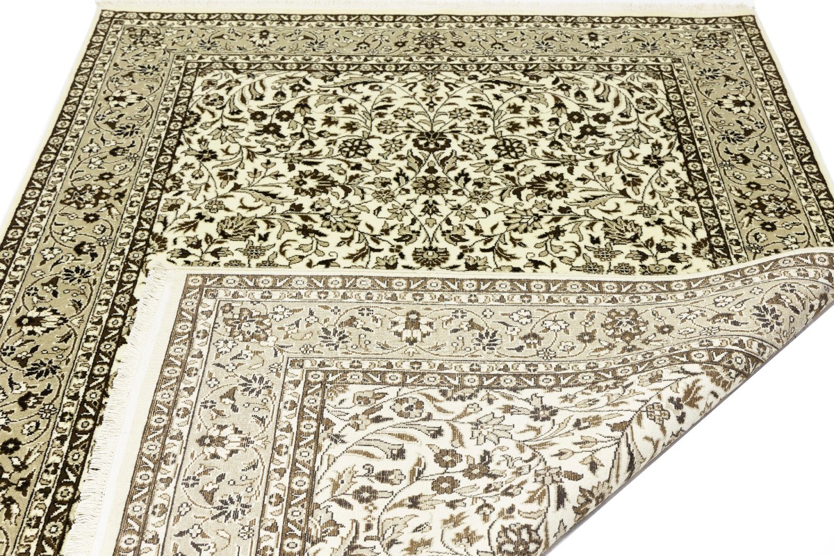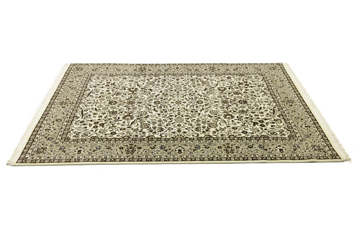 Handmade 6X8 cream Oriental rug made with natural dyes (fine wool pile and cotton foundation), superior knot count, and appealing ancient designs. This Oriental rug never will go out of style and would be among your most valuable treasures.