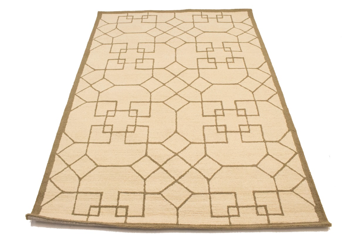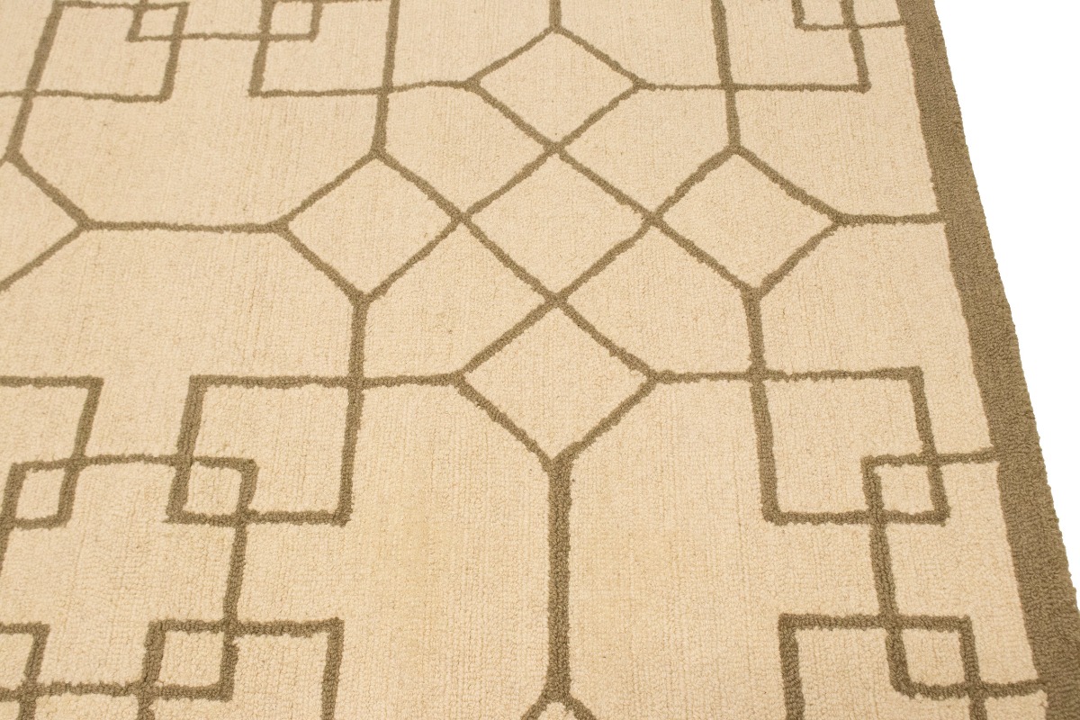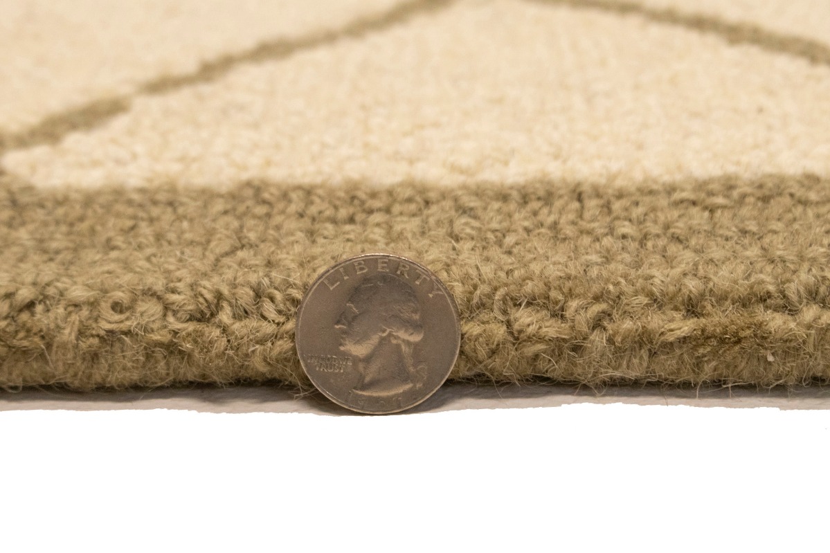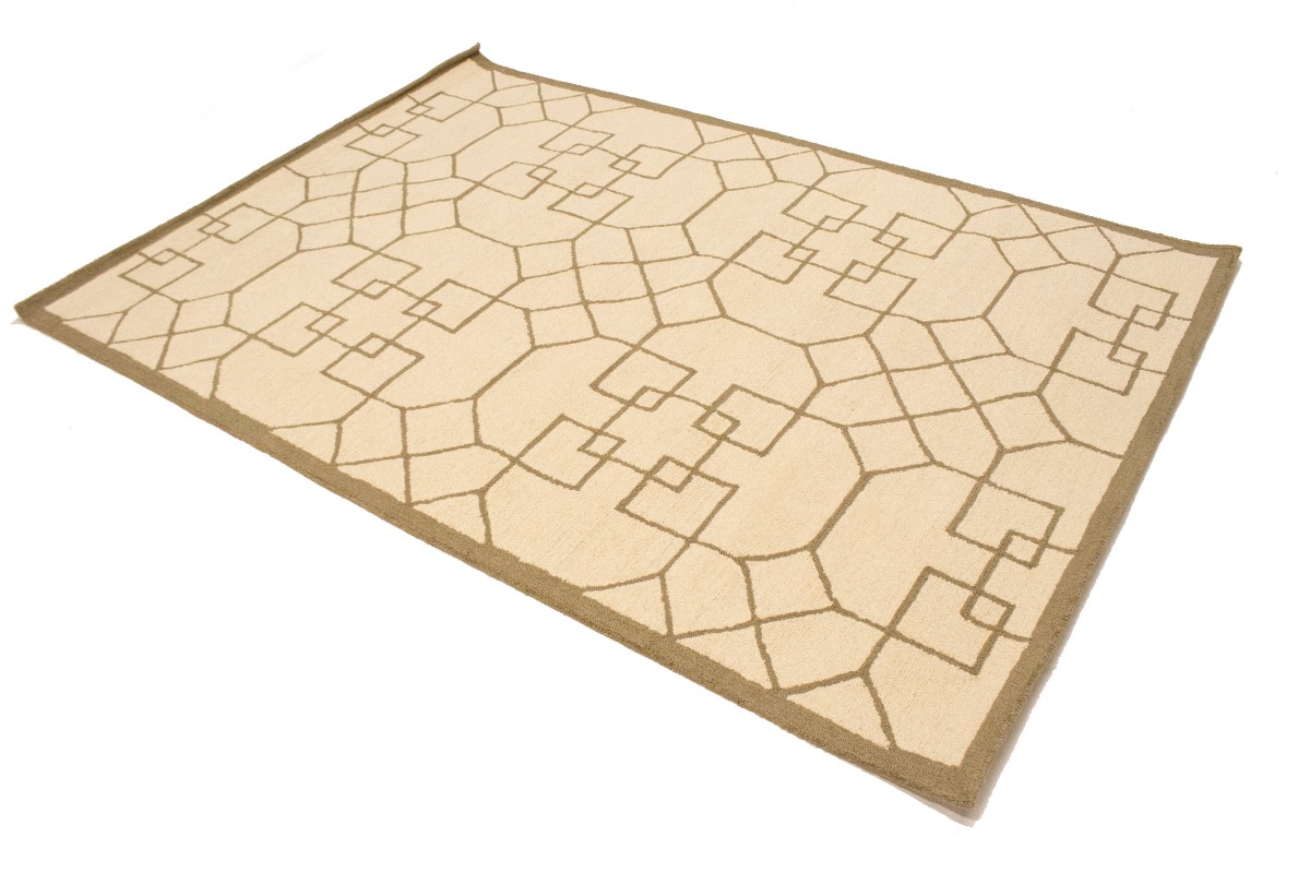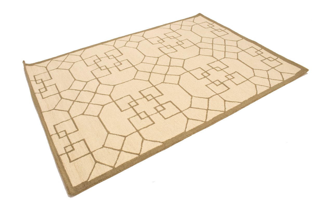 Cream & Brown Geometric Design 5X8 Hand-Tufted Modern Rug Wool Decor Carpet