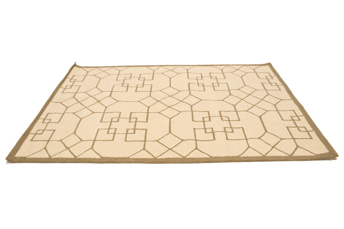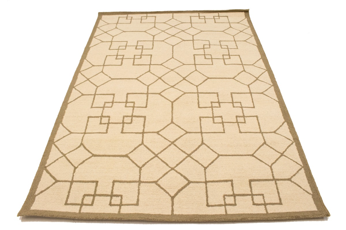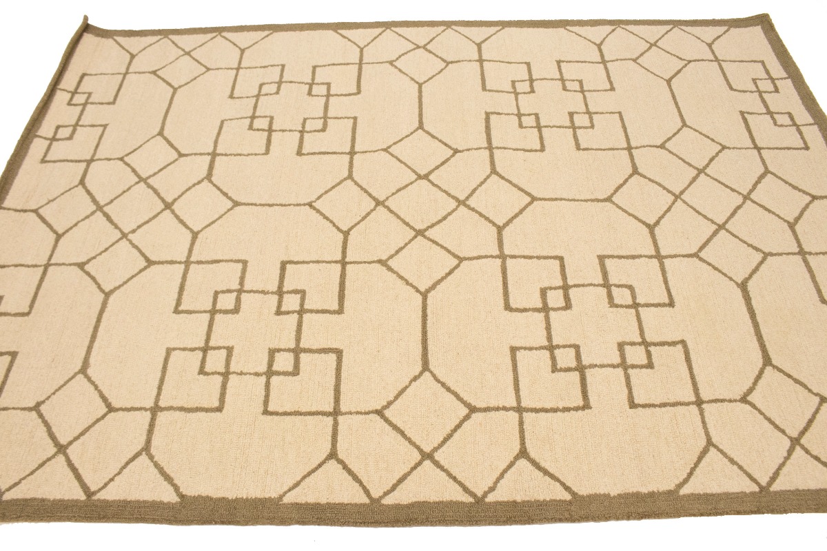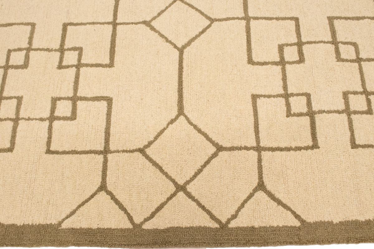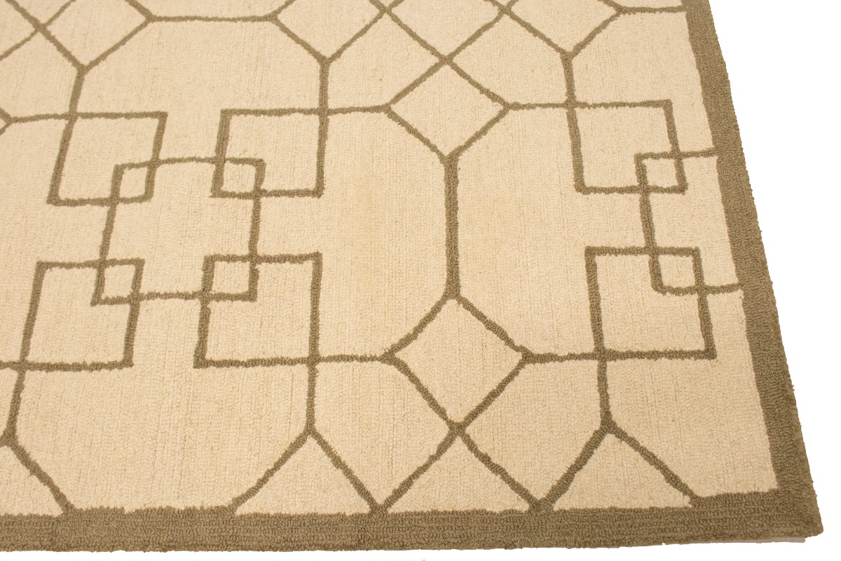 Cream & Brown Geometric Design 5X8 Hand-Tufted Modern Rug Wool Decor Carpet