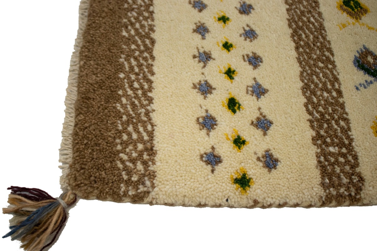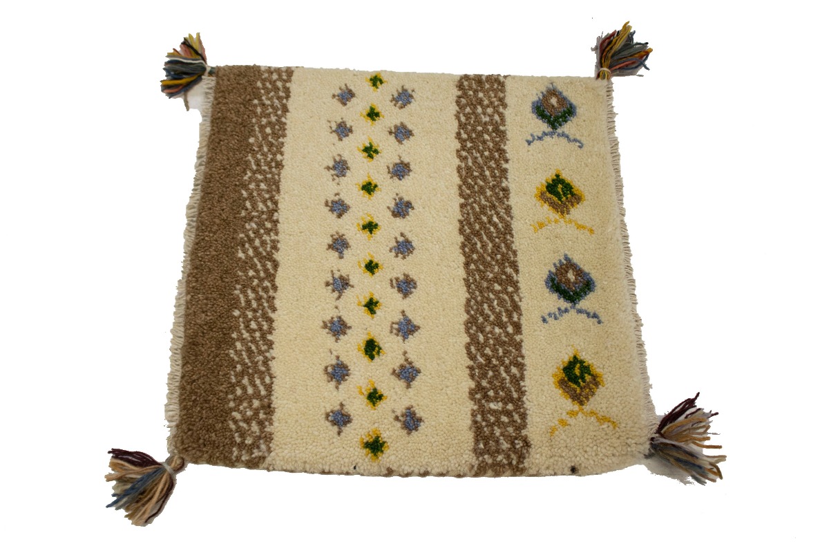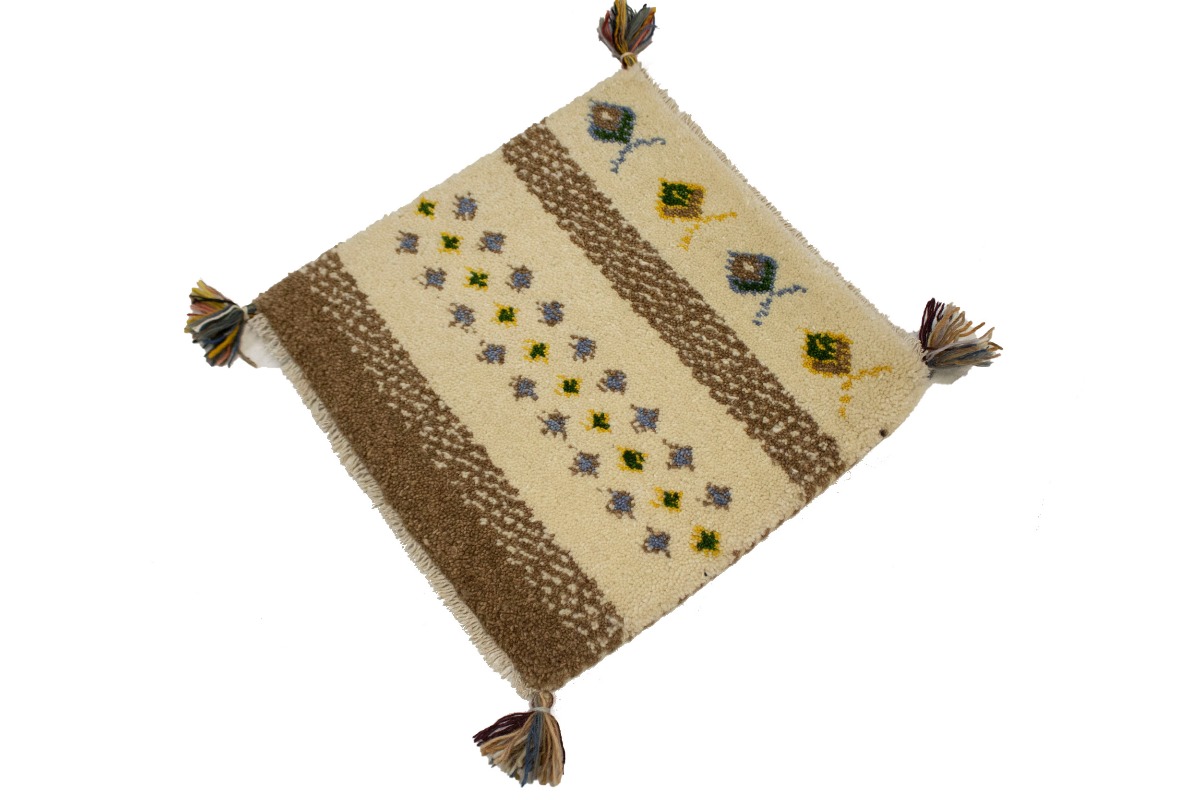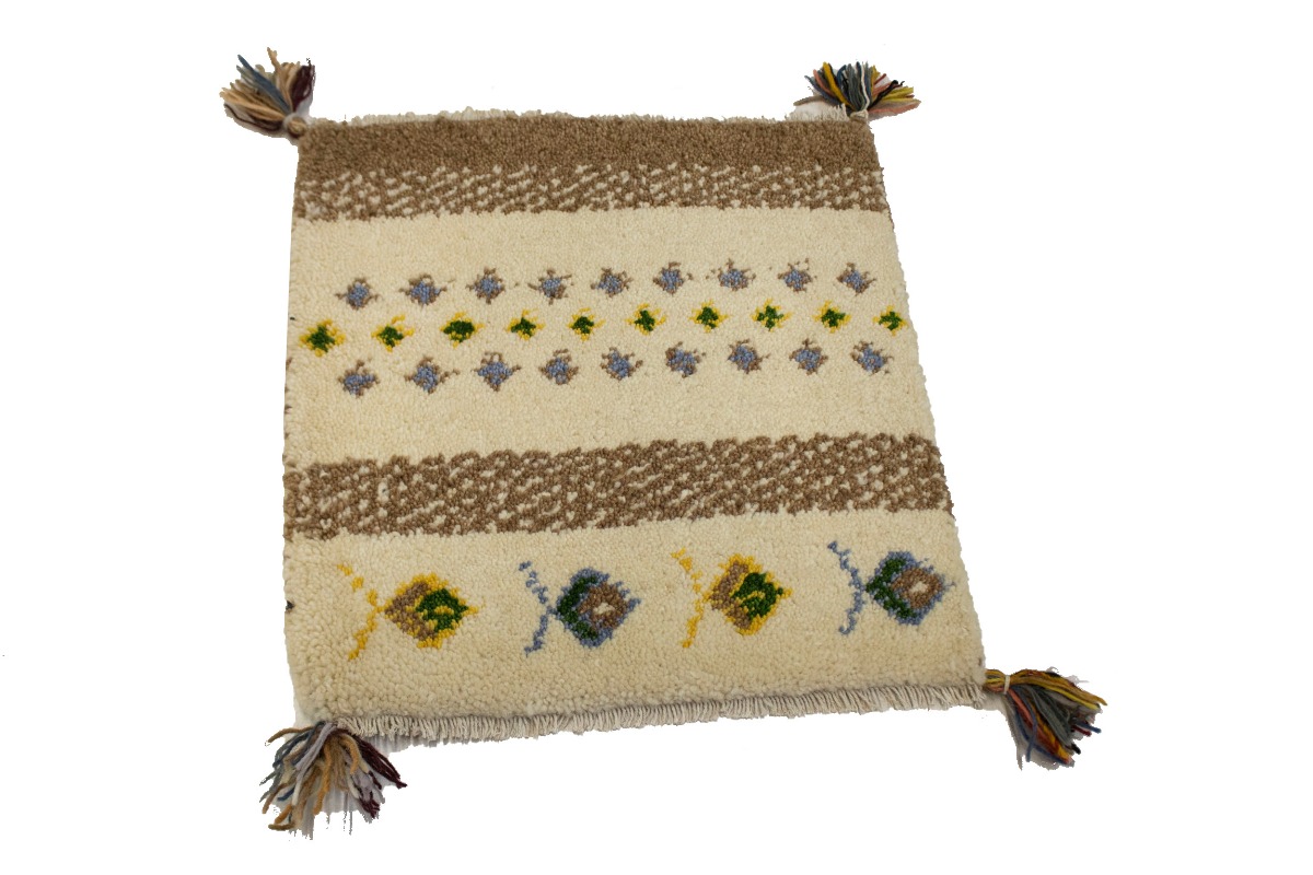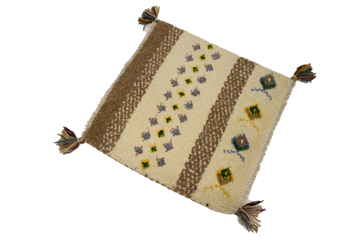 Cream Brown Modern Tribal 1'4X1'4 Indo-Gabbeh Oriental Square Rug