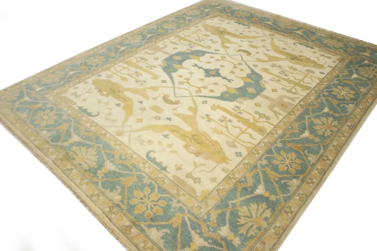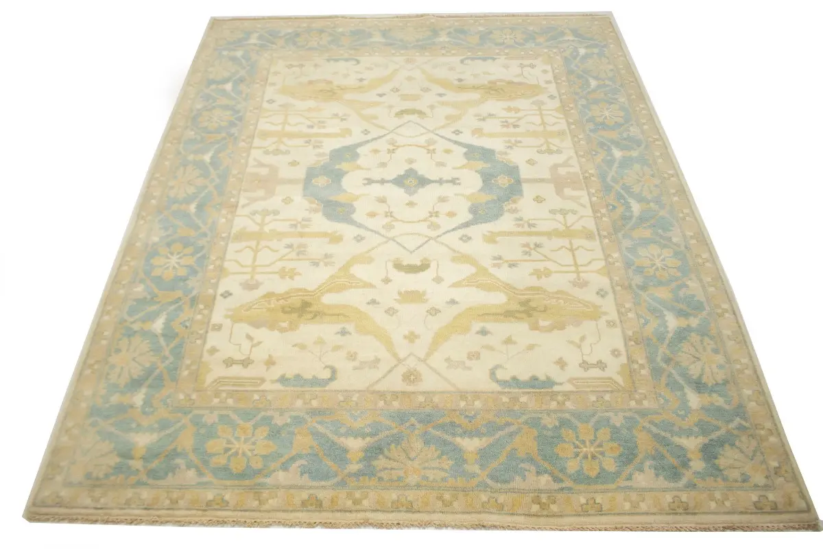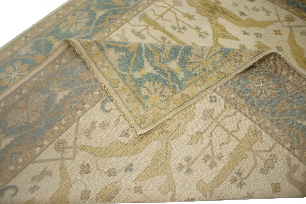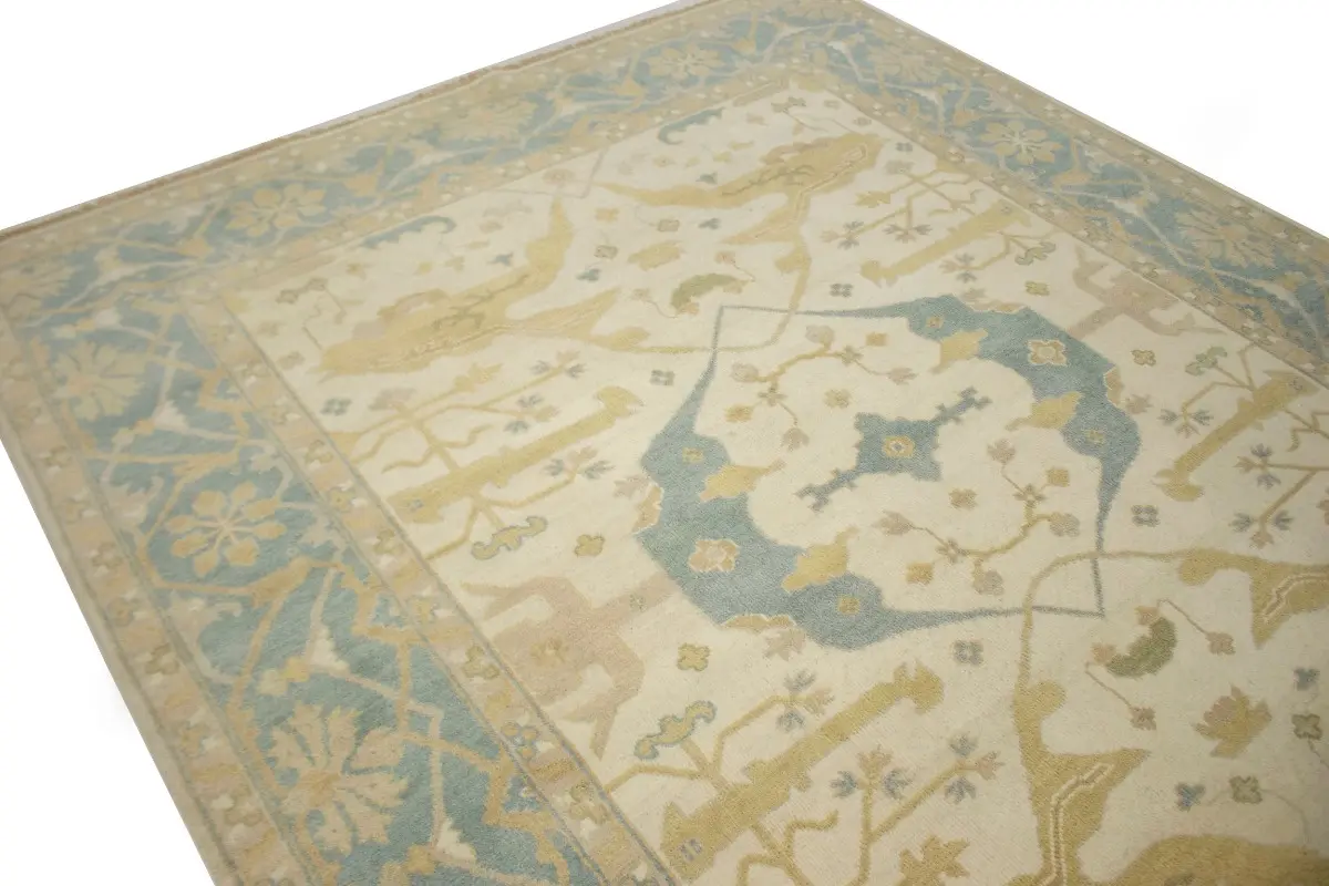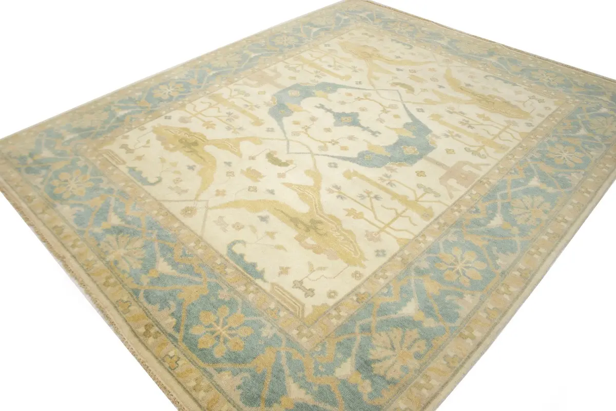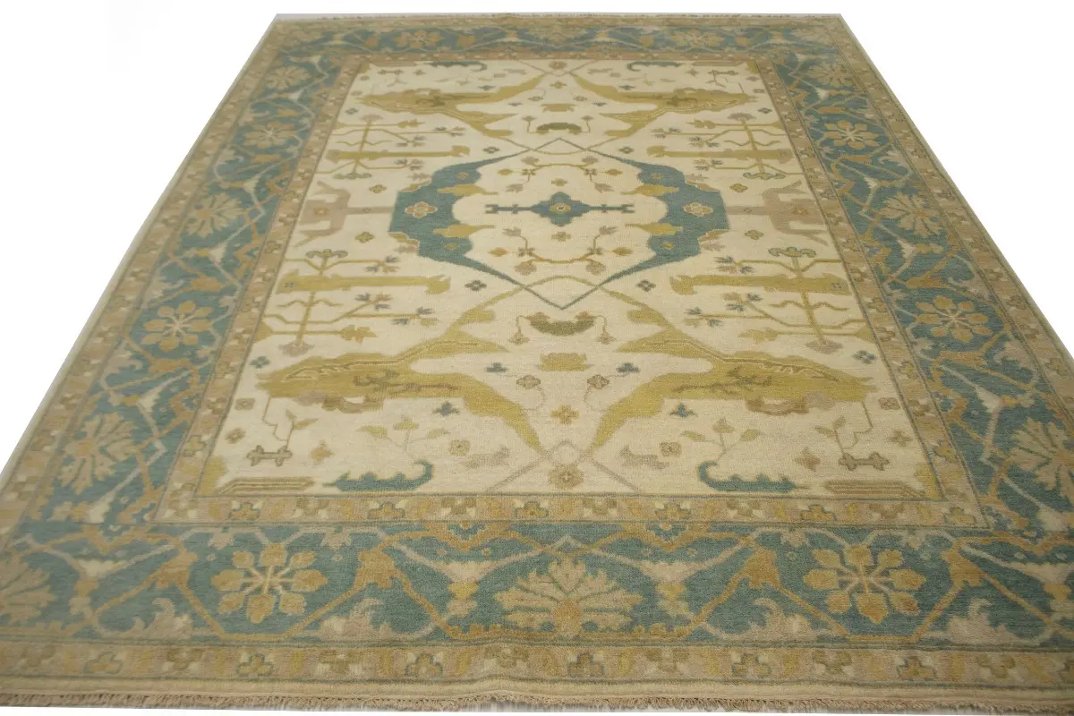 Cream Casual 8X10 Floral Oushak Oriental Rug