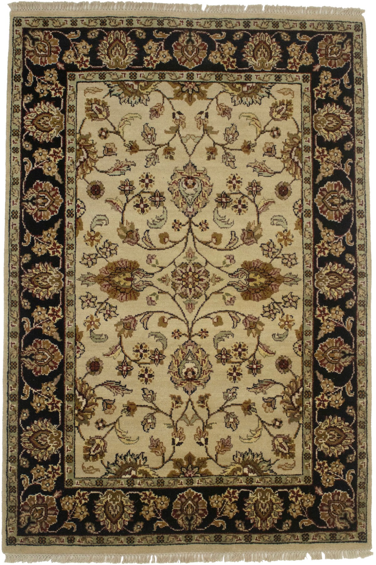 Cream & Charcoal Floral 4X6 Indo-Kashan Oriental Rug