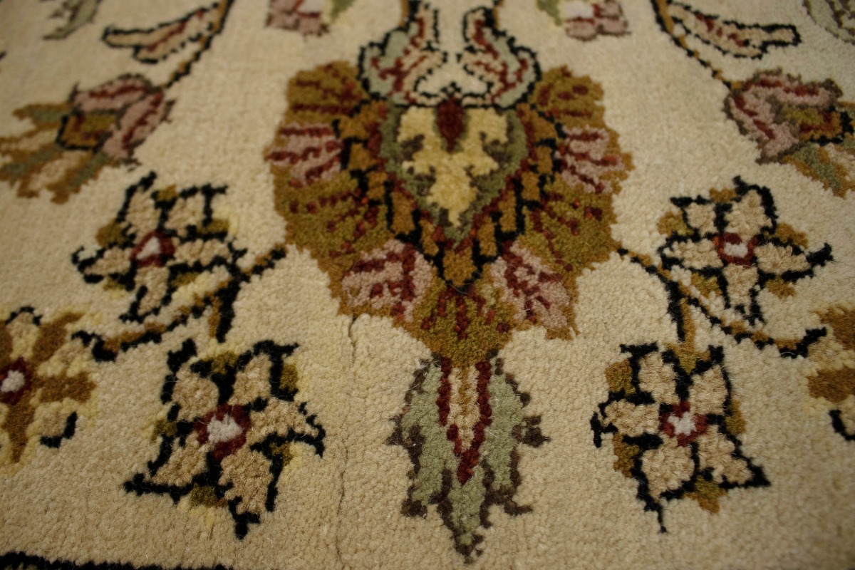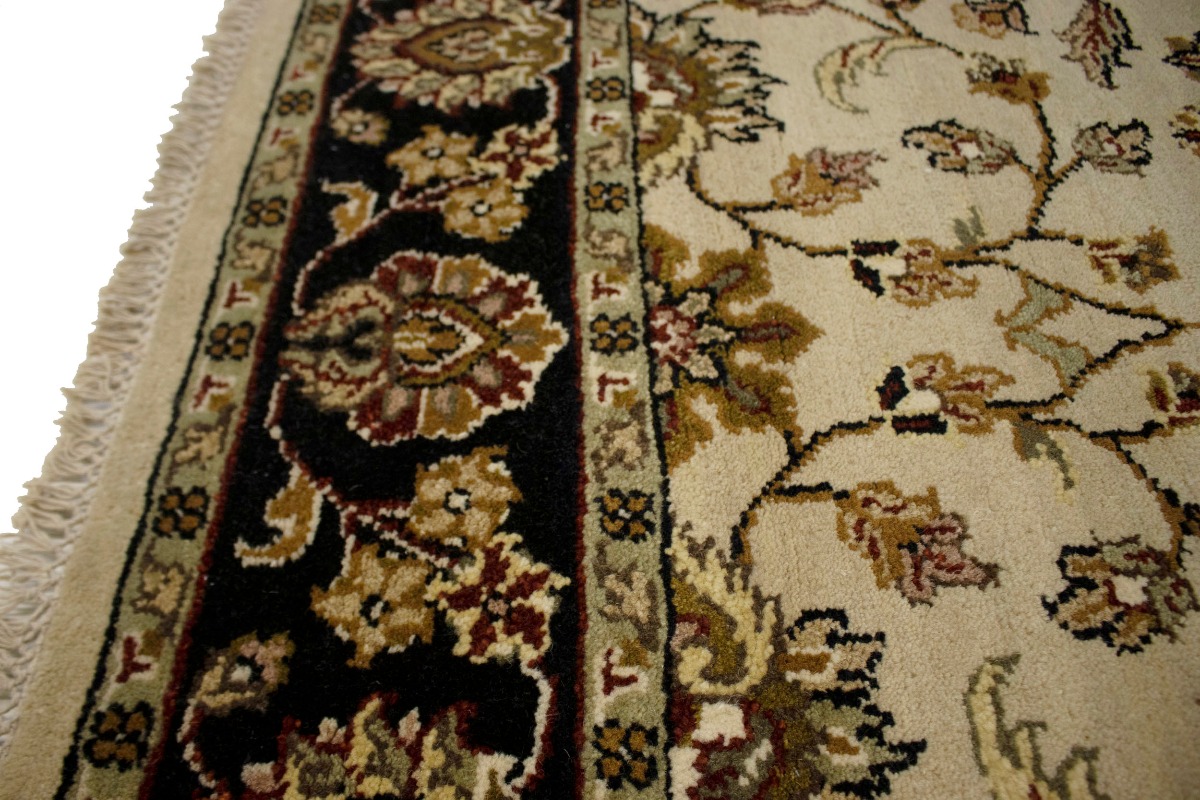 This authentic 4X6 cream new Oriental rug was masterly knotted by the hands of weavers inspired by a variety of wonderful artistic designs, to recreate the aged look of the original piece with a richness of color and intricate patterned background field. What set this vintage style Oriental area rug from the others are the material and dye used (wool pile and cotton foundation), knot count, antique designs, fantastic grades, and its regional historical connection: it has deep roots, from the story of the people who produced it to the meaning of the symbols and colors displayed across its canvas that have been praised for centuries. This Indian home décor carpet will be completely cozy and inviting that never will go out of style! Also, this Oriental rug would be among your most valuable treasures, it is a great investment that accrues value over time, and it will last for generations because was woven with high-quality, all-natural wool. Environmentally friendly, opulent yet affordable; this rug will give you a thorough amount of character to help define your living space with luxury and warmth that will capture the eyes and attention of your audience (homeowners, designers, decorators, family and friends). OT-4701