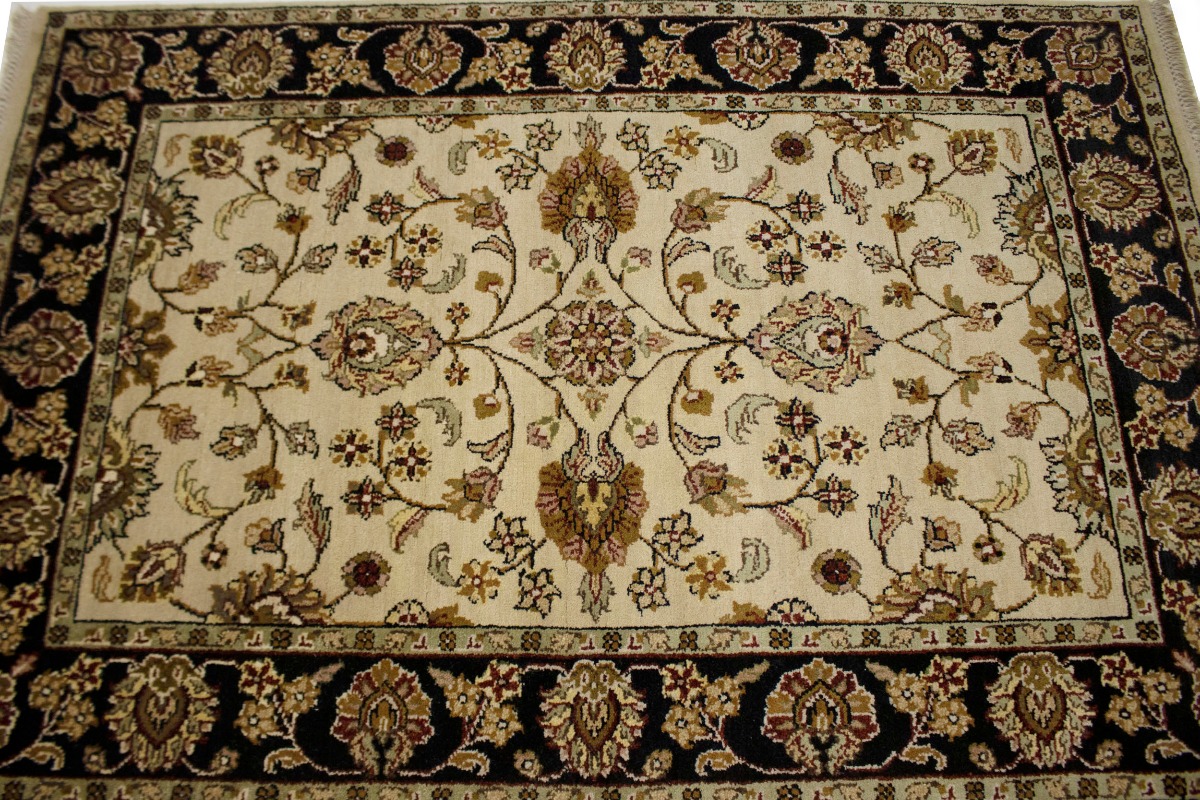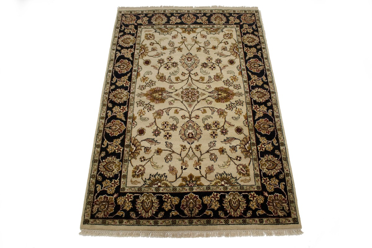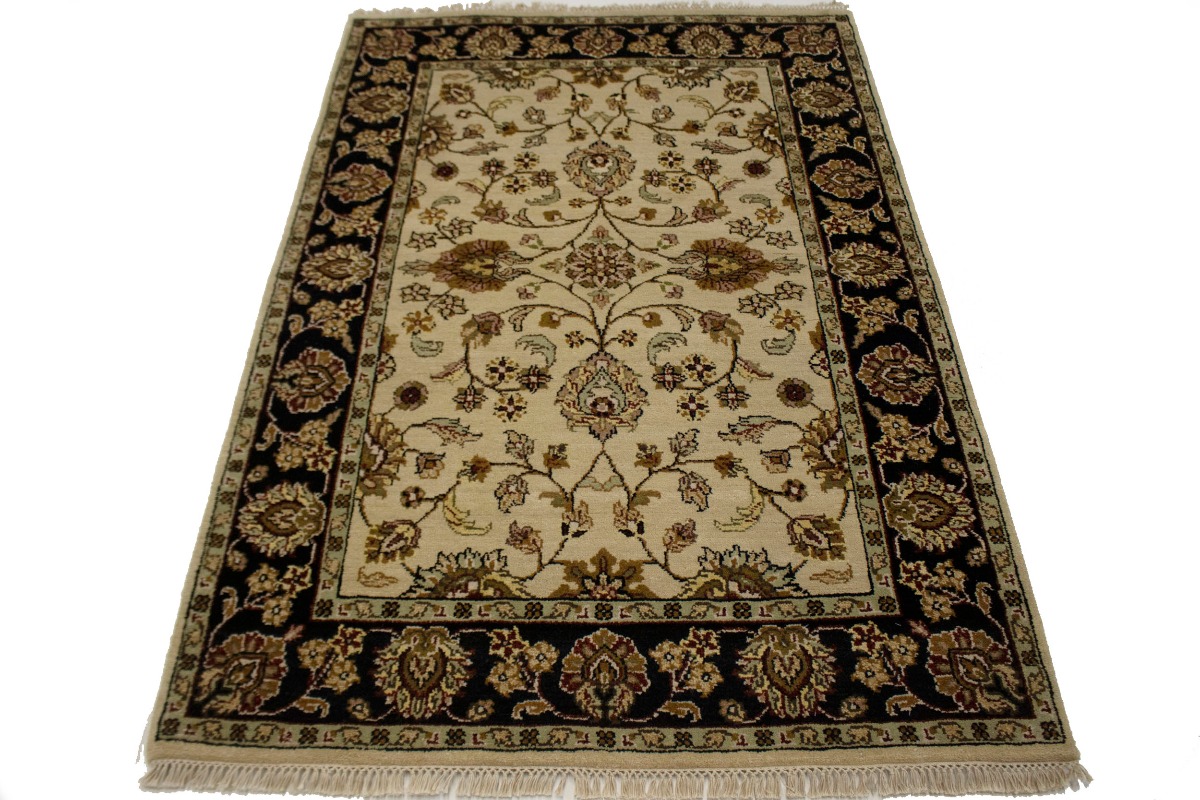Hand Knotted 4X6 cream oriental rug made with vegetable dyes (fine wool pile and cotton foundation), exceptional knot count, and appealing ancient designs. This Oriental rug never will go out of style and would be among your most valuable treasures.