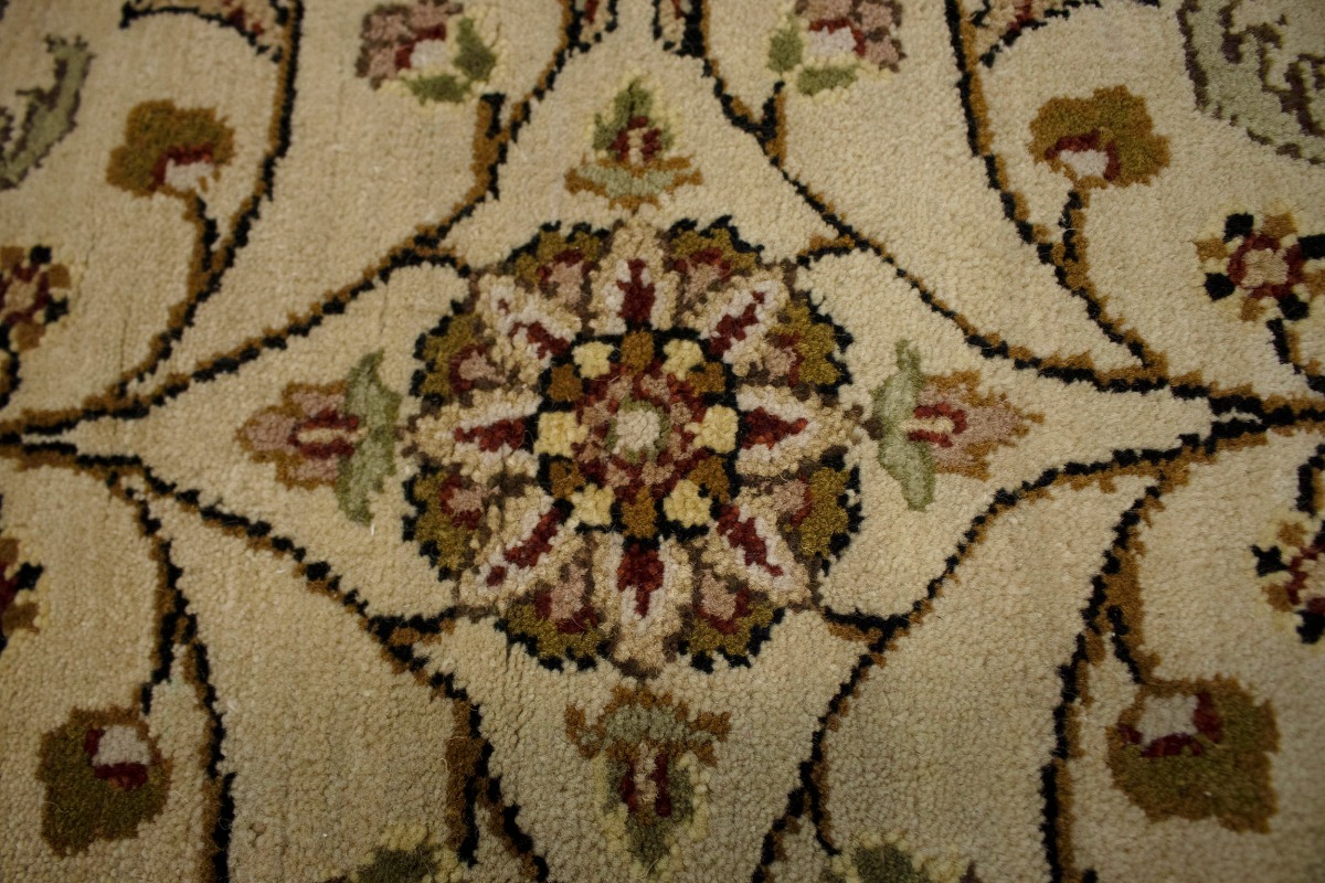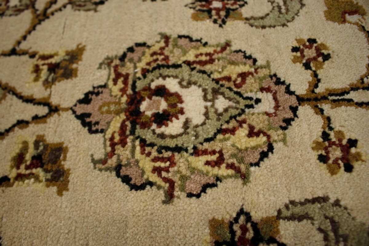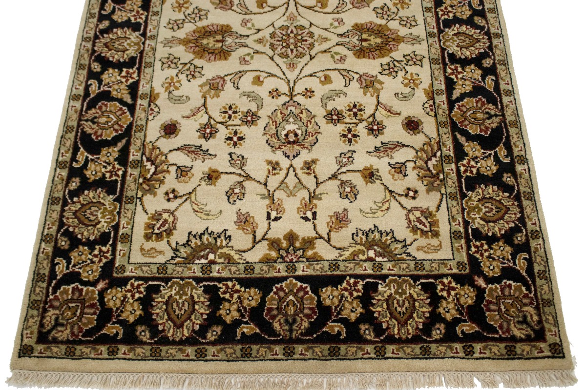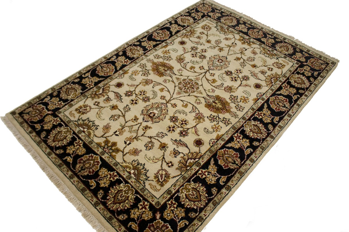 Hand Knotted 4X6 cream oriental rug made with vegetable dyes (fine wool pile and cotton foundation), exceptional knot count, and appealing ancient designs. This Oriental rug never will go out of style and would be among your most valuable treasures.