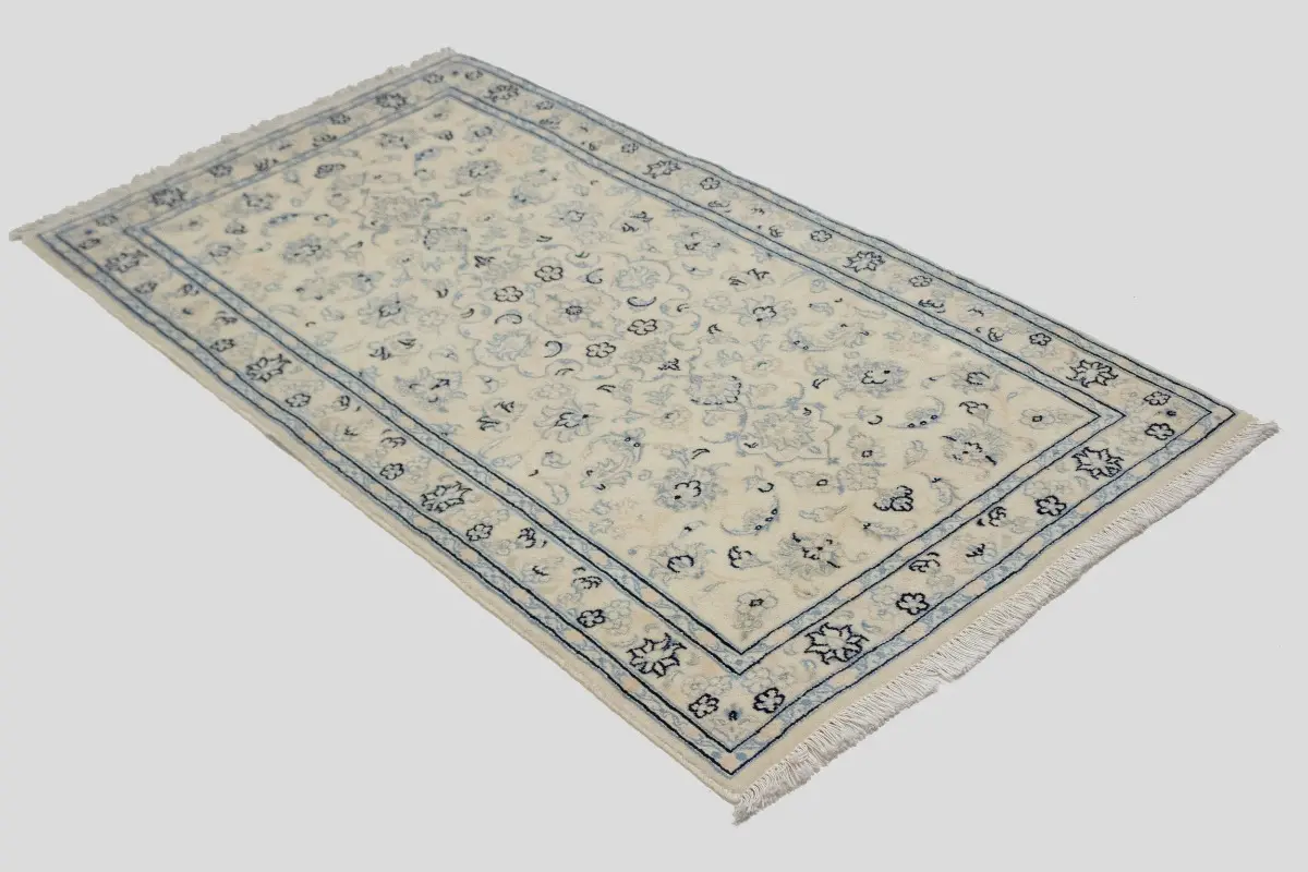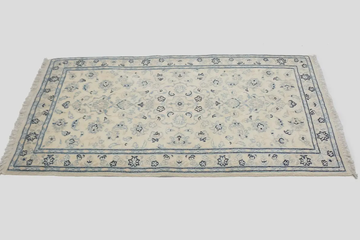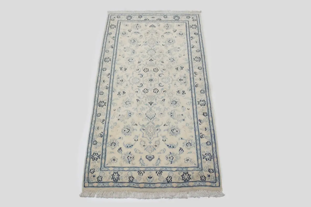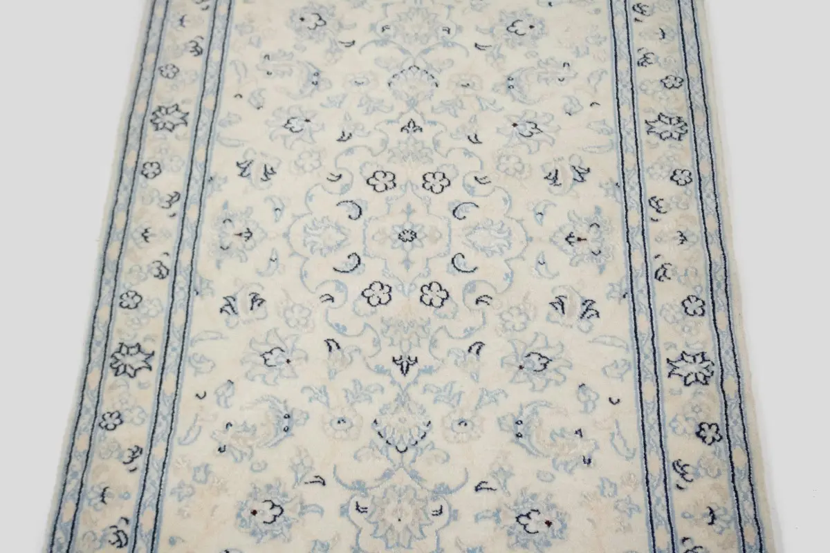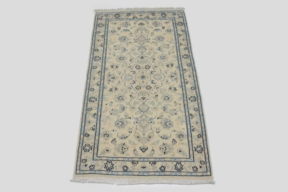 Cream Floral Classic 2X5 Traditional Nain Persian Oriental Rug