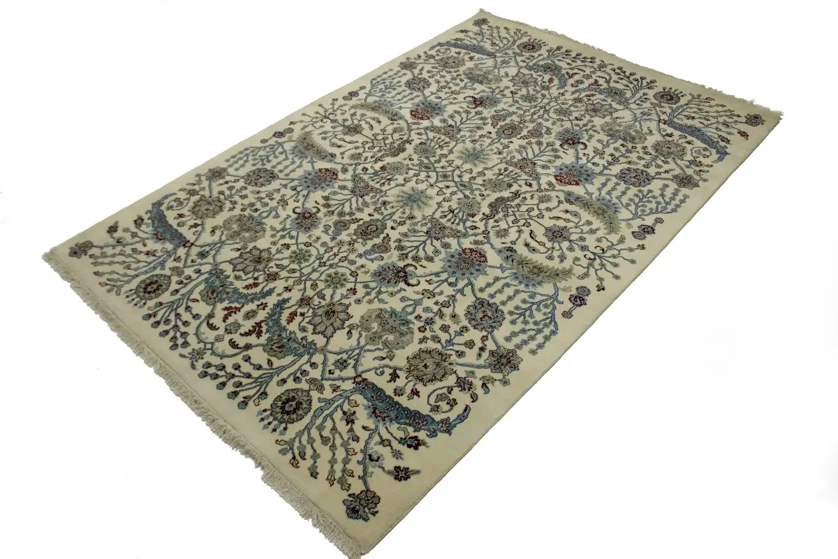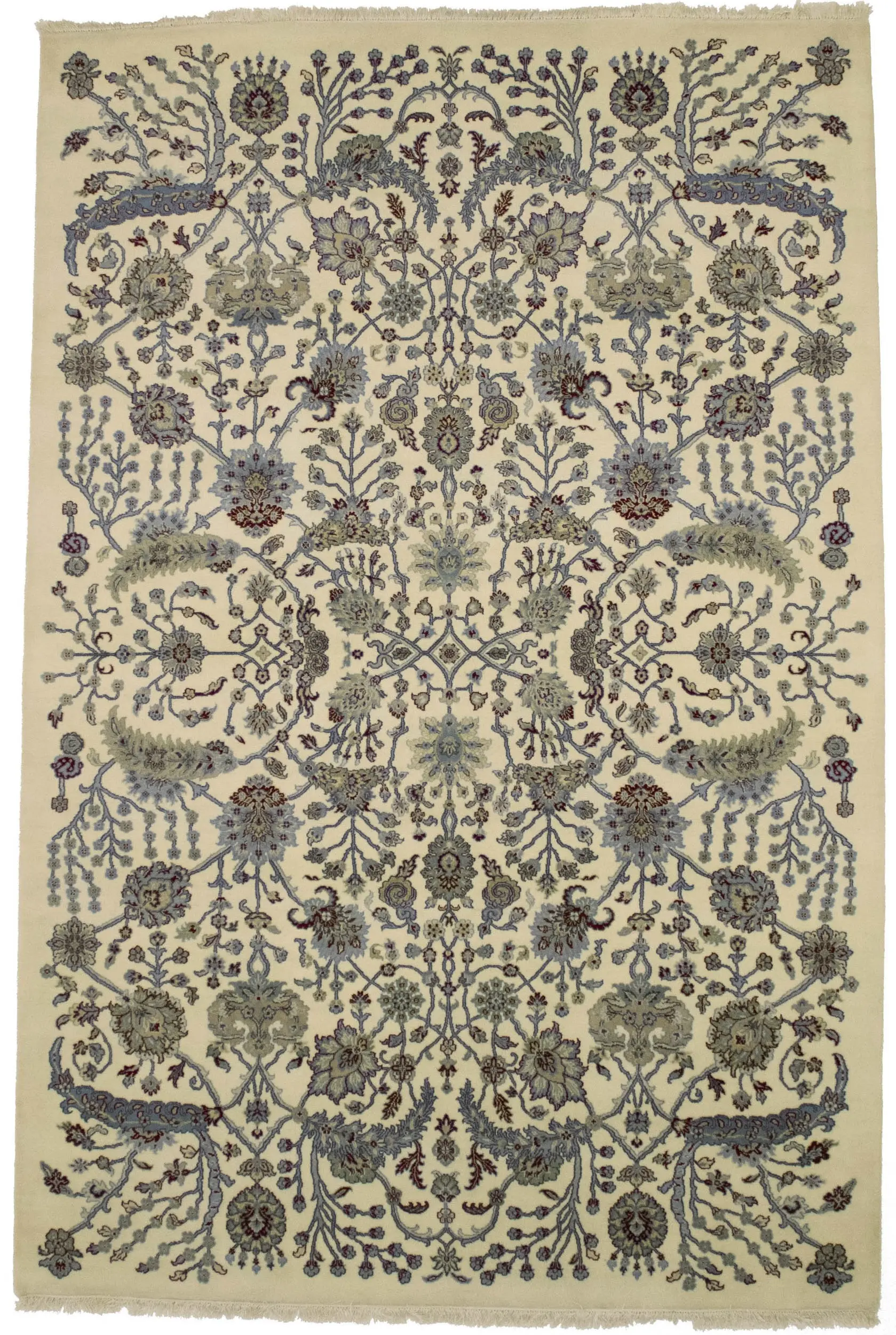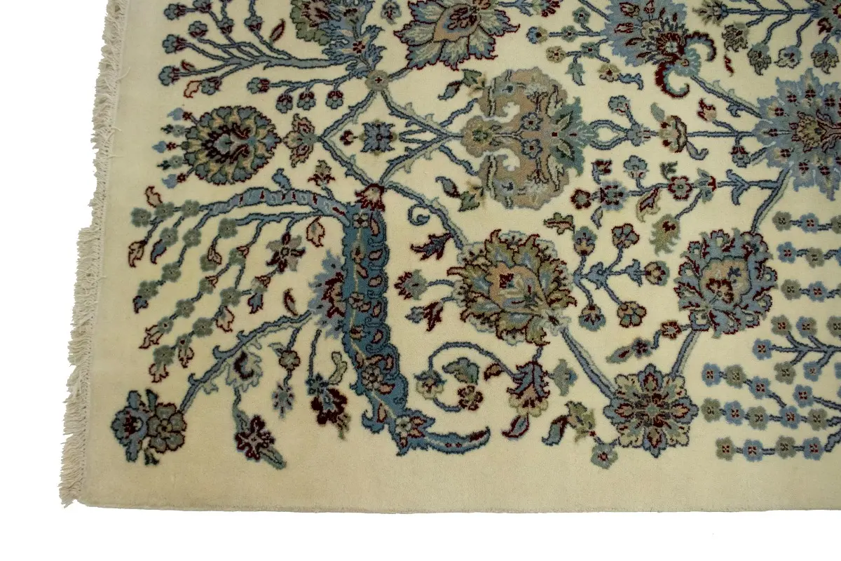 Cream Classic Floral 7X10 Traditional Indo-Kashan Oriental Rug
