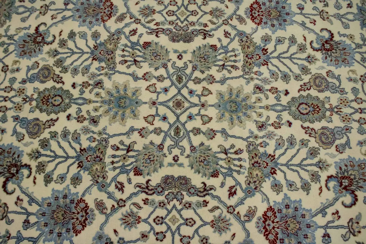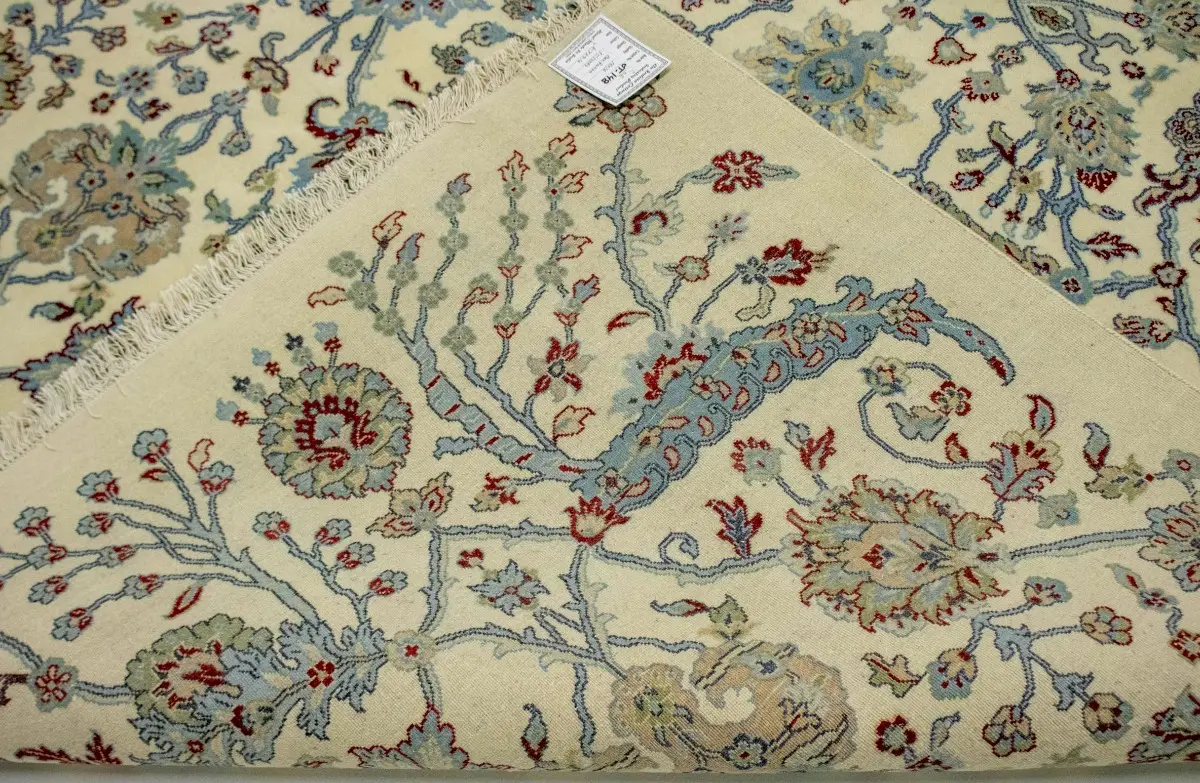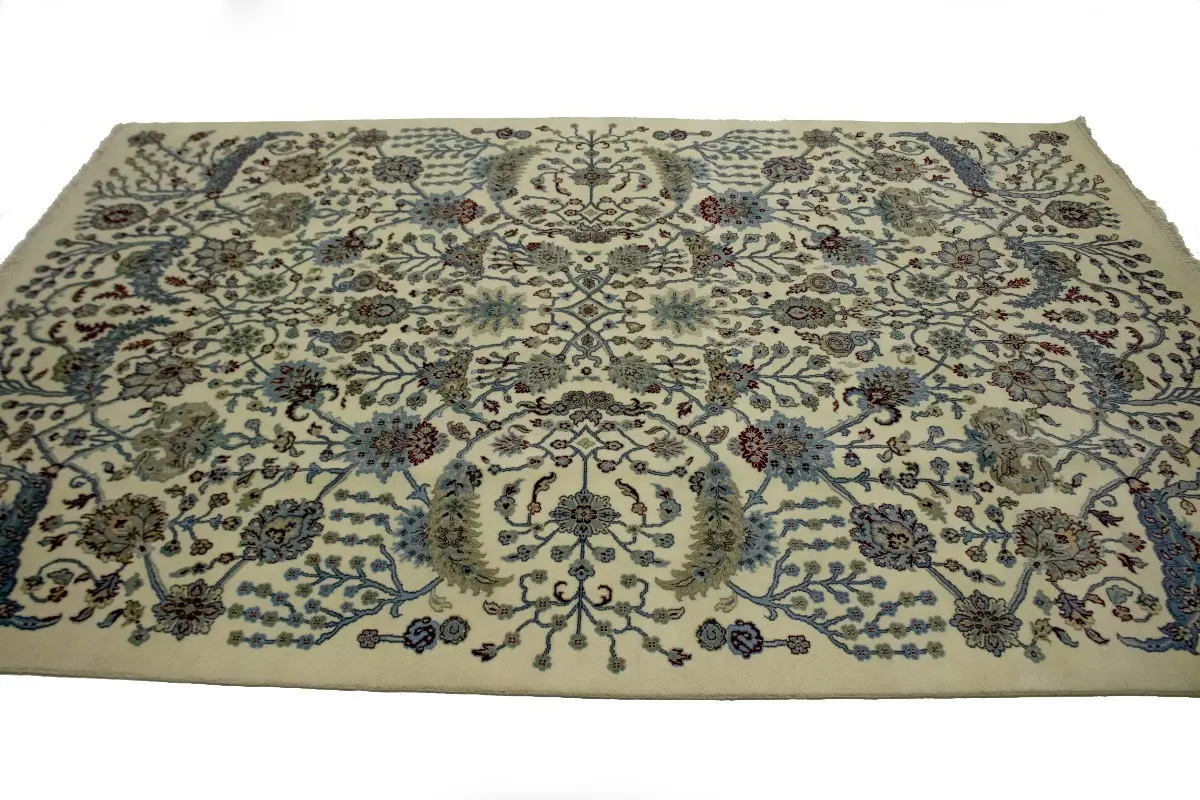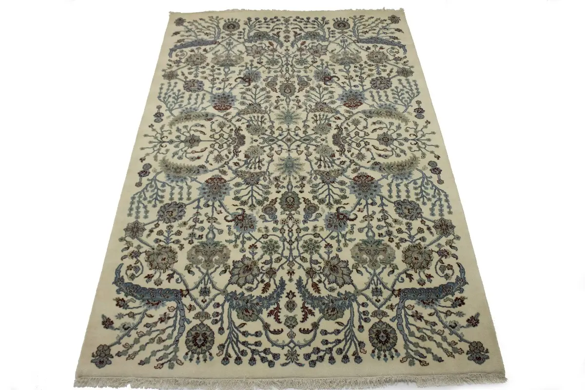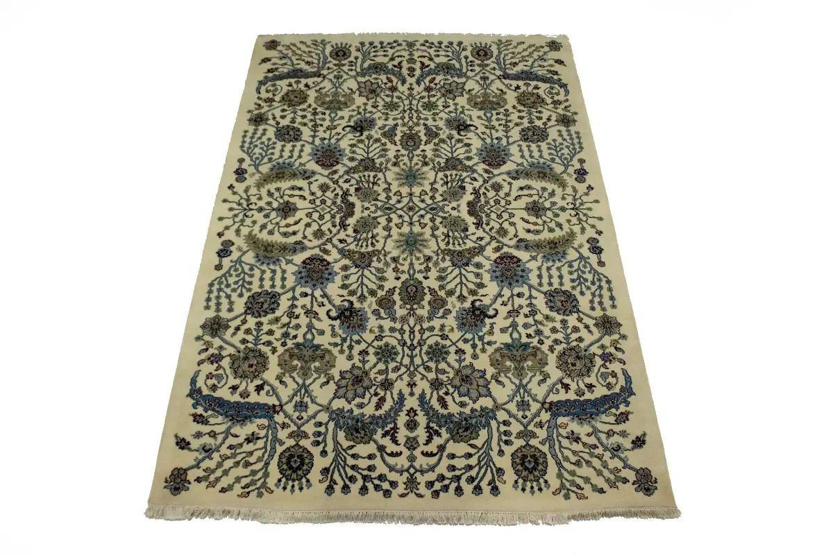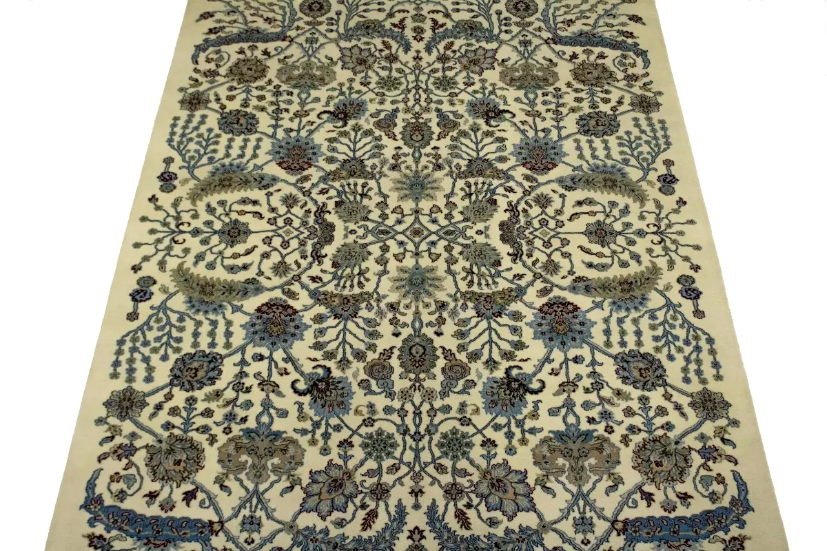 Hand Knotted 7X10 cream Oriental rug made with natural dyes (fine wool pile and cotton foundation), superior knot count, and appealing ancient designs. This Oriental rug never will go out of style and would be among your most valuable treasures.