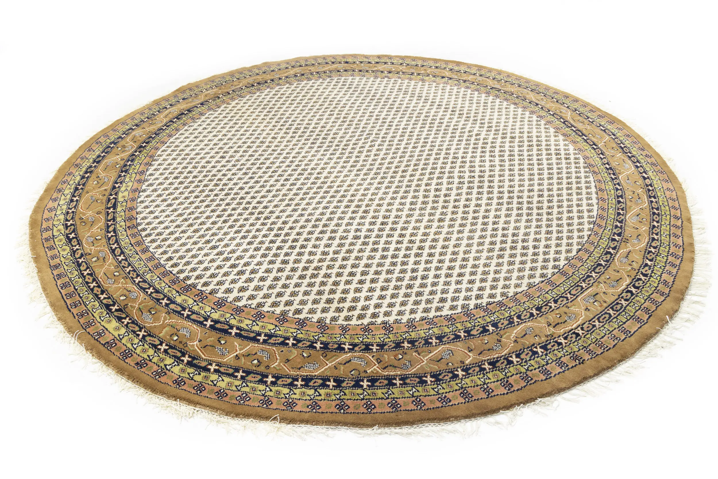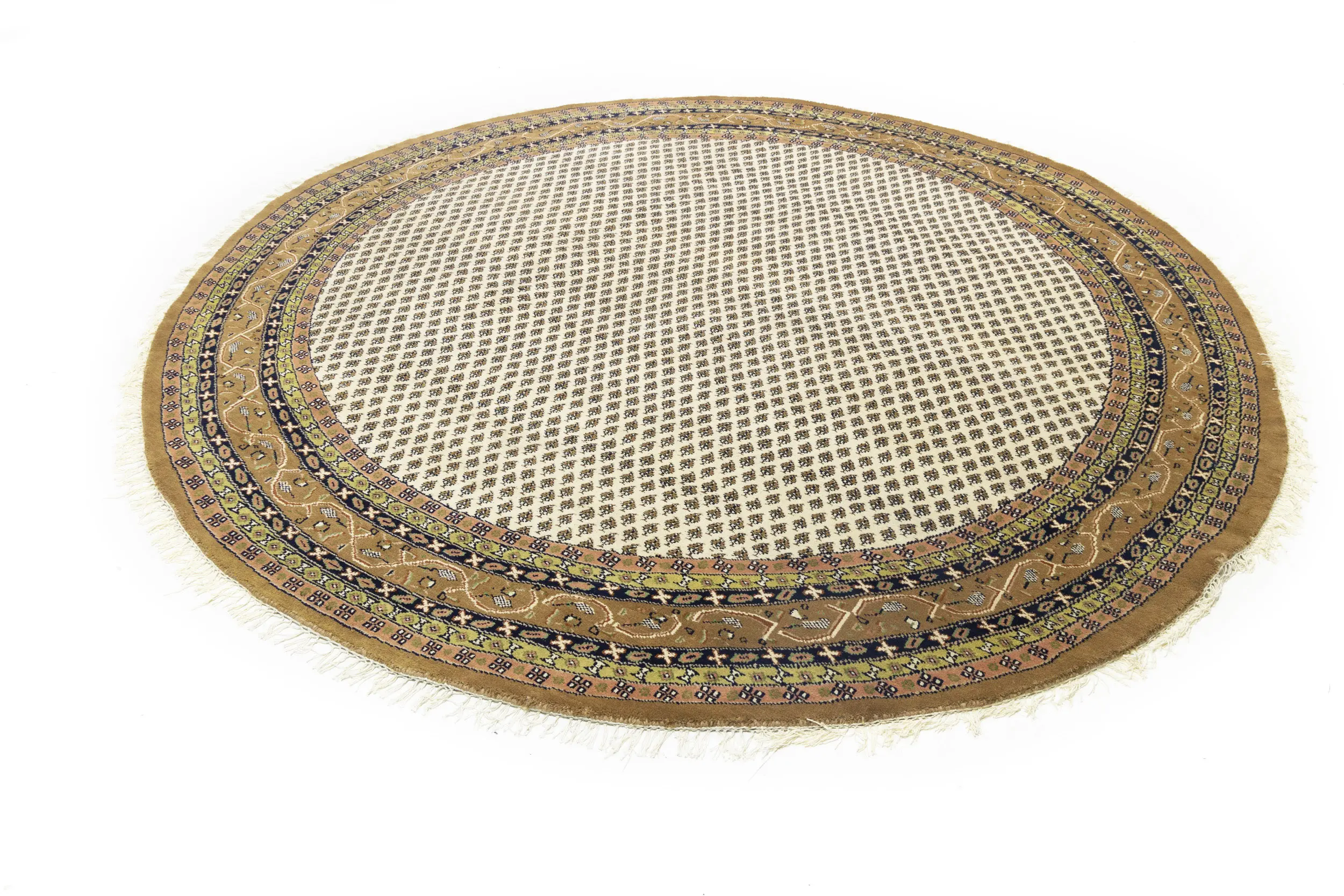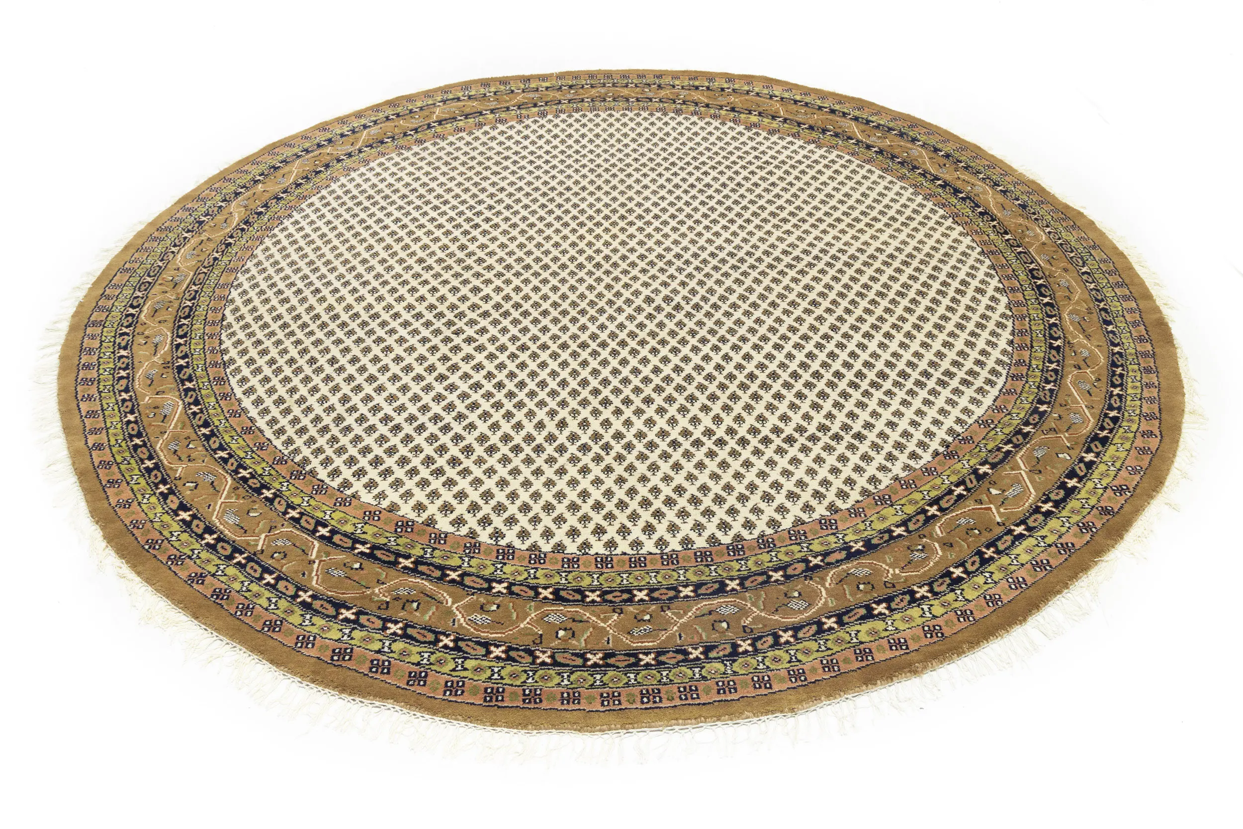 Cream Floral 10X10 Indo Botemir Oriental Round Rug