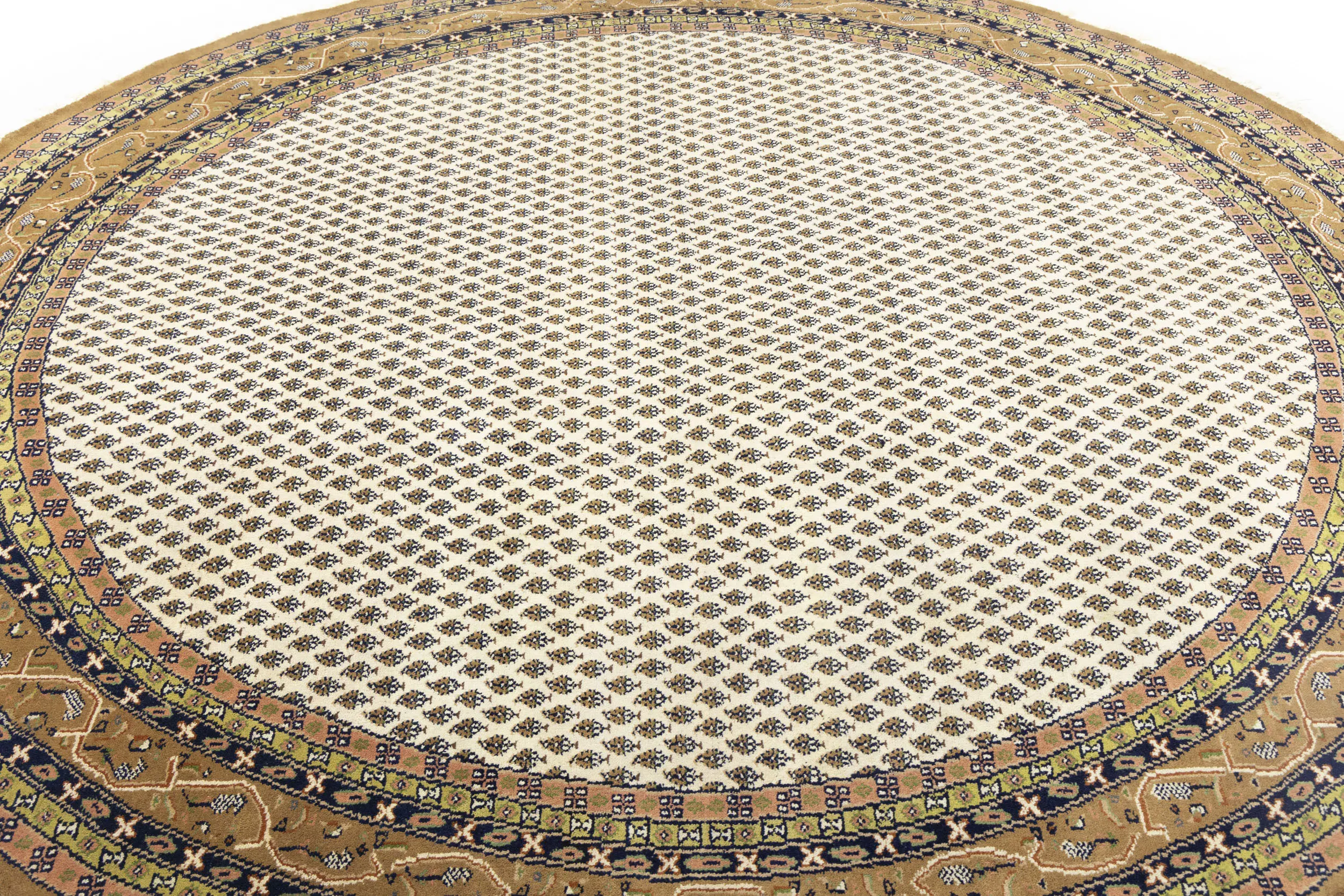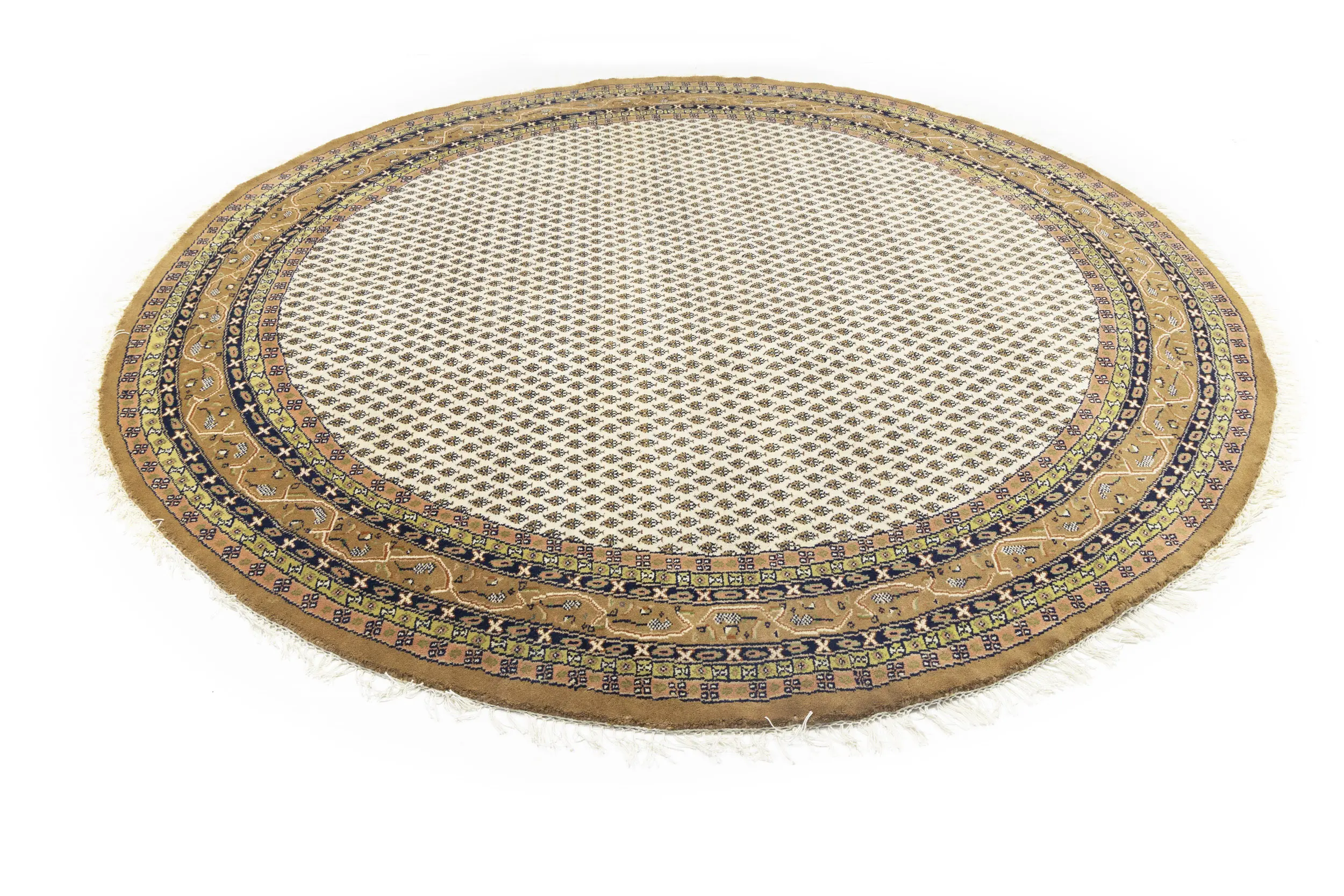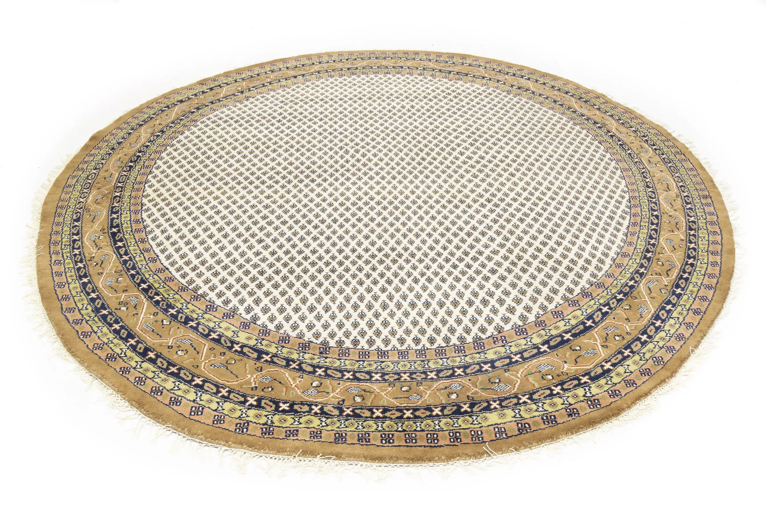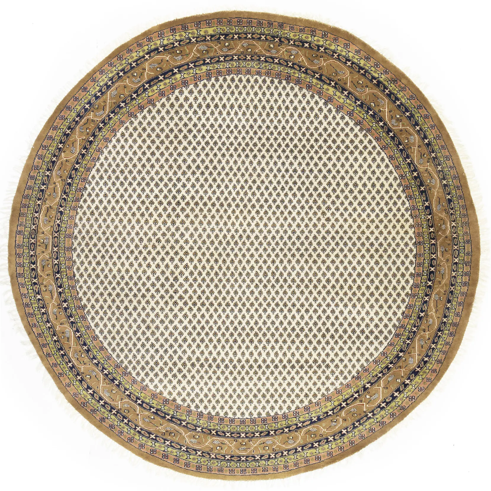 Cream Floral 10X10 Indo Botemir Oriental Round Rug