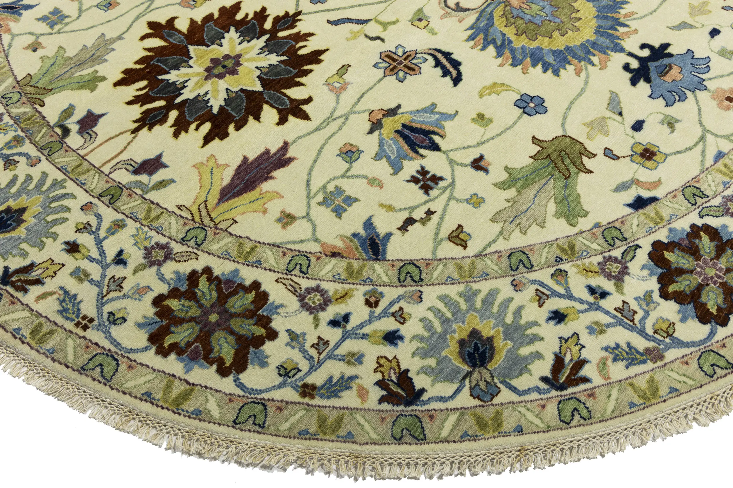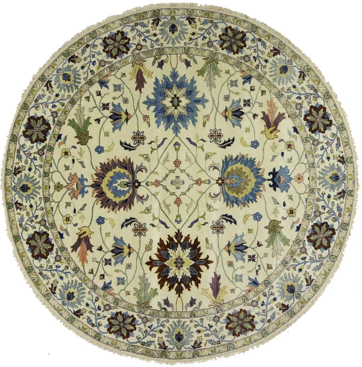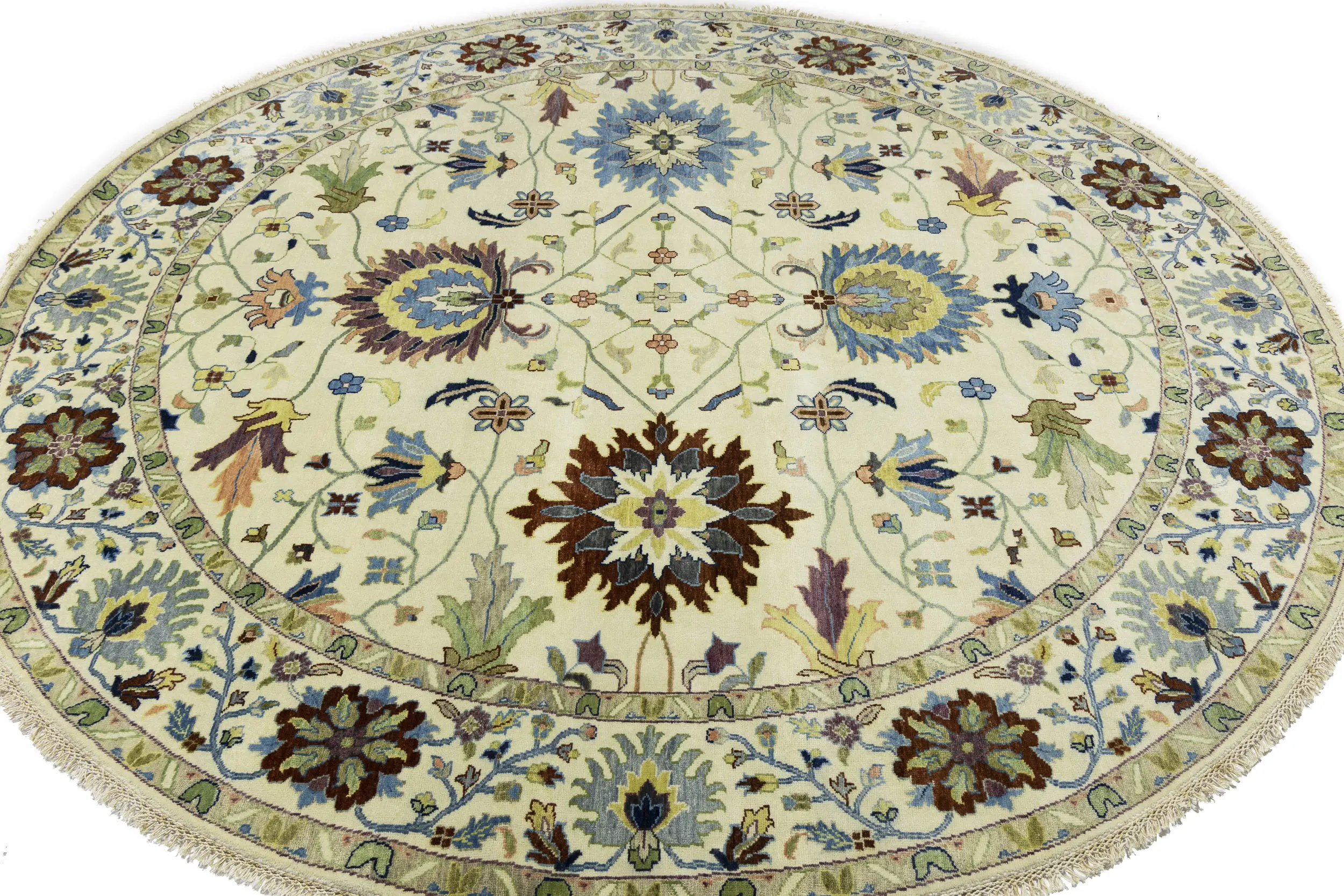 Cream Floral 10X10 Osh Chobi Peshawar Oriental Round Rug