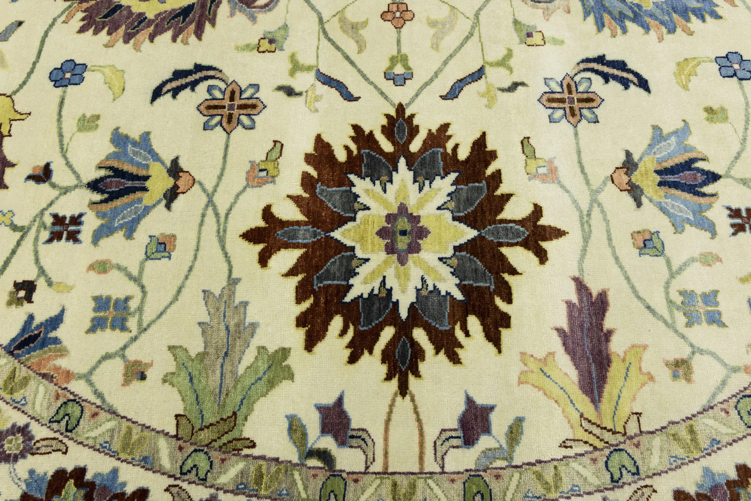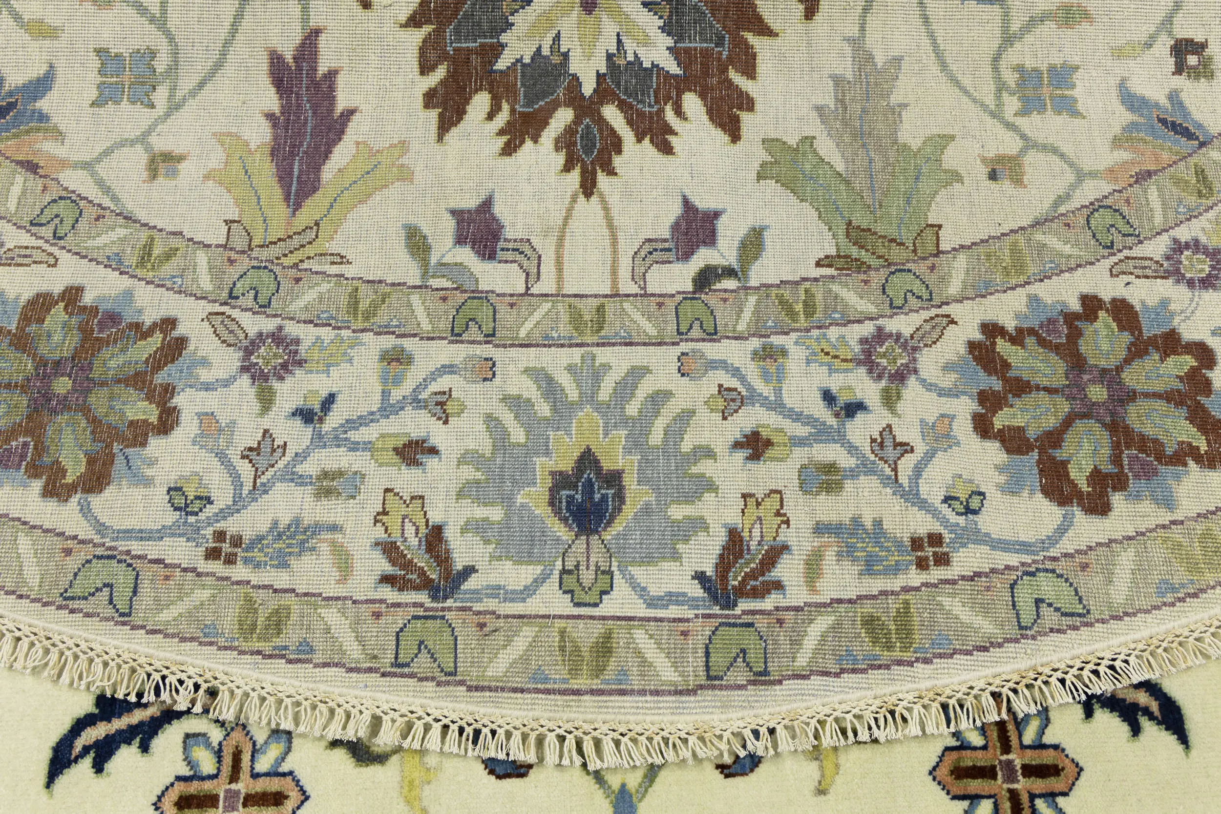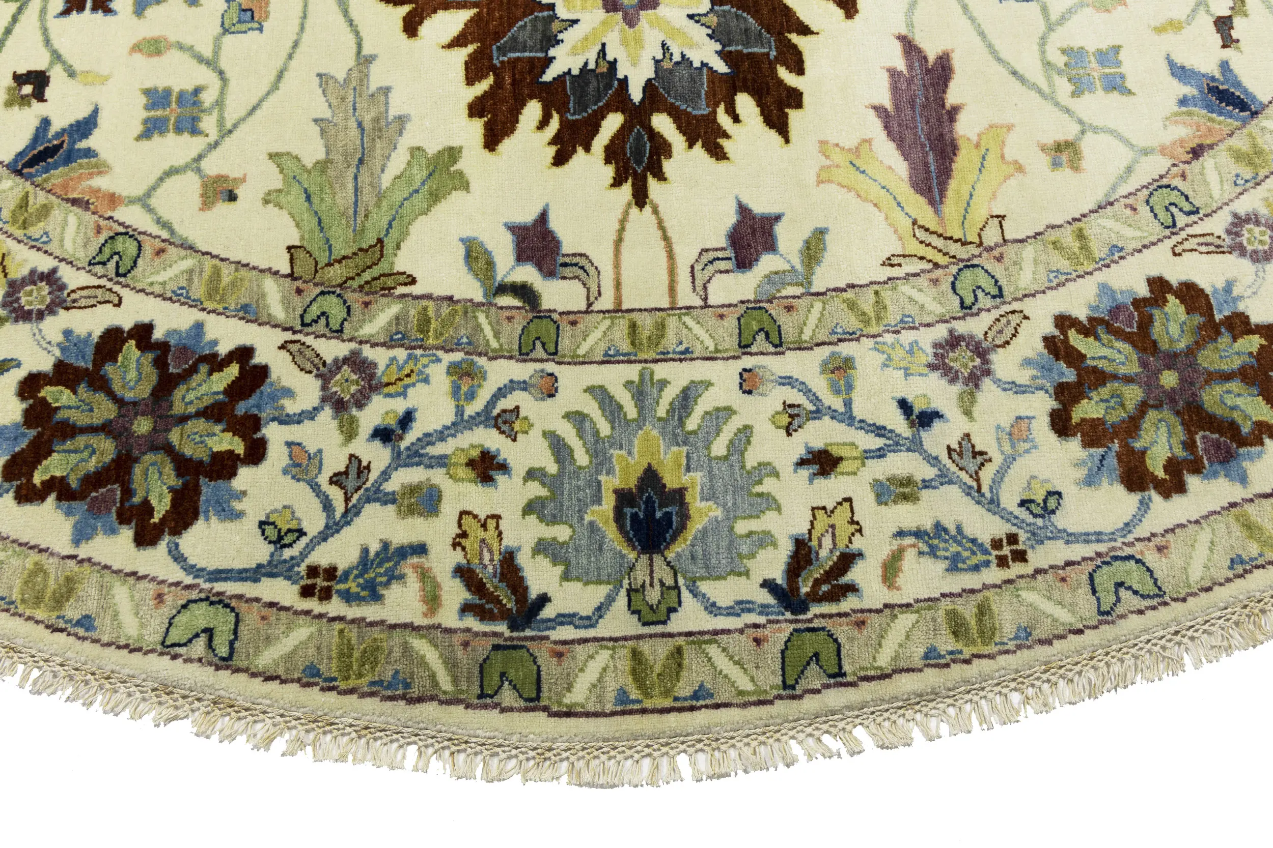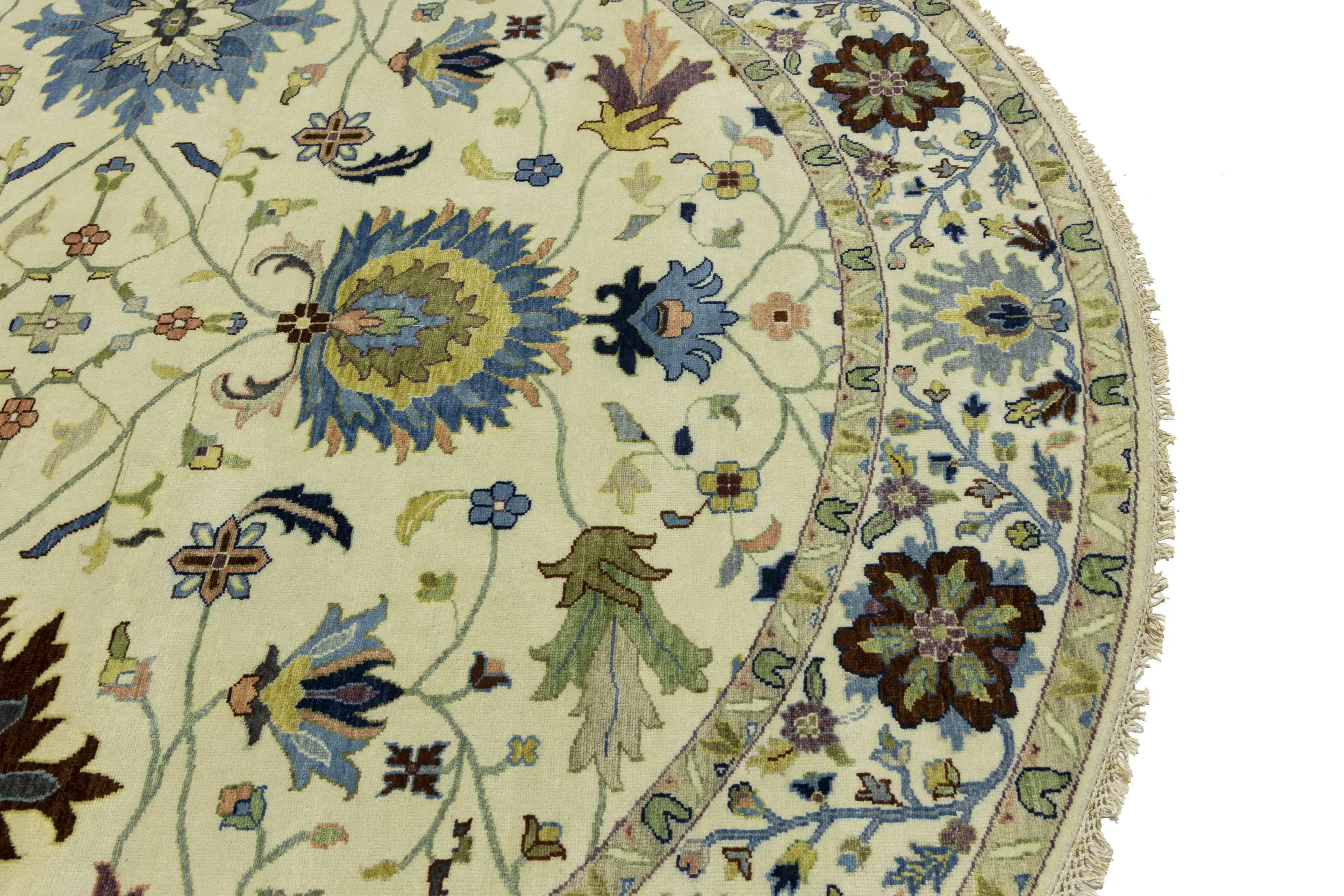 Cream Floral 10X10 Osh Chobi Peshawar Oriental Round Rug