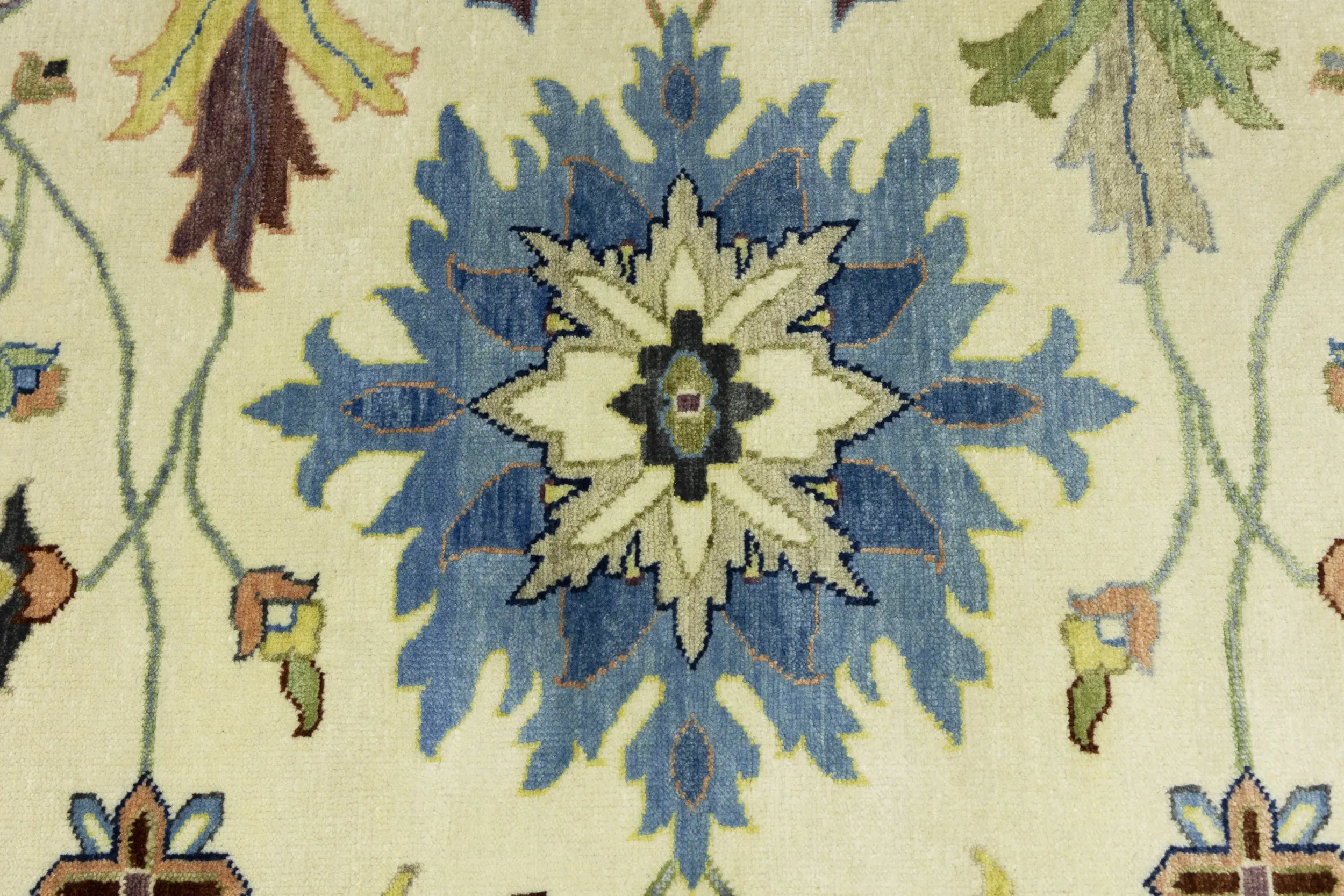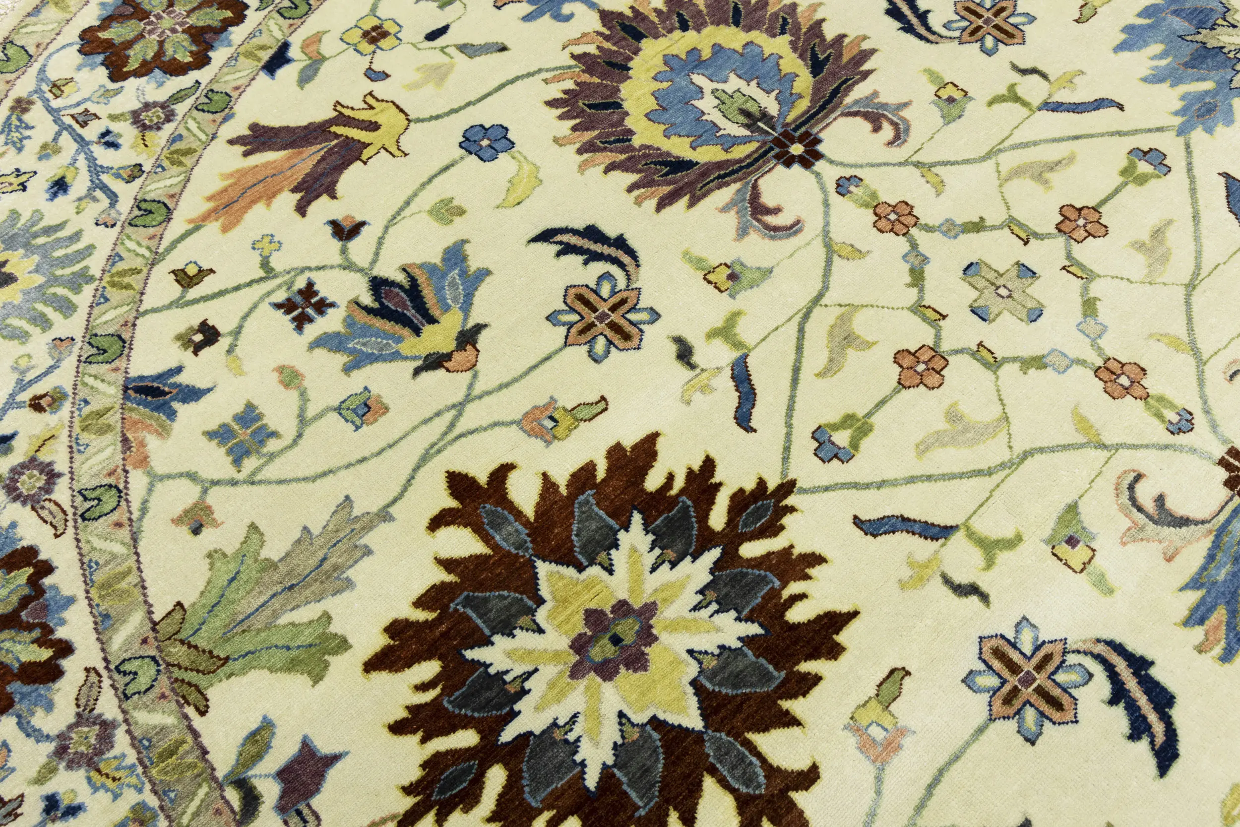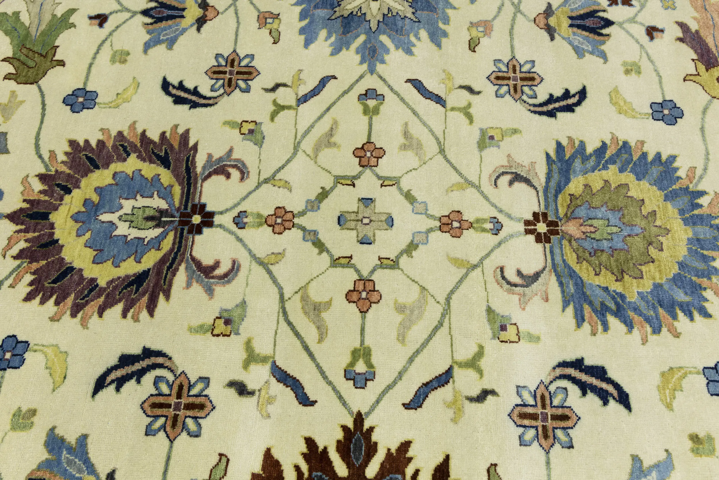 Hand Knotted 10X10 cream Oriental rug made with vegetable dyes (fine wool pile and cotton foundation), superior knot count, and appealing ancient designs. This Oriental rug never will go out of style and would be among your most valuable treasures.