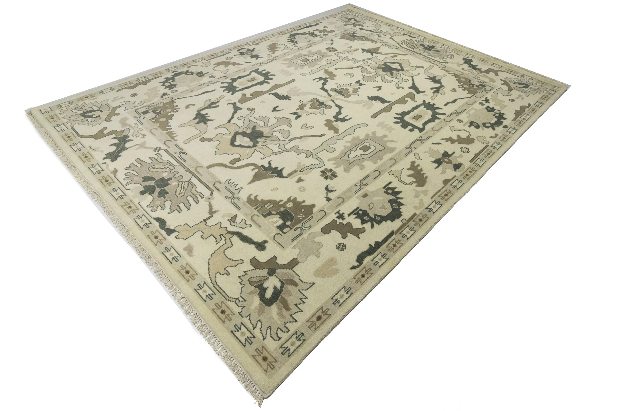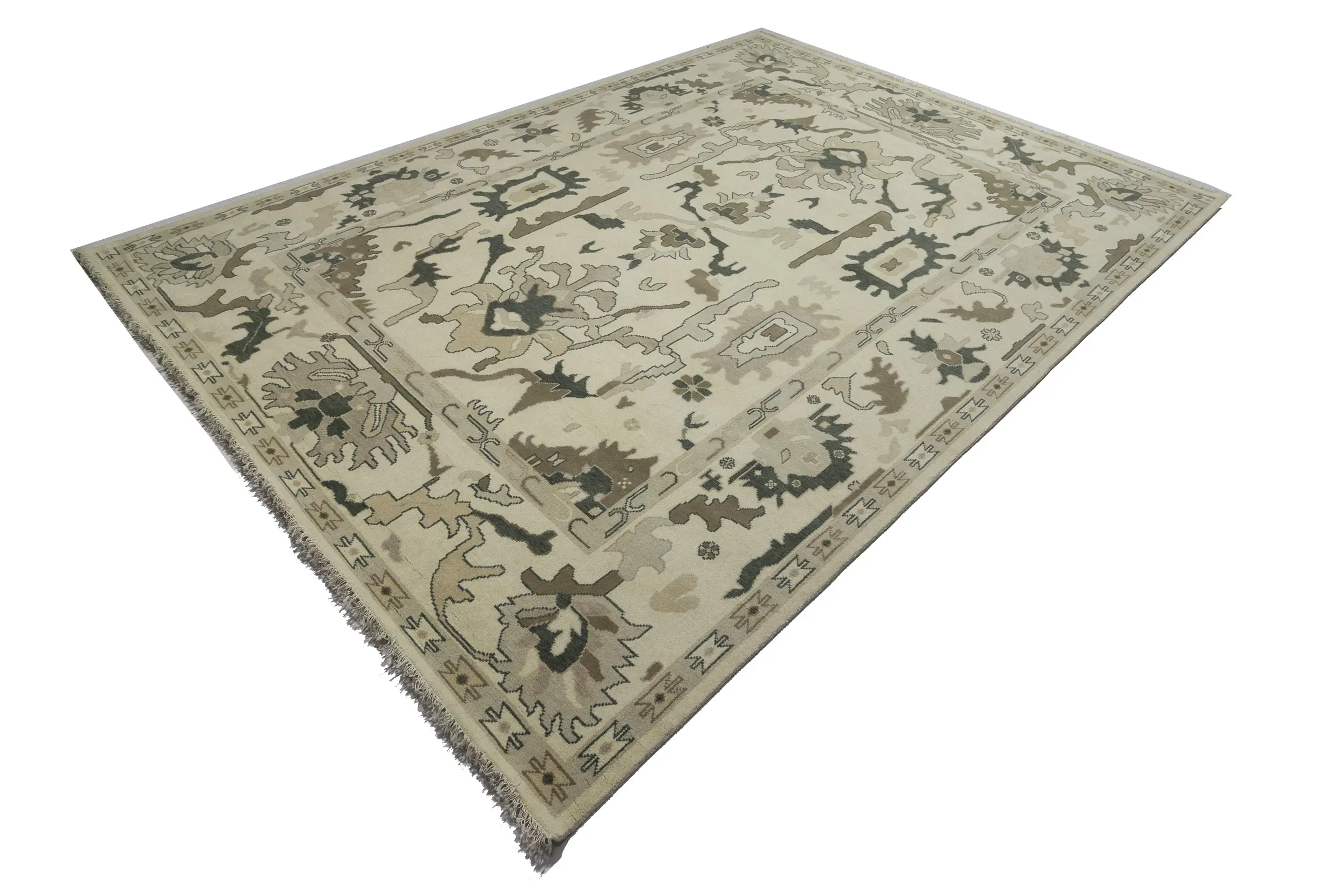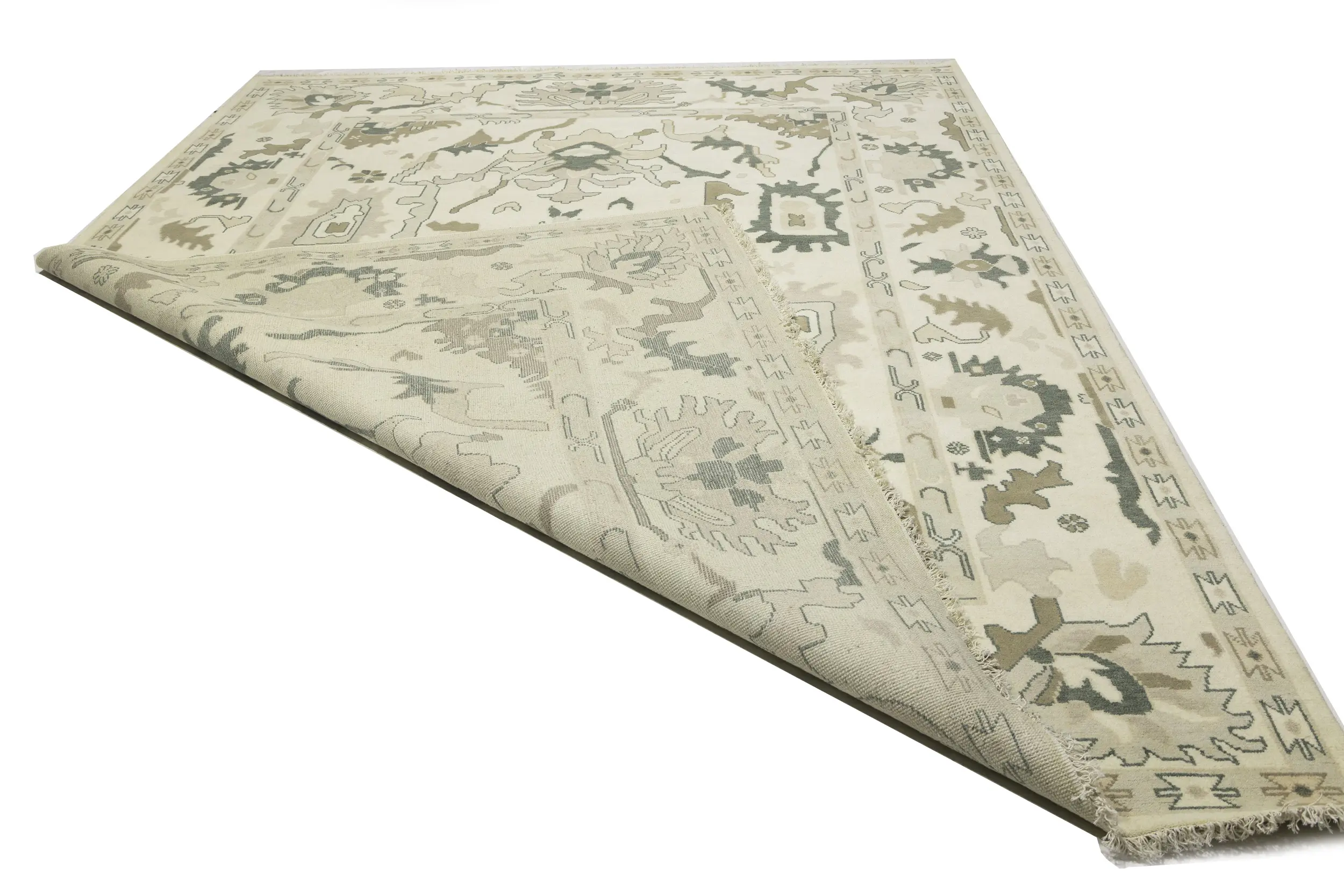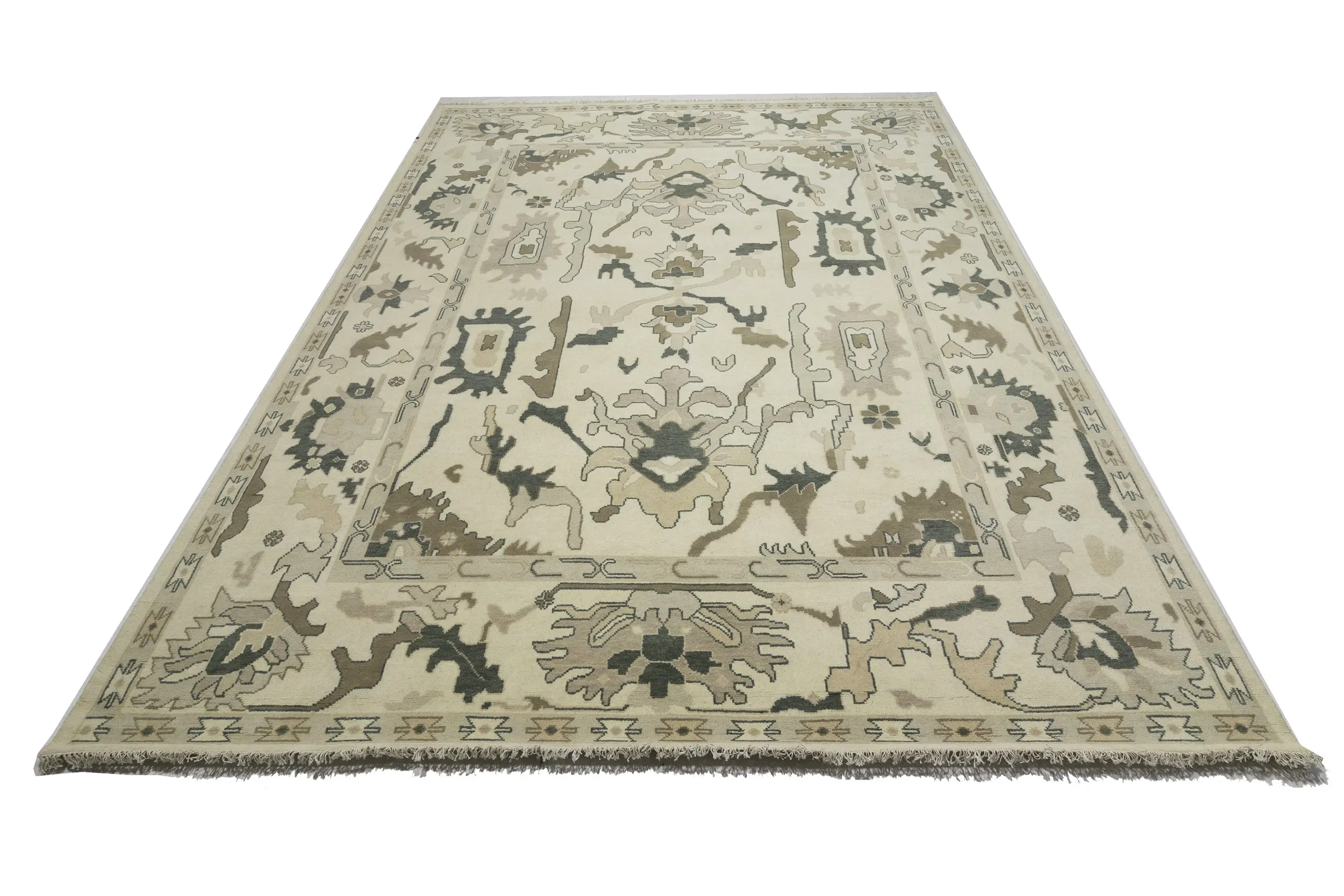 Cream Floral 10X14 Oushak Chobi Oriental Rug
