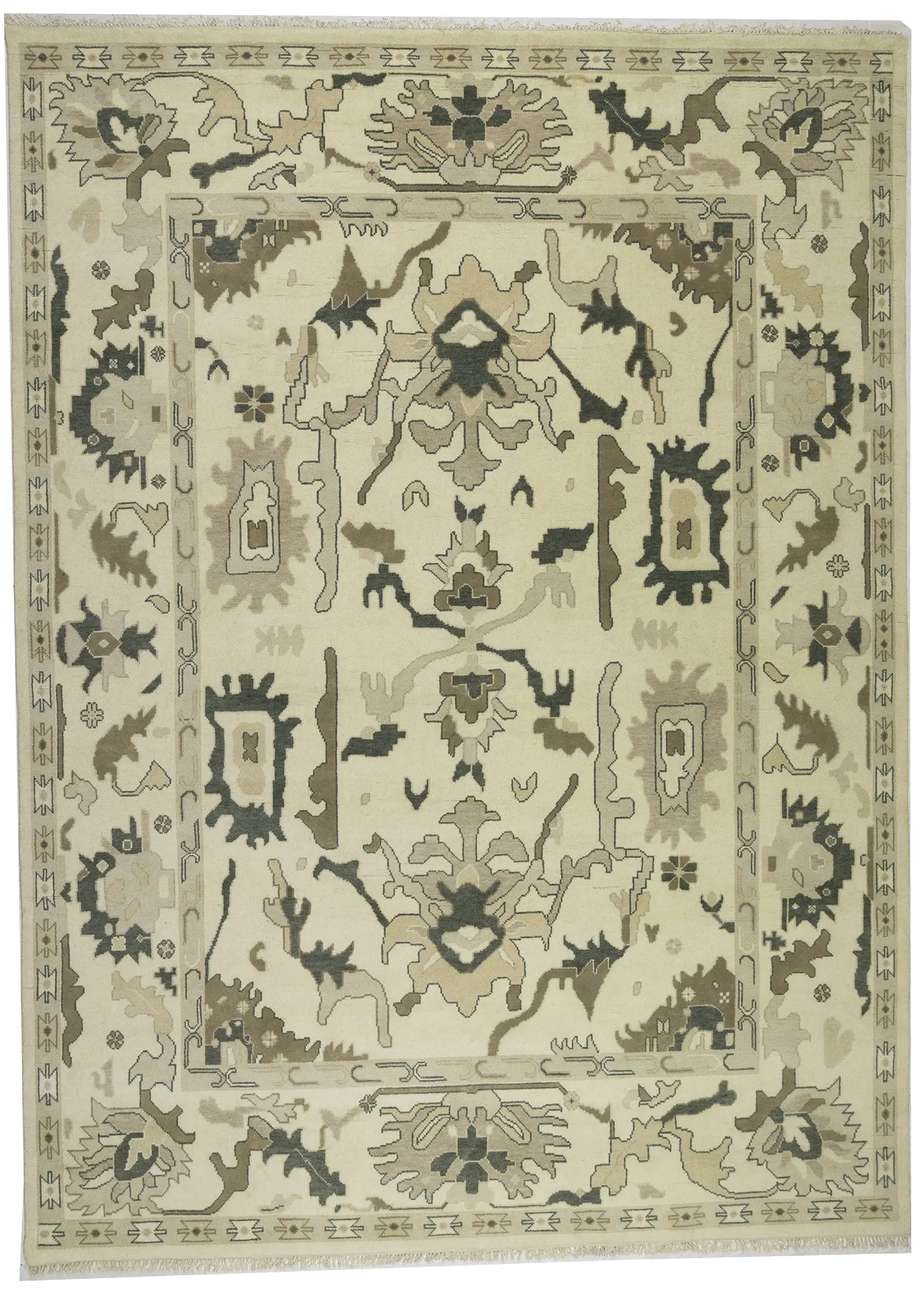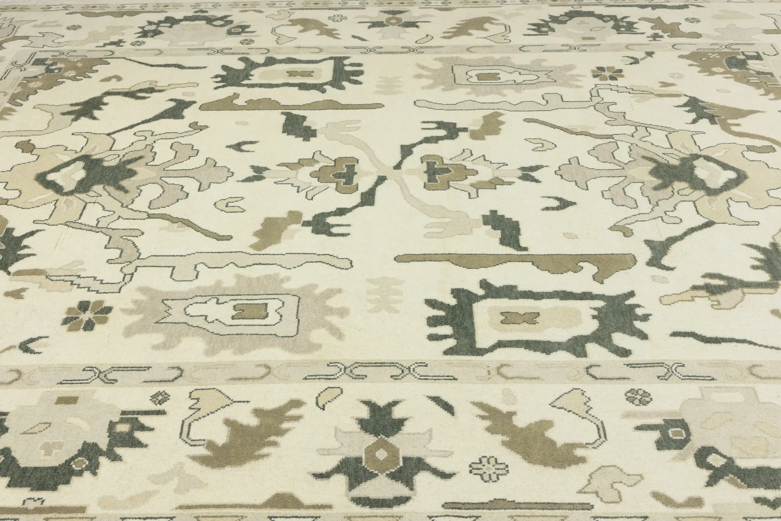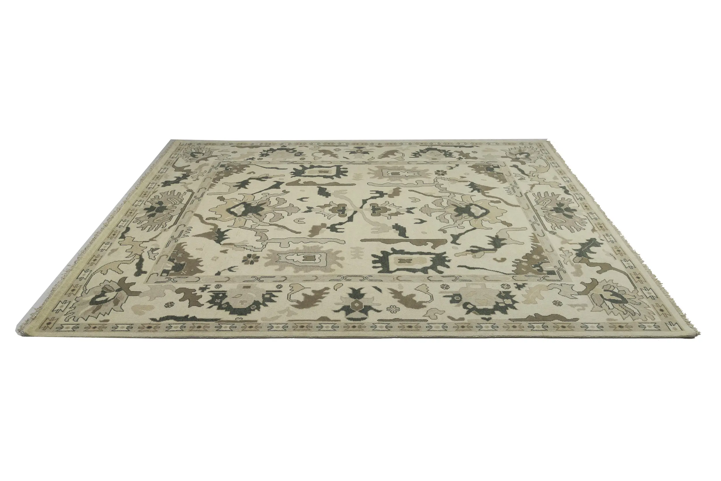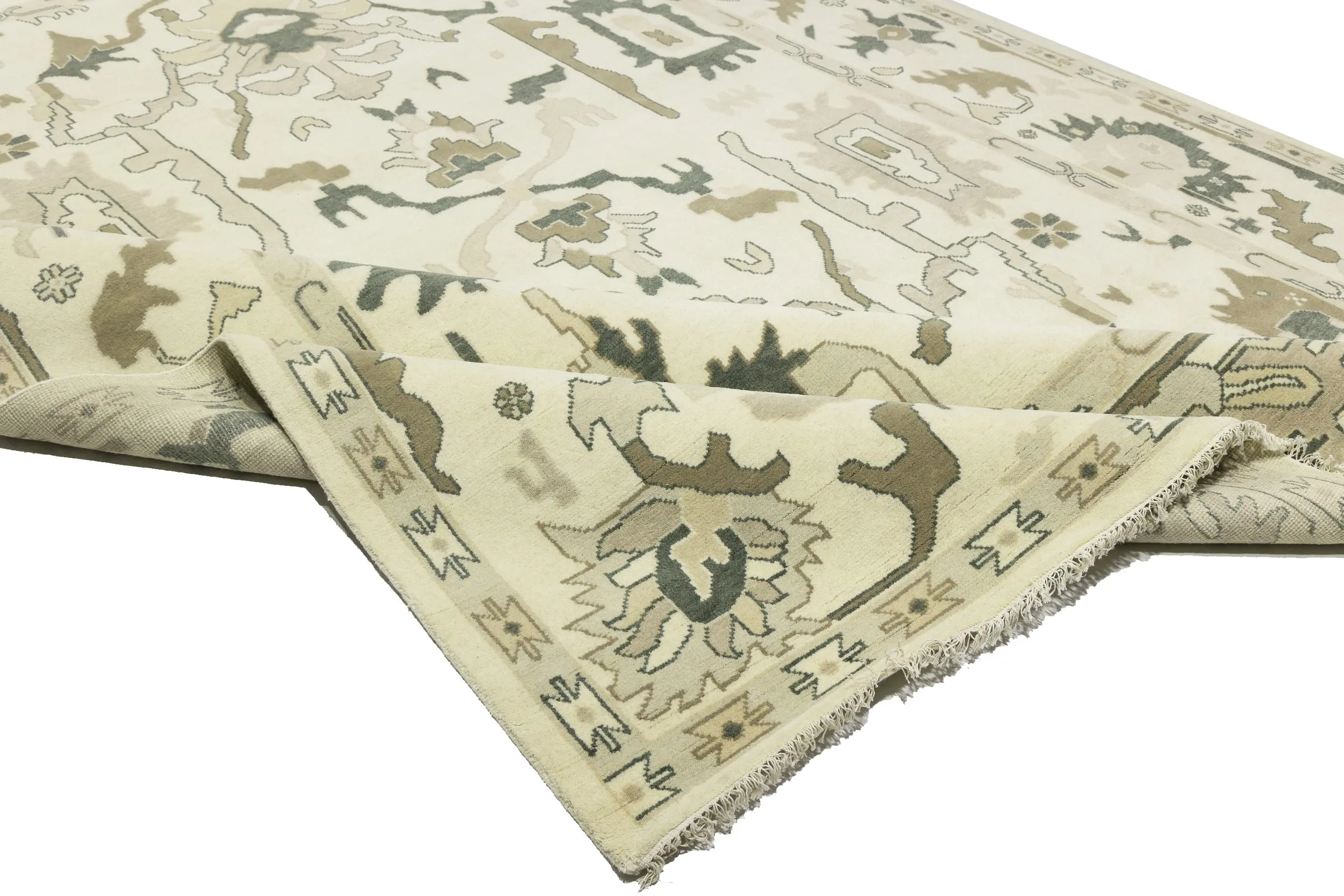 Cream Floral 10X14 Oushak Chobi Oriental Rug