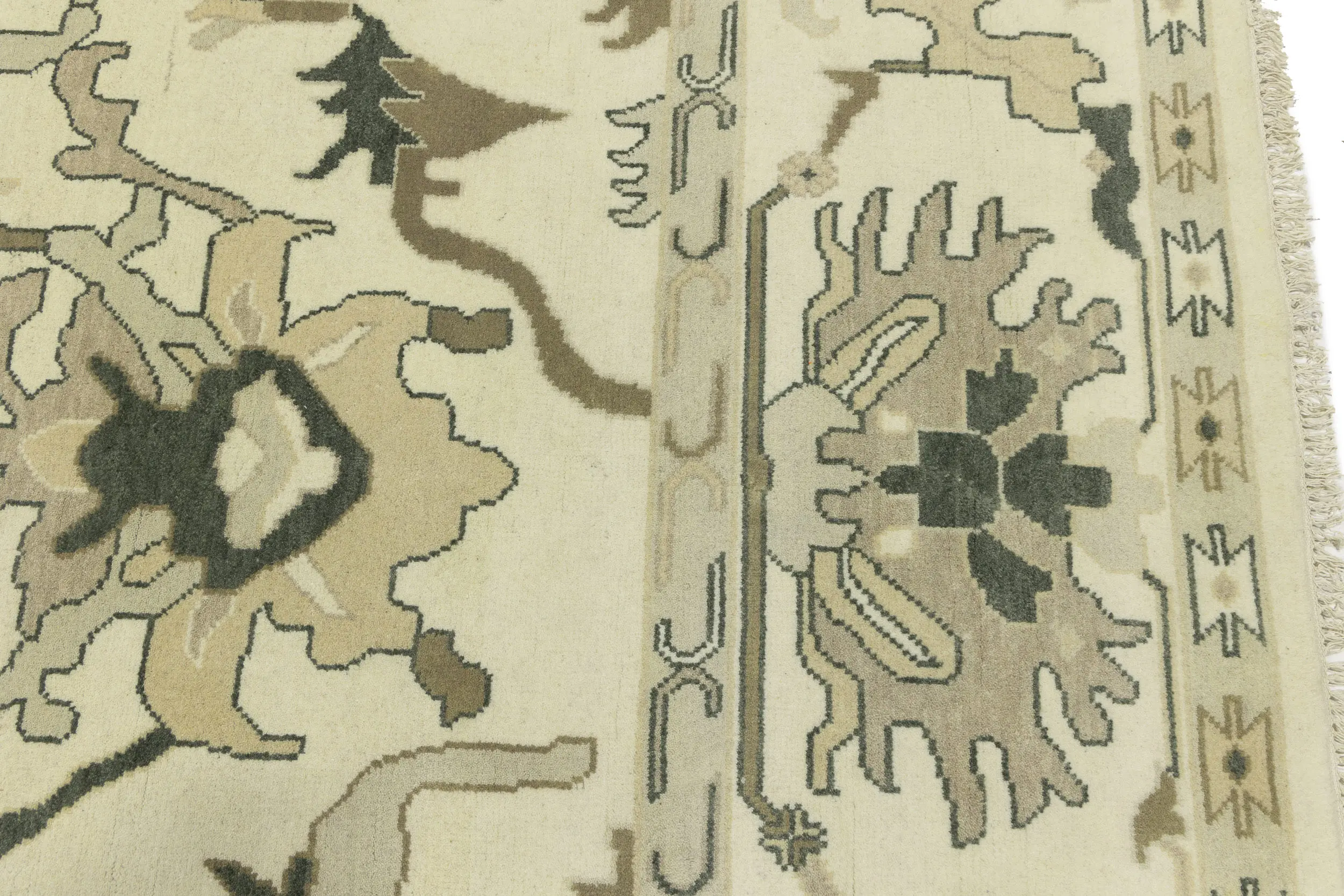This original 10X14 Cream new Oriental rug was finely knotted by the hands of weavers influenced by a variety of amazing artistic designs, to recreate the aged look of the exceptional piece with a richness of color and embellished background field. What set this vintage style Oriental area rug from the others are the material and dye used (wool pile and cotton foundation), knot count, antique designs, fantastic grades, and its regional historical connection: it has deep roots, from the story of the people who produced it to the meaning of the symbols and colors displayed across its canvas that have been praised for centuries. This Indian home décor carpet will be completely cozy and inviting that never will go out of style! Also, this Oriental rug would be among your most valuable treasures, it is a great investment that increase in value over time, and it will last a lifetime because was woven with high-quality, all-natural wool. Eco-friendly, opulent yet affordable; this rug will give you an extra pop of character to help define your home environment with luxury and warmth that will capture the eyes and attention of your audience (homeowners, designers, decorators, family and friends).