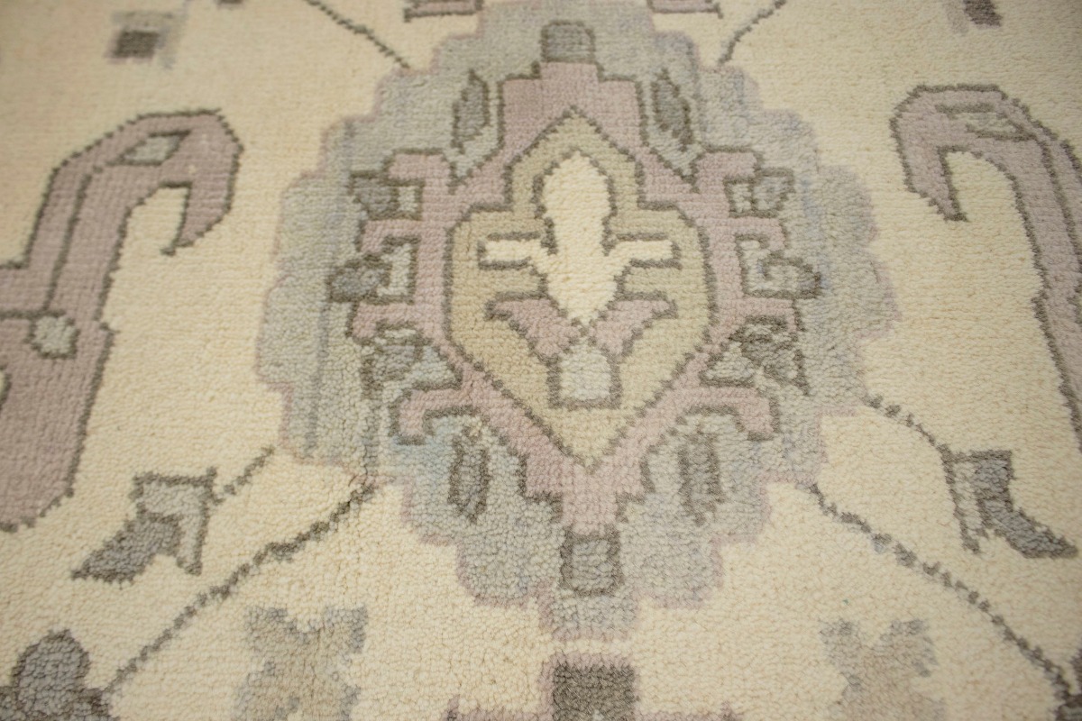 This original 10X14 cream new Oriental rug was made by the hands of talented weavers influenced by a variety of gorgeous symmetrical artistic designs, to recreate the aged look of the unique piece with a richness of color and very balanced background field. What set this vintage style Oriental area rug from the others are the material and dye used (wool pile and cotton foundation), knot count, antique designs, fantastic grades, and its regional historical connection: it has deep roots, from the story of the people who produced it to the meaning of the symbols and colors displayed across its canvas that have been praised for centuries. This Indian home décor carpet will be completely cozy and inviting that never will go out of style! Also, this Oriental rug would be among your most valuable treasures, it is a great investment that accrues value over time, and it will last a lifetime because was woven with high-quality, all-natural wool. Eco-friendly, opulent yet affordable; this rug will give you an extra pop of character to help define your home environment with sophistication and warmth that will capture the eyes and attention of your audience (homeowners, designers, decorators, family and friends). OT-5501