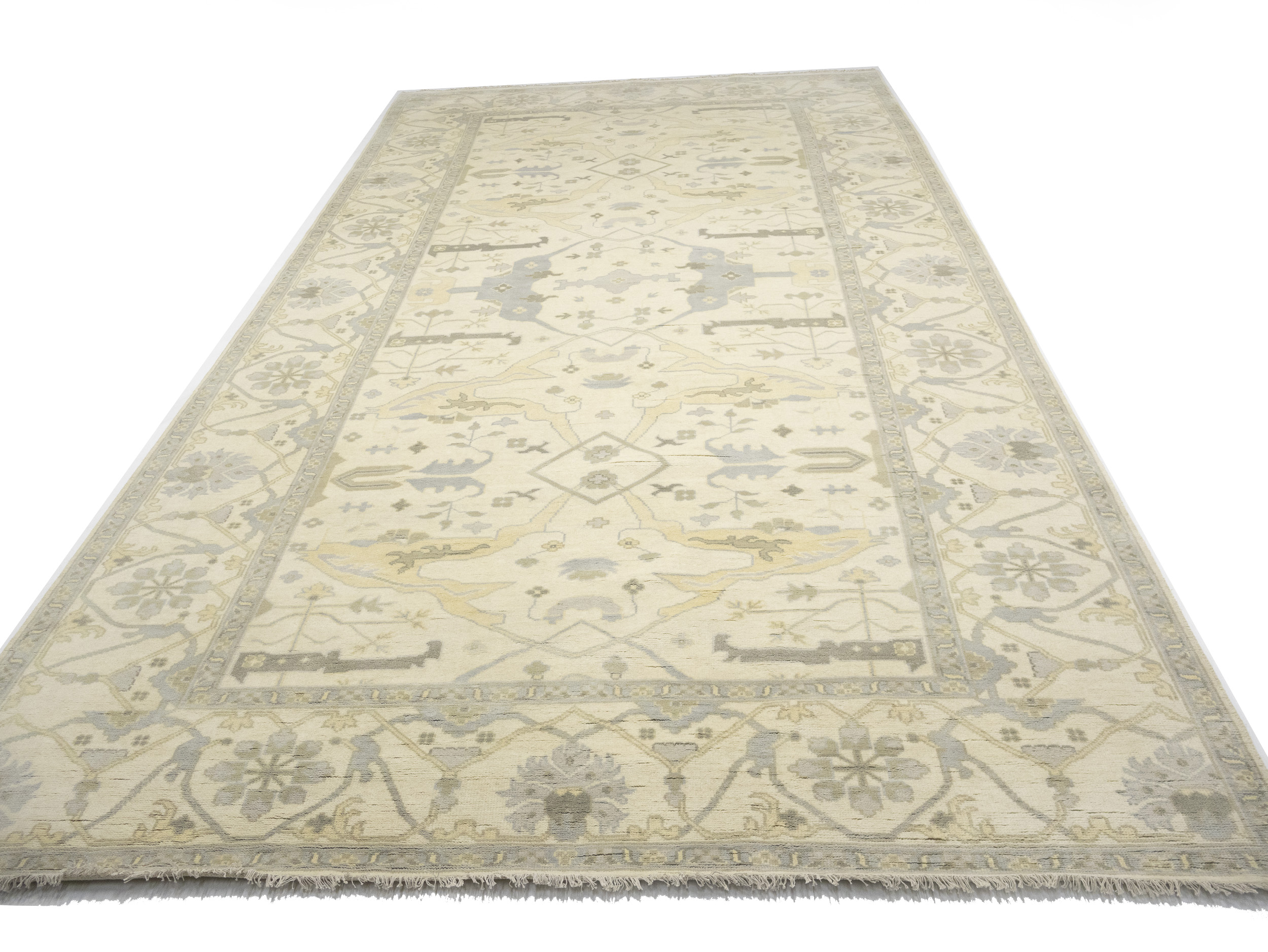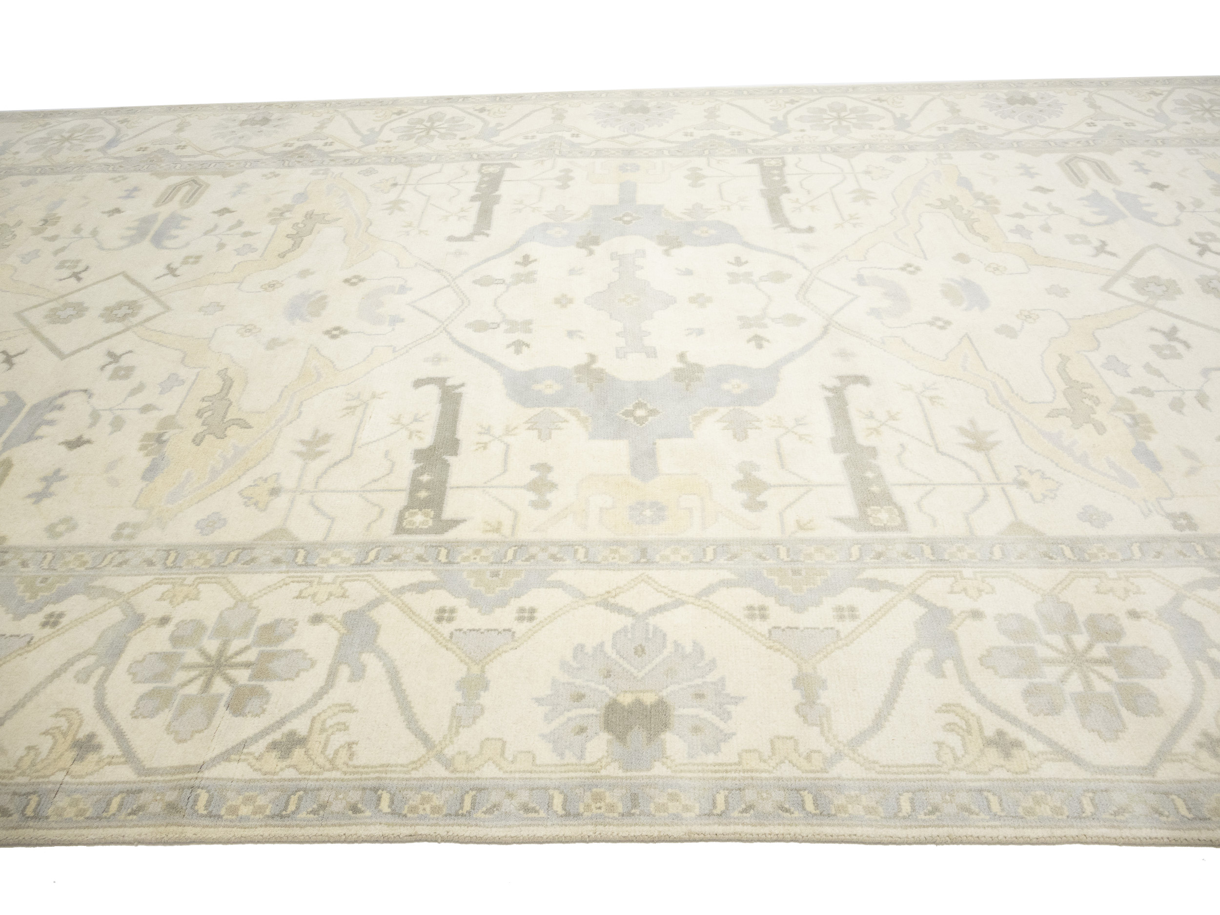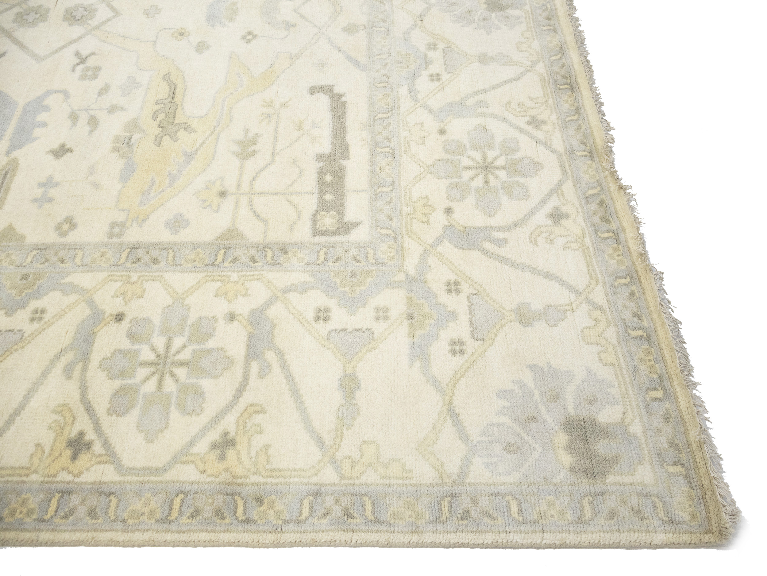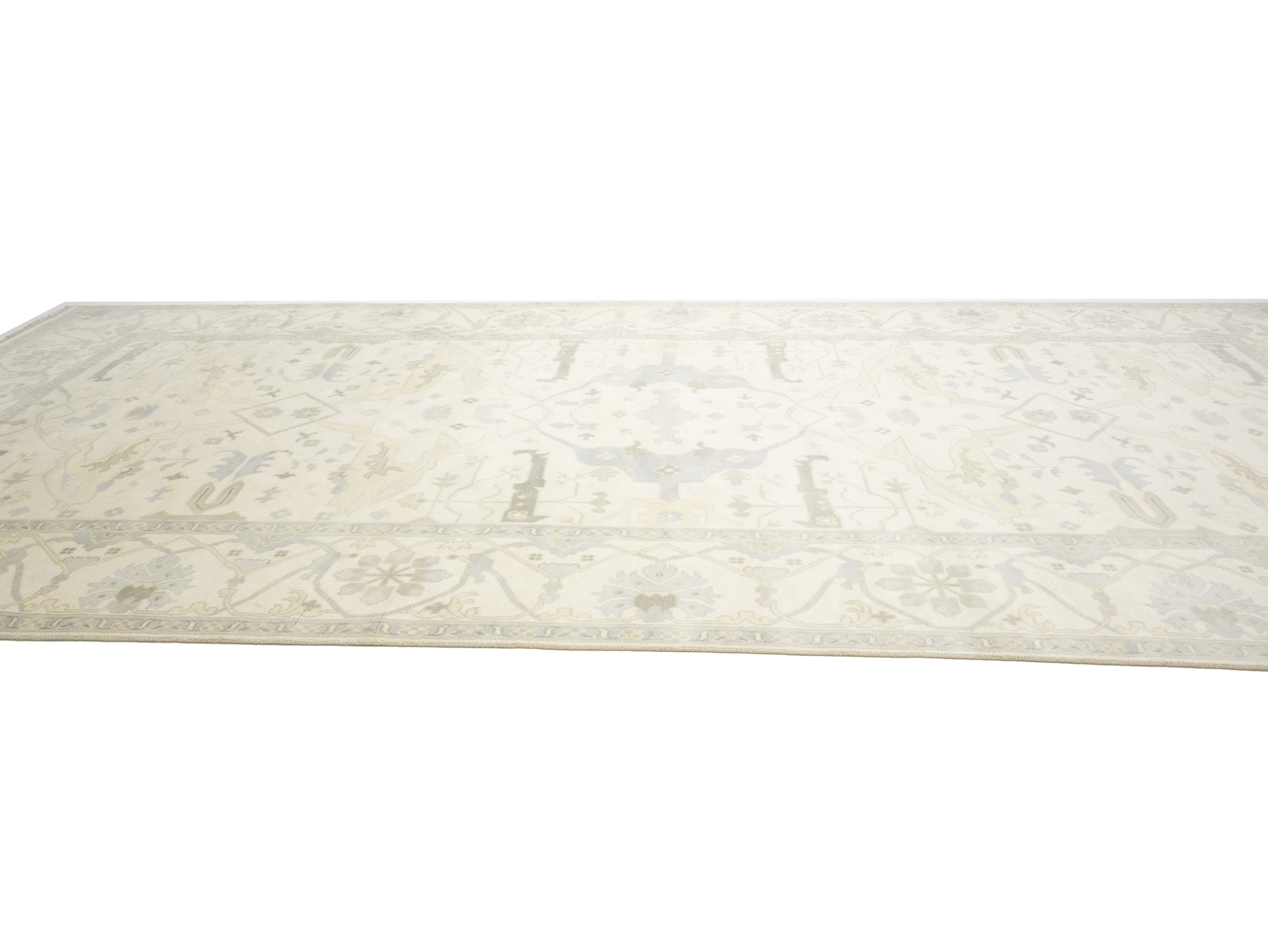 Cream Floral 10X19 Oushak Oriental Rug
