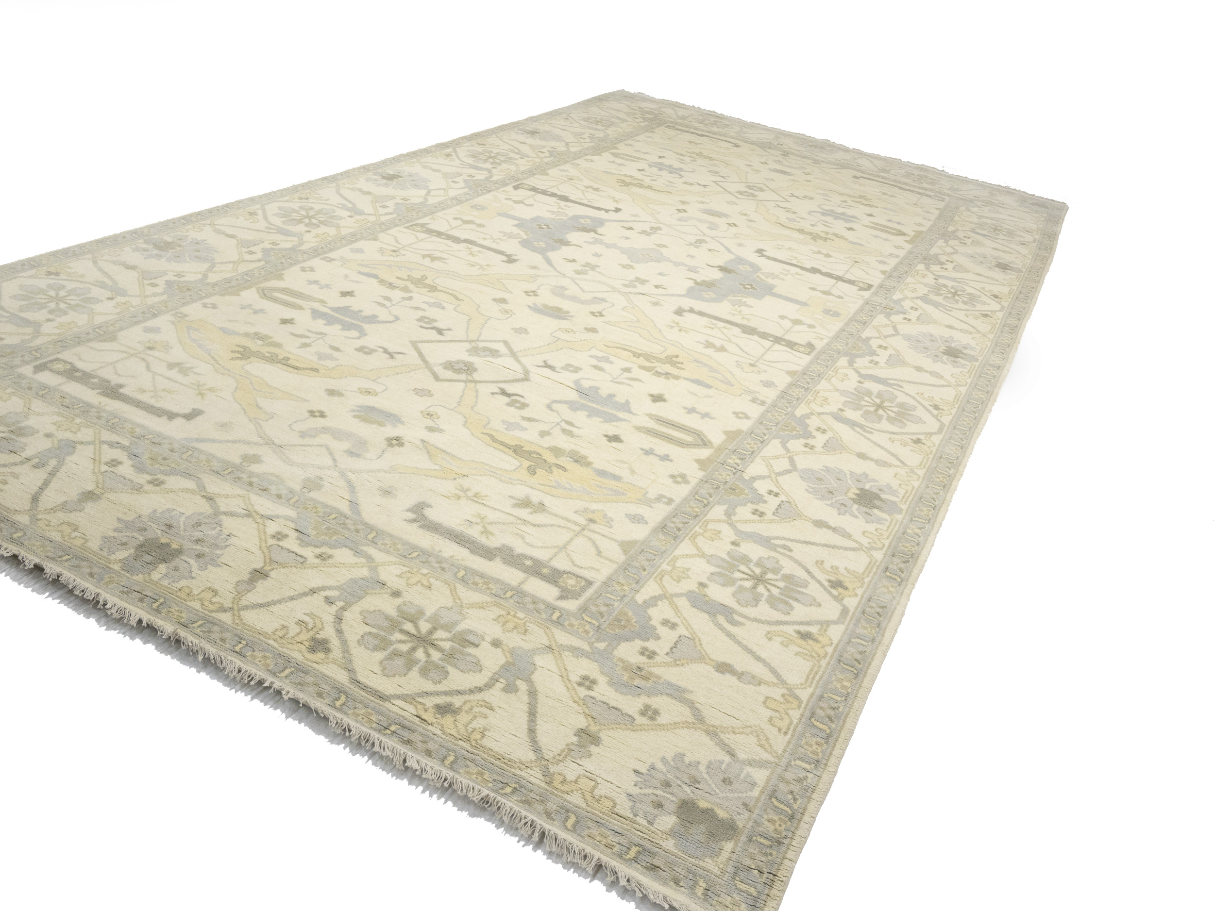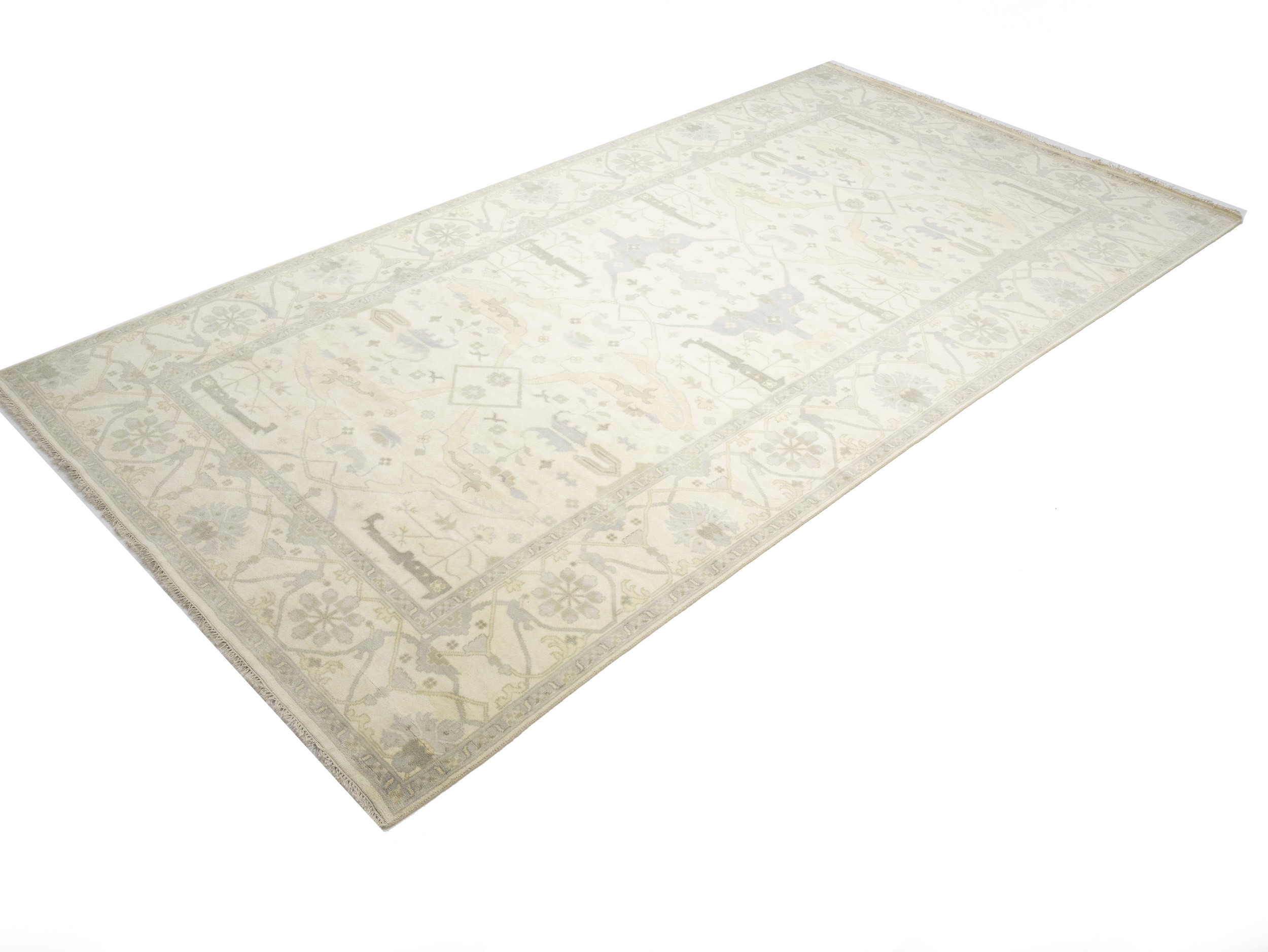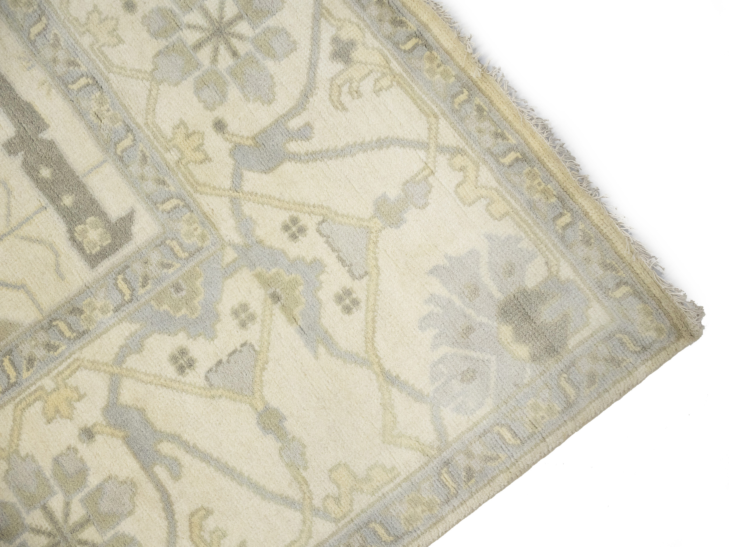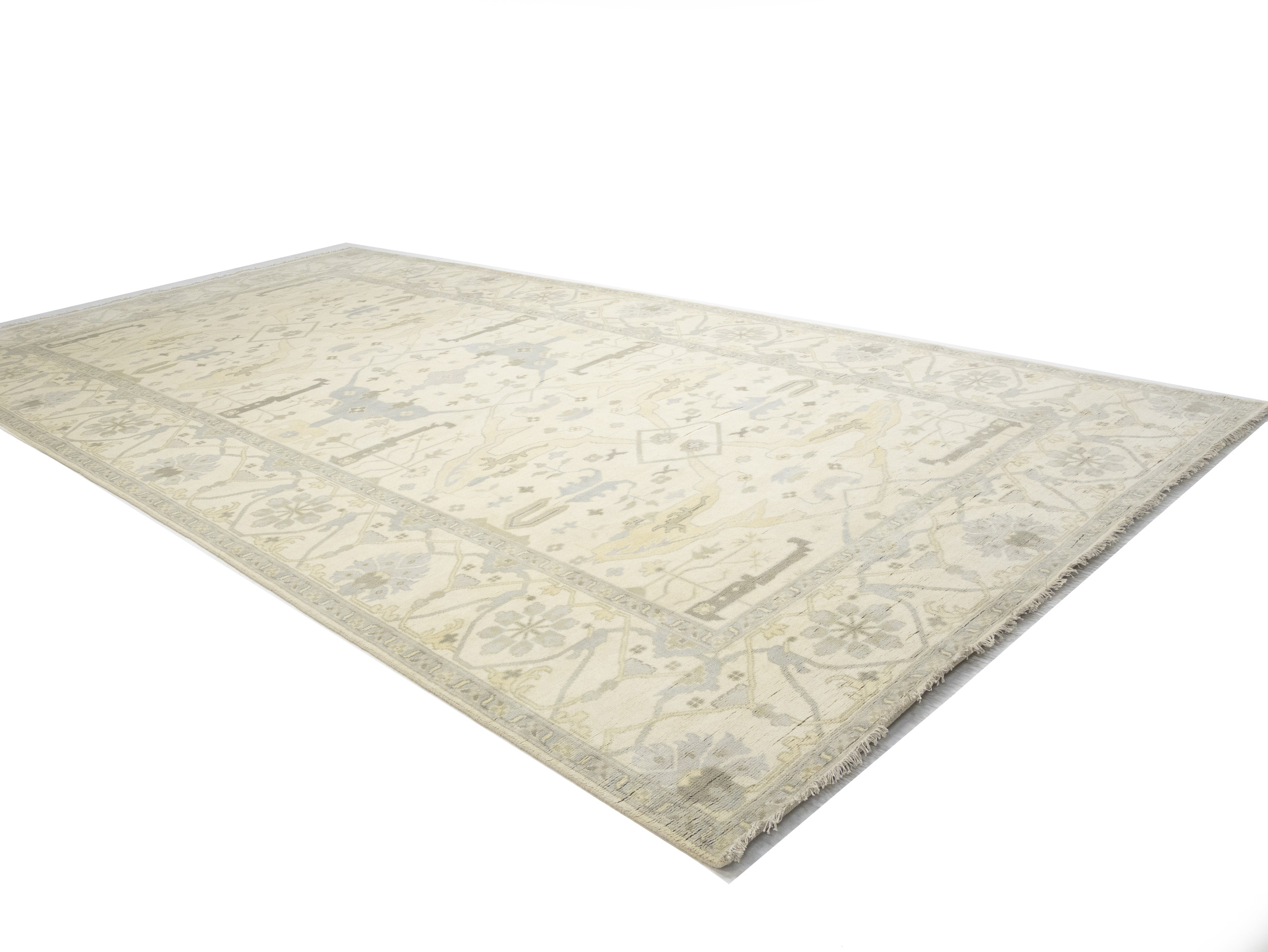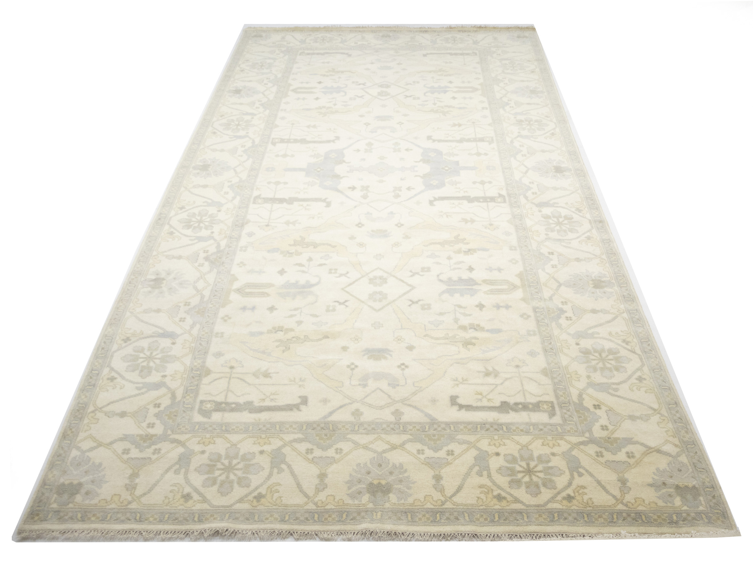 Cream Floral 10X19 Oushak Oriental Rug