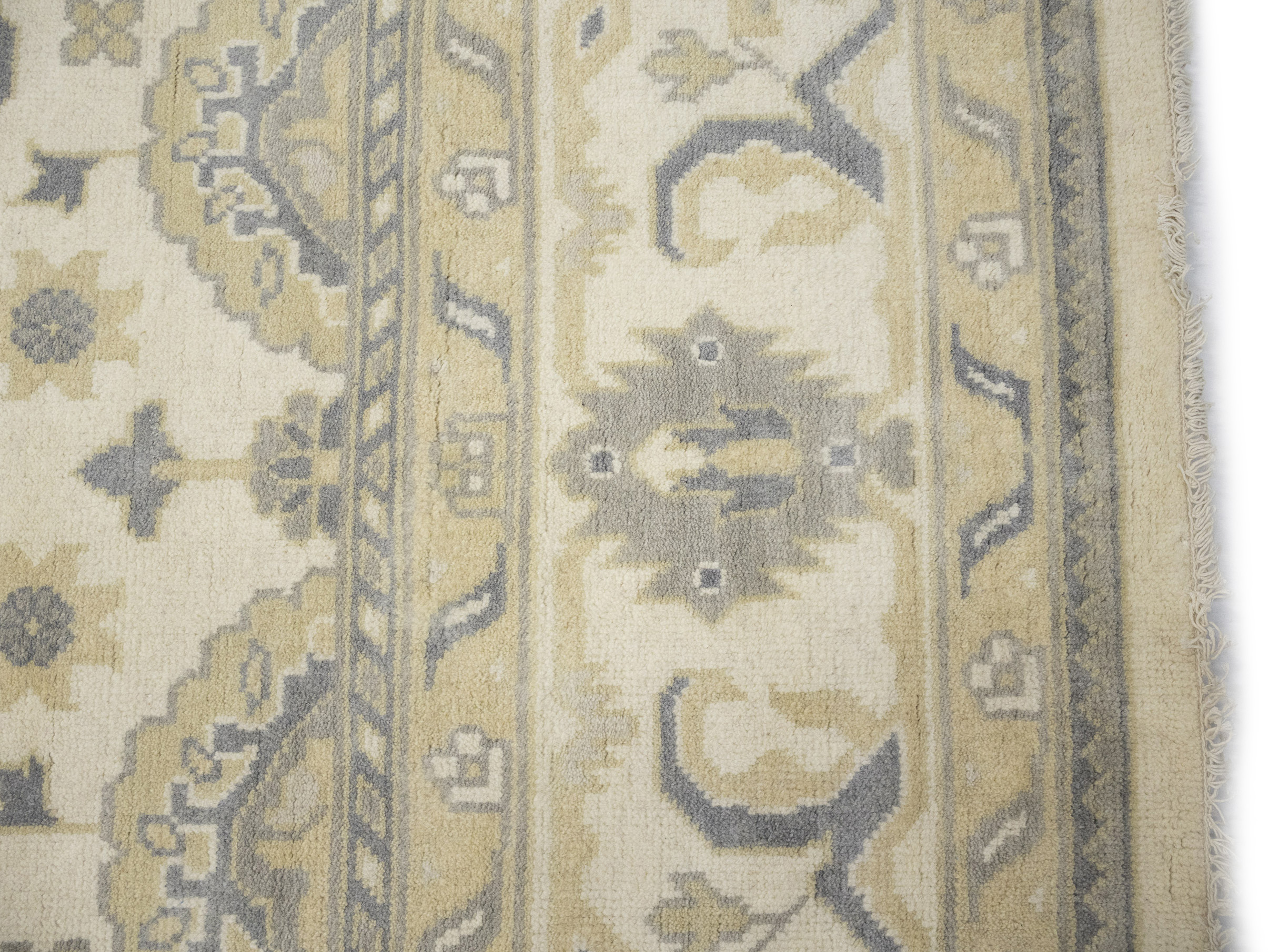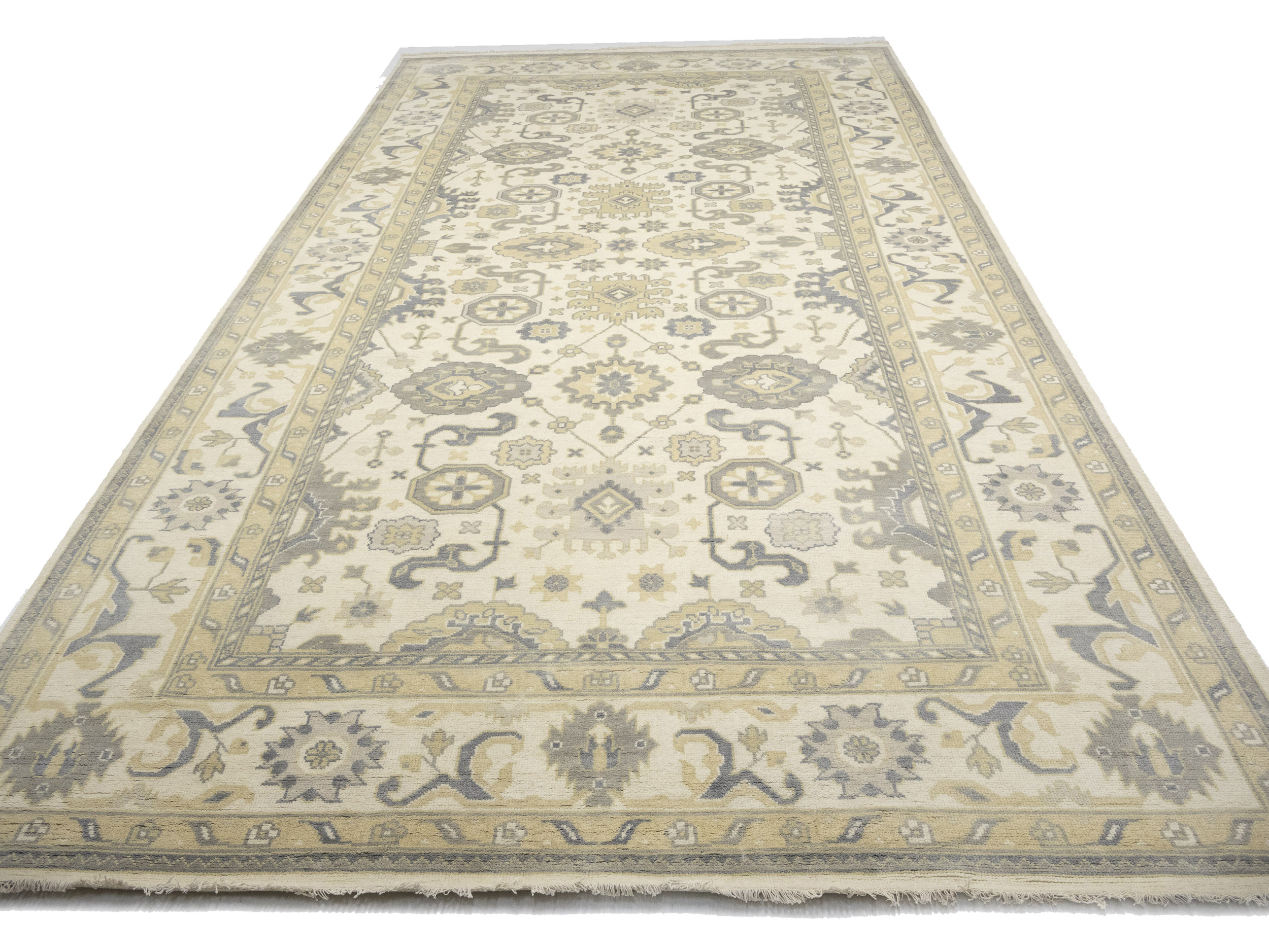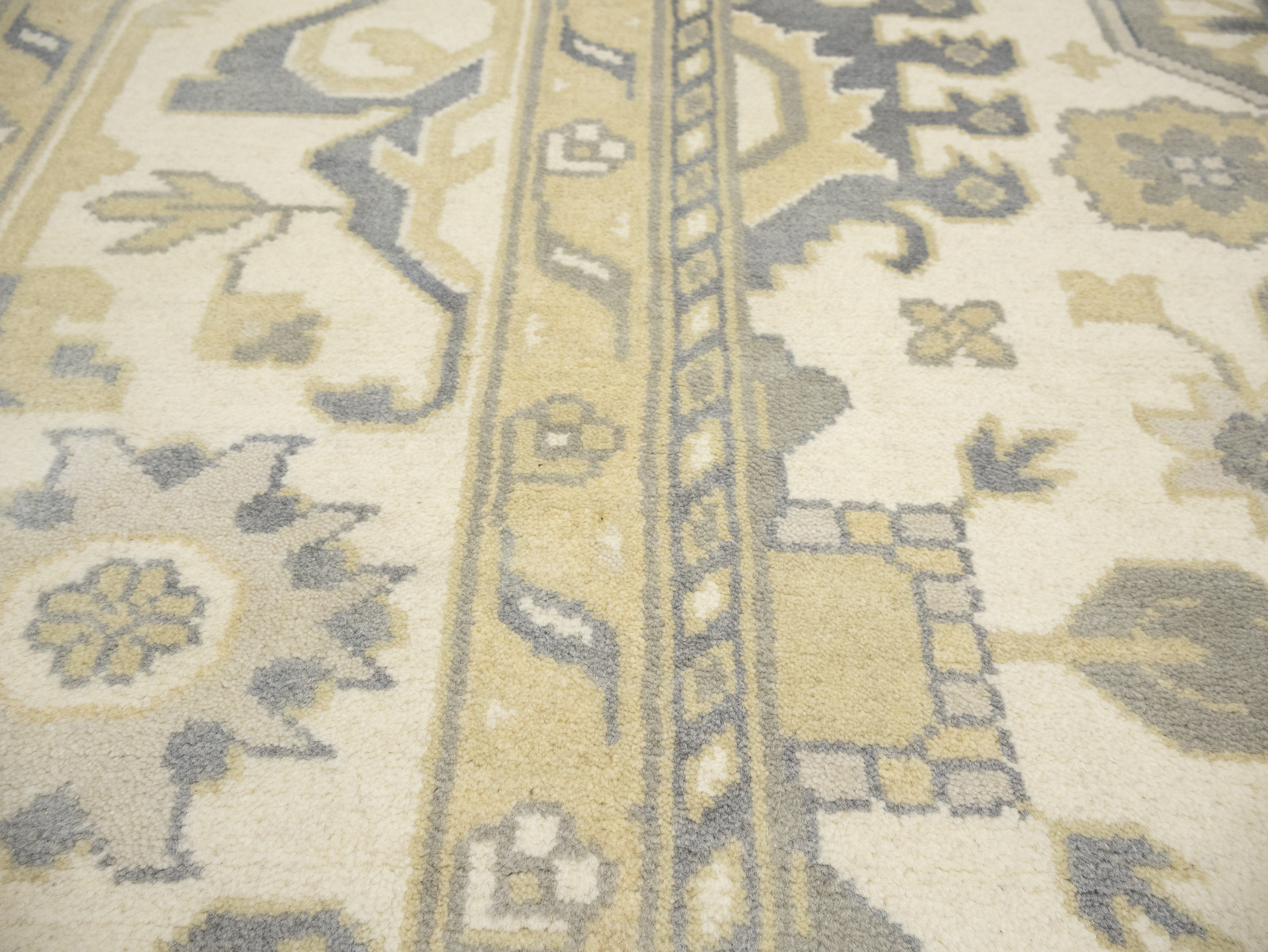 This original 10X20 cream new Oriental rug was finely knotted by the hands of weavers influenced by a variety of amazing artistic designs, to recreate the aged look of the exceptional piece with a richness of color and embellished background field. What set this vintage style Oriental area rug from the others are the material and dye used (wool pile and cotton foundation), knot count, antique designs, fantastic grades, and its regional historical connection: it has deep roots, from the story of the people who produced it to the meaning of the symbols and colors displayed across its canvas that have been praised for centuries. This Indian home décor carpet will be completely cozy and inviting that never will go out of style! Also, this Oriental rug would be among your most valuable treasures, it is a great investment that increase in value over time, and it will last a lifetime because was woven with high-quality, all-natural wool. Eco-friendly, opulent yet affordable; this rug will give you an extra pop of character to help define your home environment with luxury and warmth that will capture the eyes and attention of your audience (homeowners, designers, decorators, family and friends).