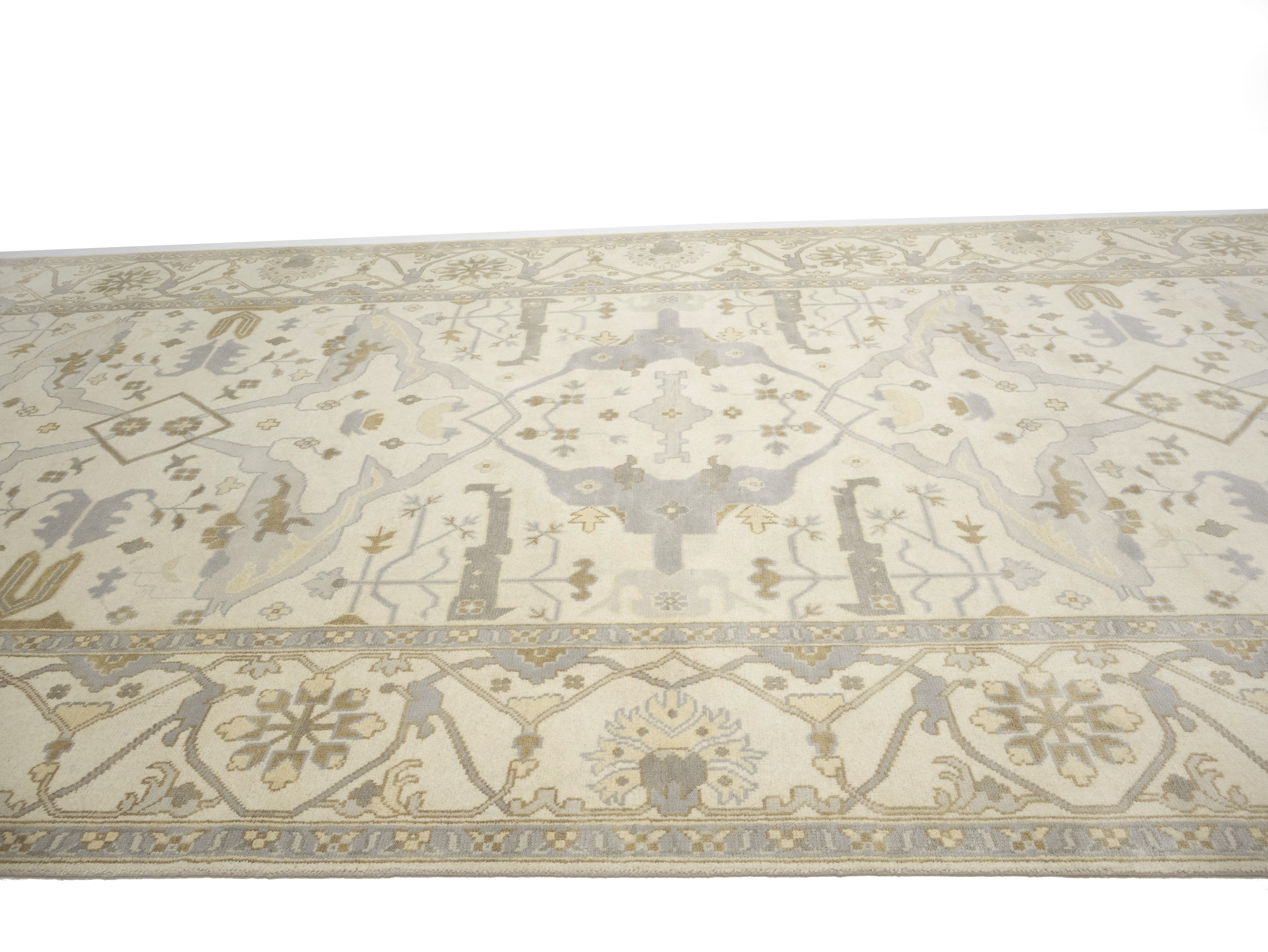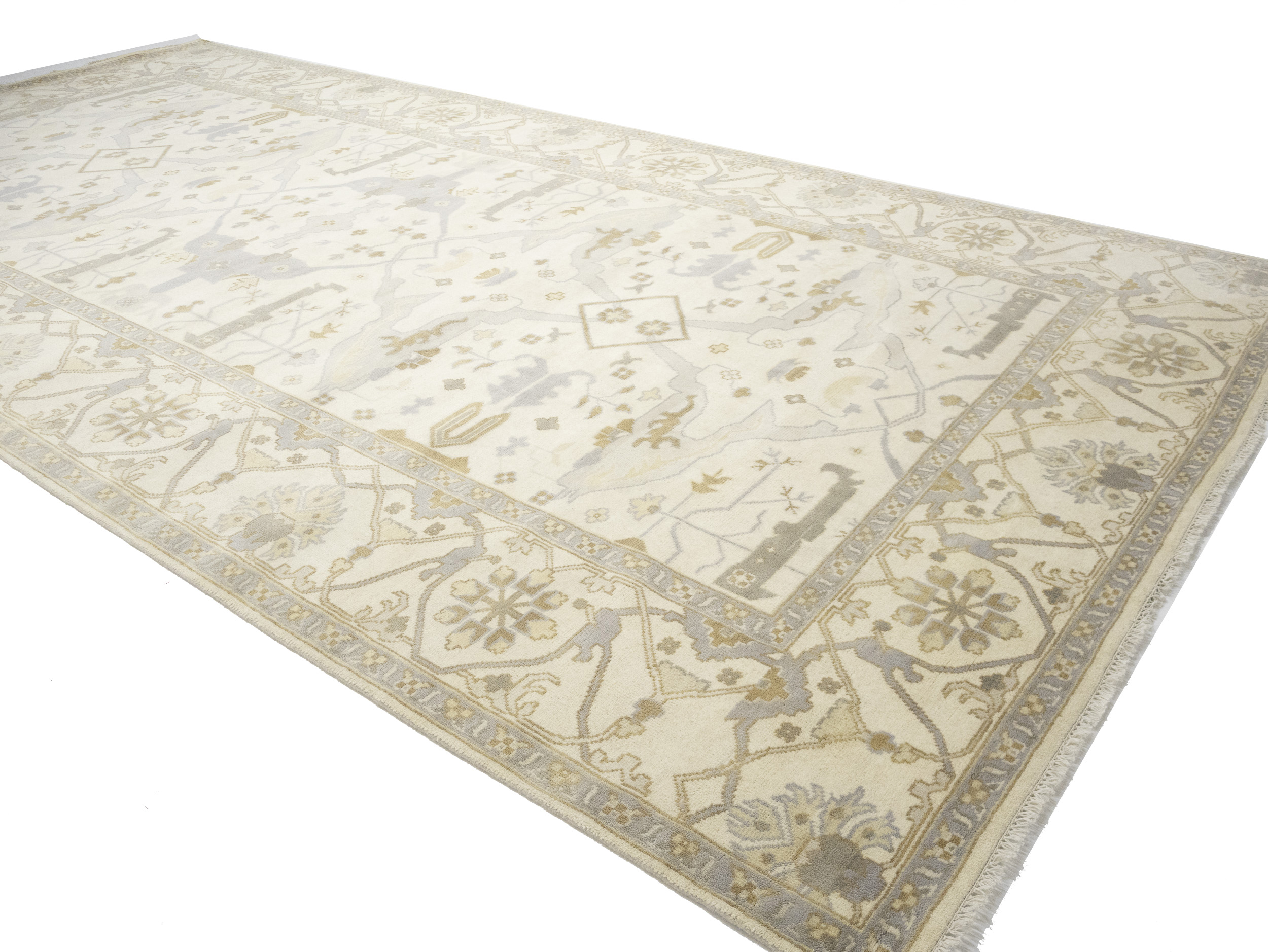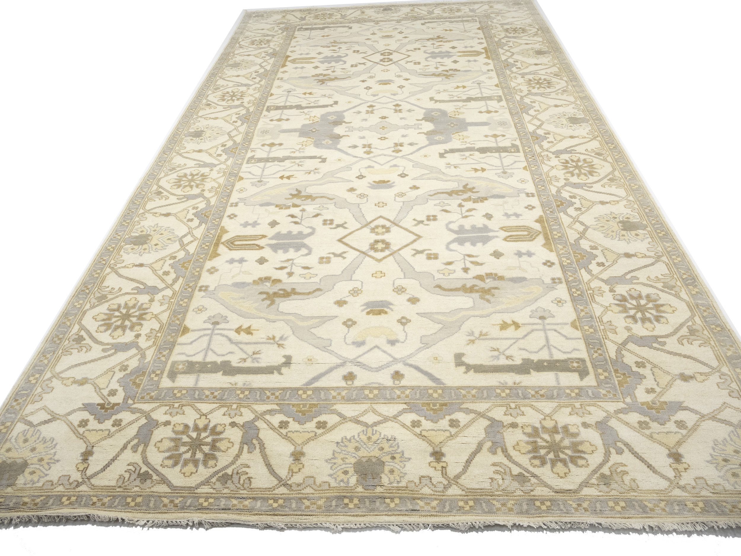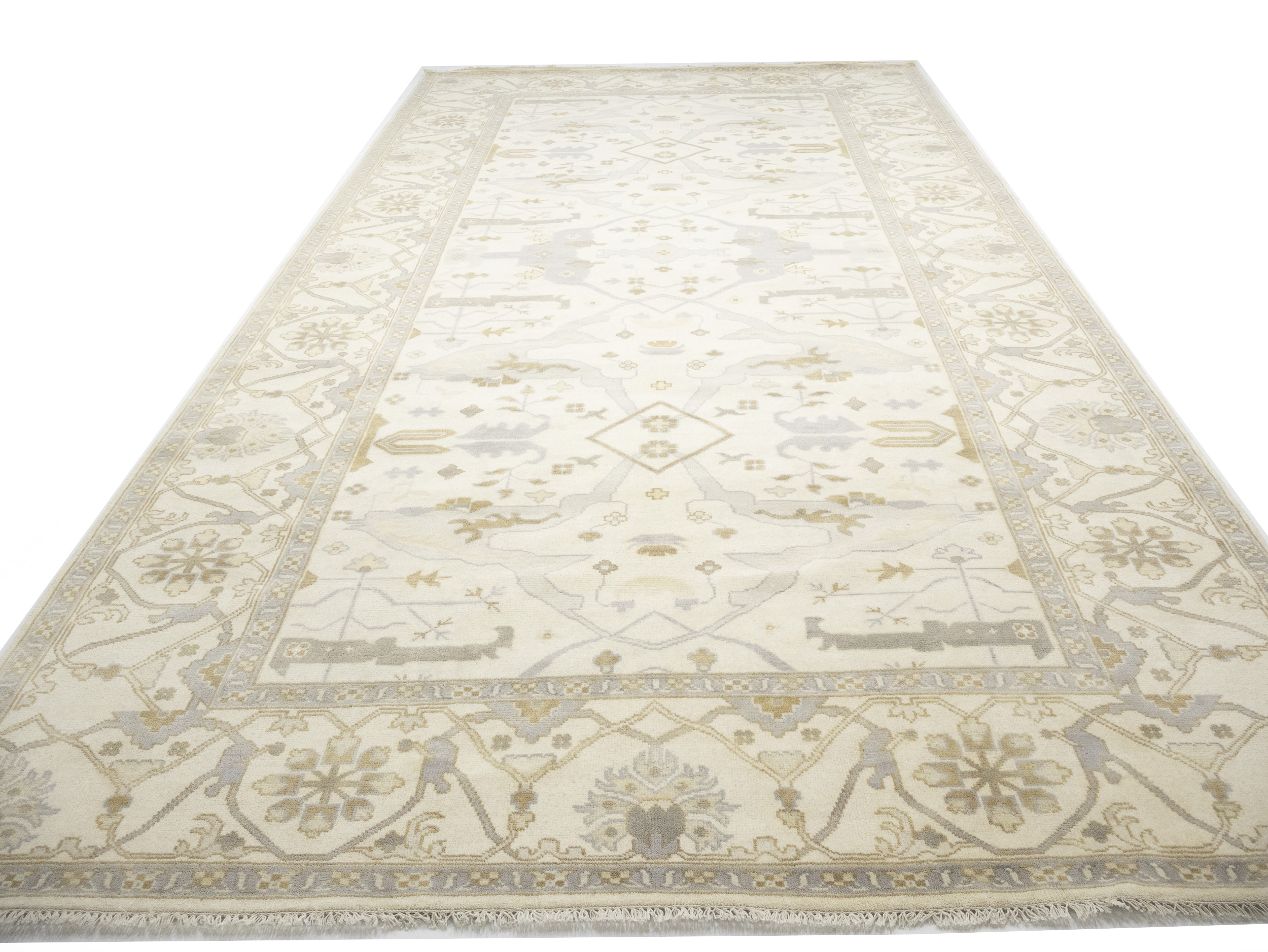 This original 10X20 cream new Oriental rug was finely knotted by the hands of weavers influenced by a variety of amazing artistic designs, to recreate the aged look of the exceptional piece with a richness of color and embellished background field. What set this vintage style Oriental area rug from the others are the material and dye used (wool pile and cotton foundation), knot count, antique designs, fantastic grades, and its regional historical connection: it has deep roots, from the story of the people who produced it to the meaning of the symbols and colors displayed across its canvas that have been praised for centuries. This Indian home décor carpet will be completely cozy and inviting that never will go out of style! Also, this Oriental rug would be among your most valuable treasures, it is a great investment that increase in value over time, and it will last a lifetime because was woven with high-quality, all-natural wool. Eco-friendly, opulent yet affordable; this rug will give you an extra pop of character to help define your home environment with luxury and warmth that will capture the eyes and attention of your audience (homeowners, designers, decorators, family and friends).