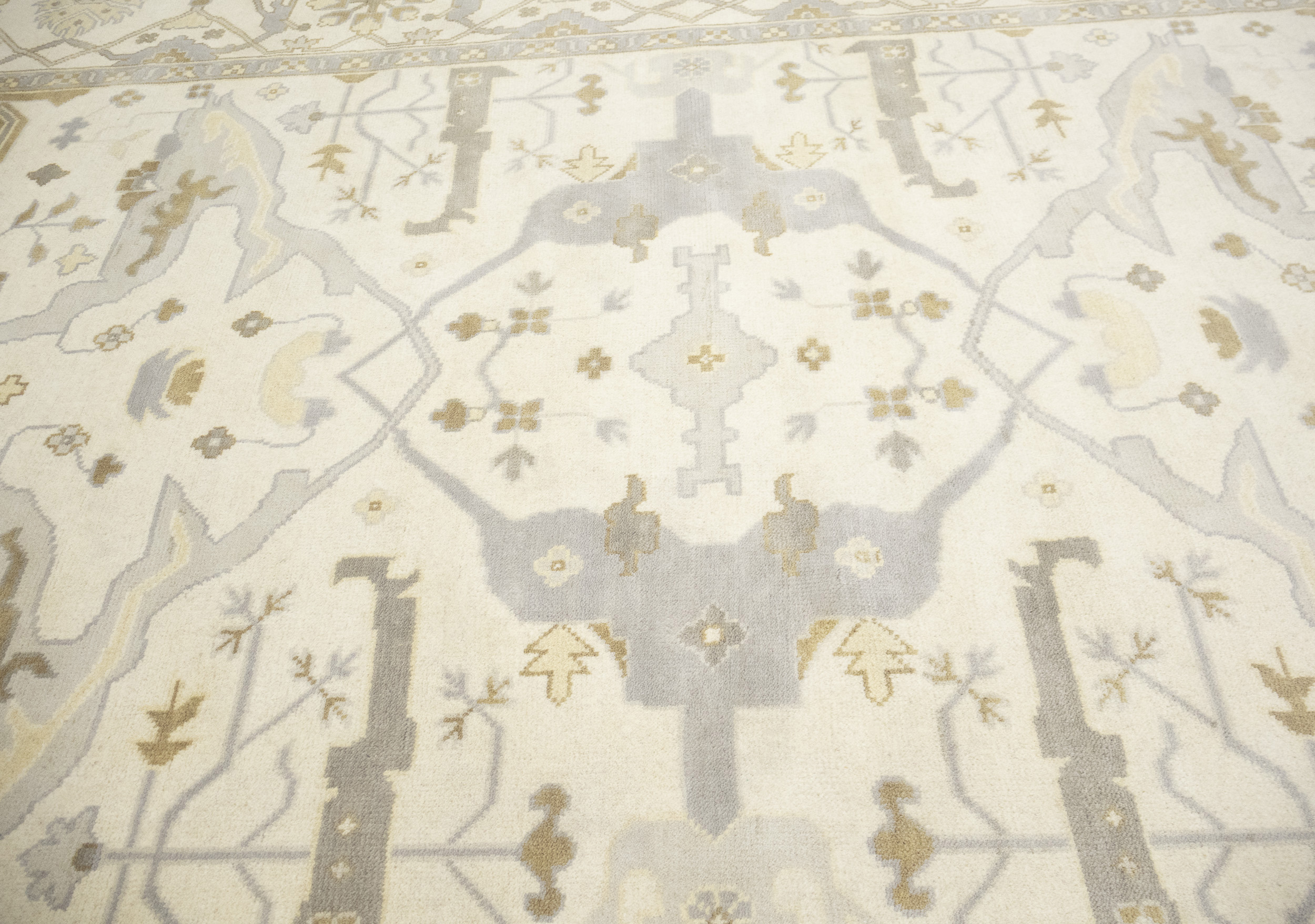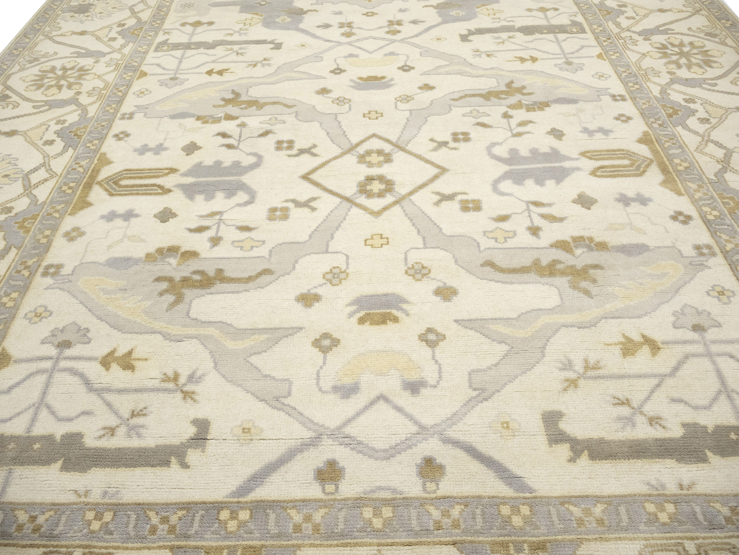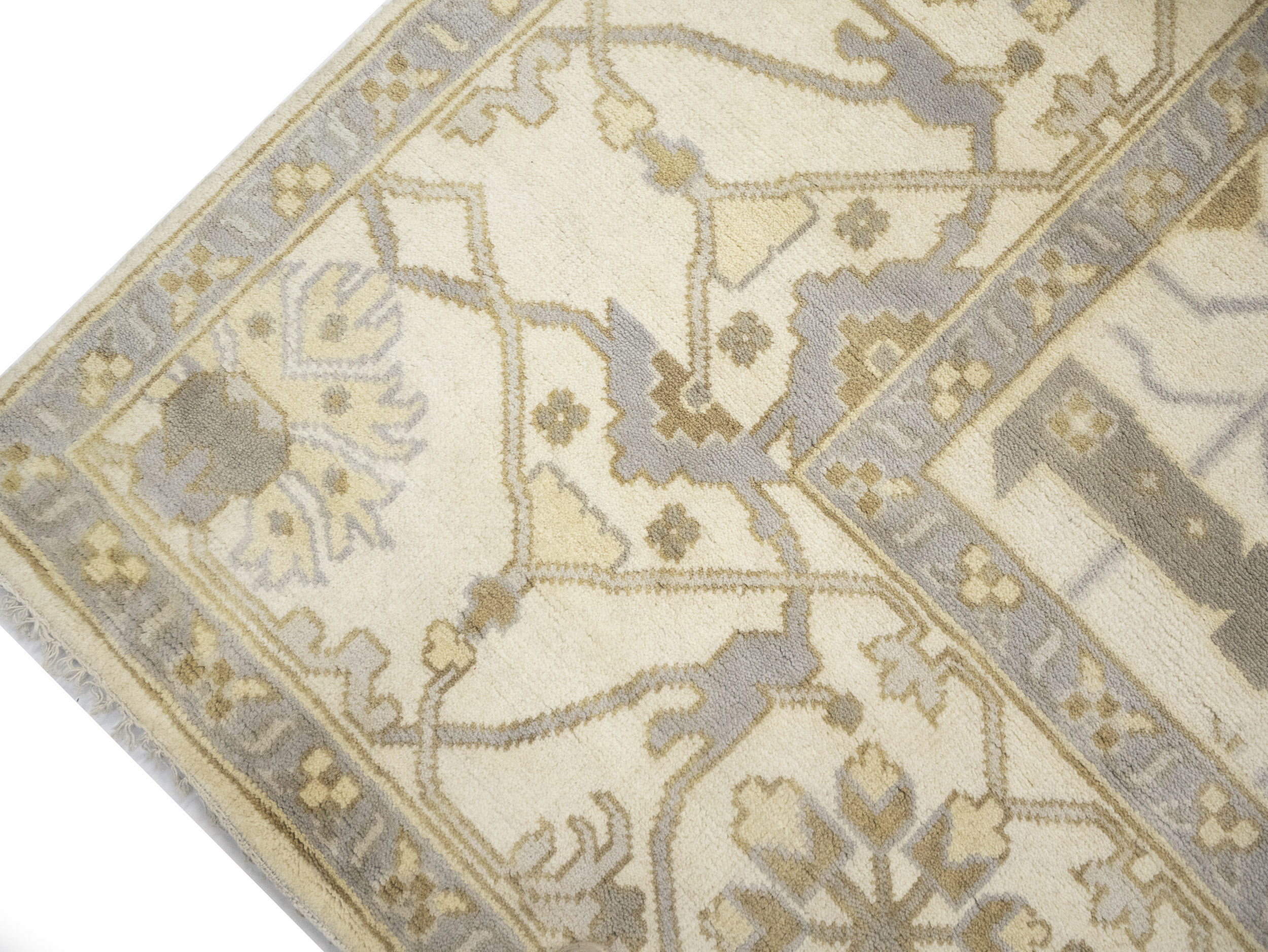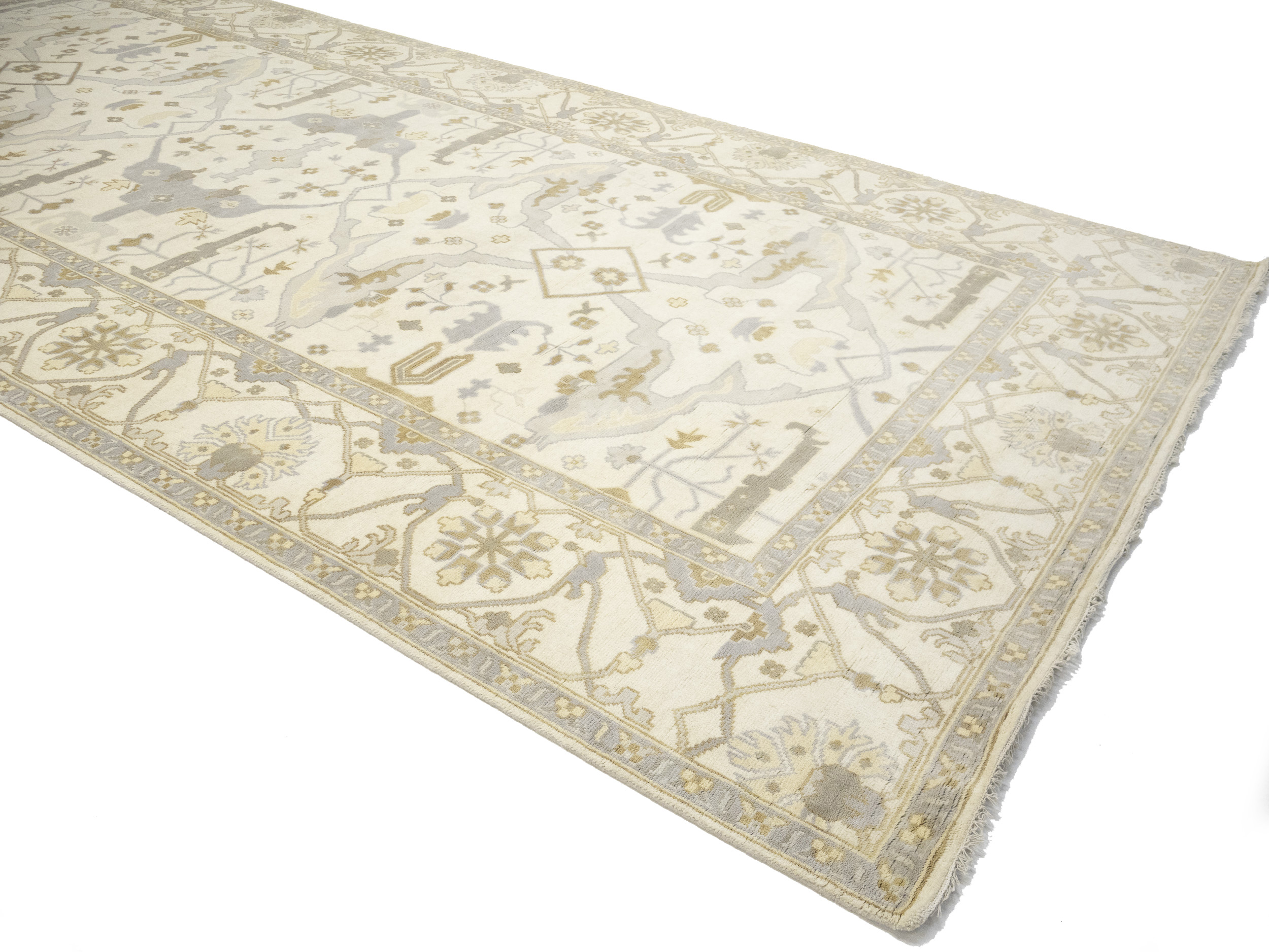 This original 10X20 cream new Oriental rug was finely knotted by the hands of weavers influenced by a variety of amazing artistic designs, to recreate the aged look of the exceptional piece with a richness of color and embellished background field. What set this vintage style Oriental area rug from the others are the material and dye used (wool pile and cotton foundation), knot count, antique designs, fantastic grades, and its regional historical connection: it has deep roots, from the story of the people who produced it to the meaning of the symbols and colors displayed across its canvas that have been praised for centuries. This Indian home décor carpet will be completely cozy and inviting that never will go out of style! Also, this Oriental rug would be among your most valuable treasures, it is a great investment that increase in value over time, and it will last a lifetime because was woven with high-quality, all-natural wool. Eco-friendly, opulent yet affordable; this rug will give you an extra pop of character to help define your home environment with luxury and warmth that will capture the eyes and attention of your audience (homeowners, designers, decorators, family and friends).