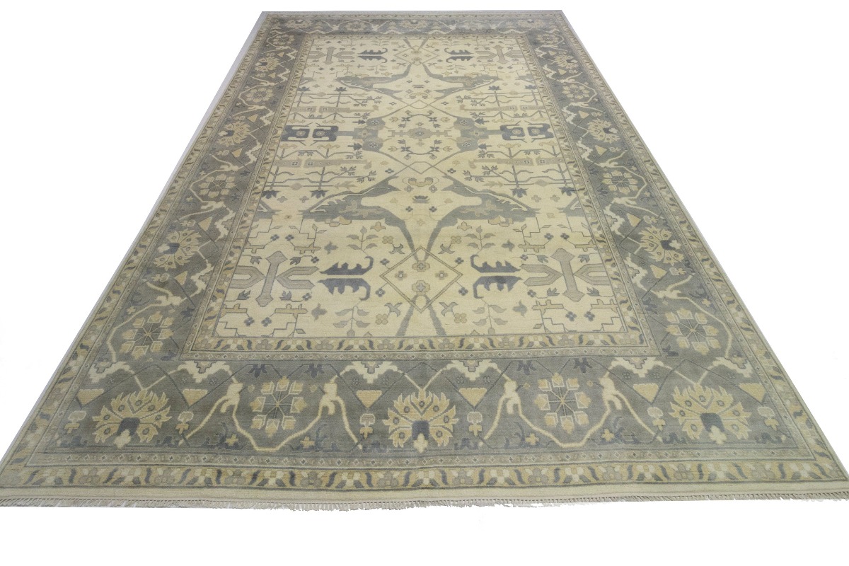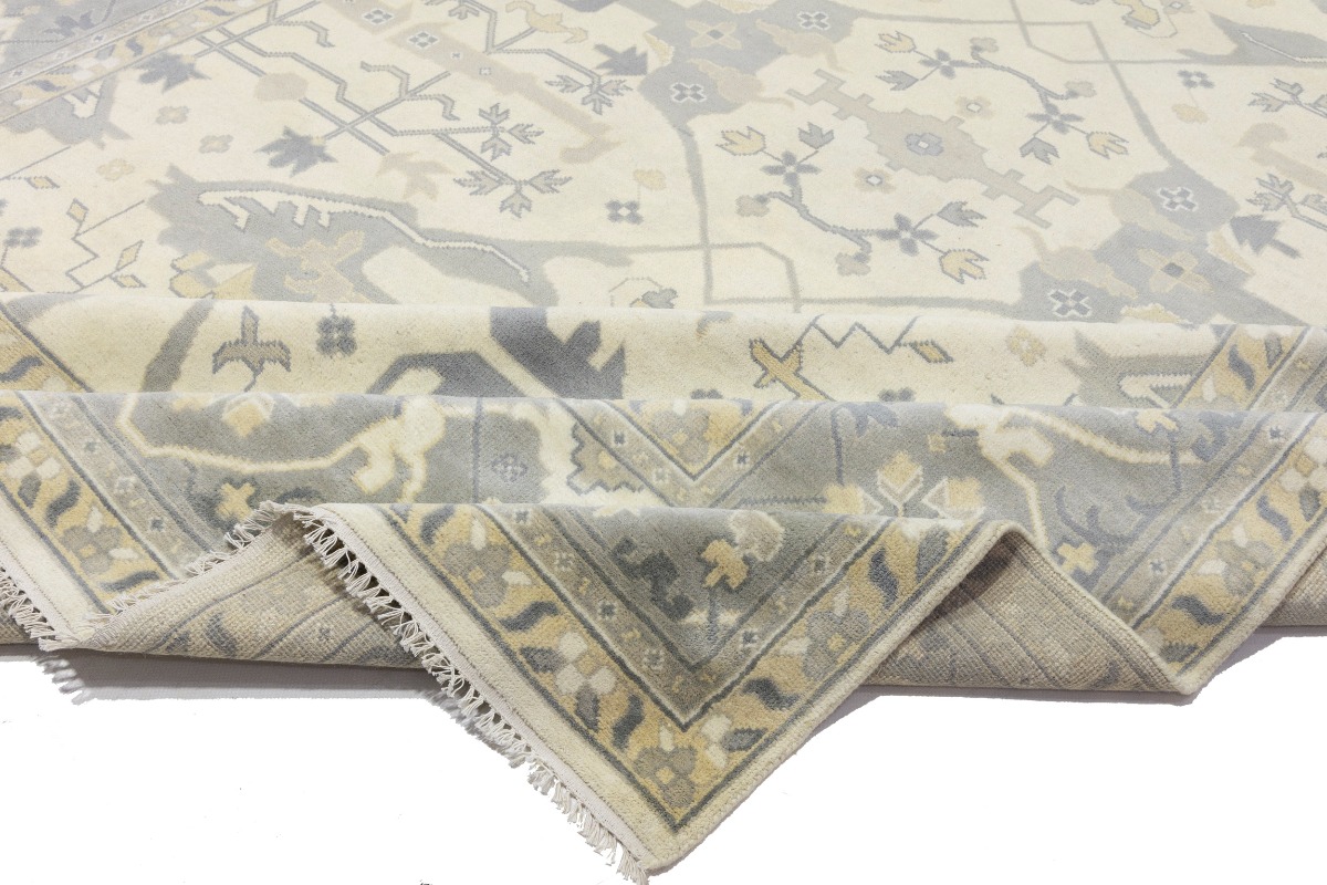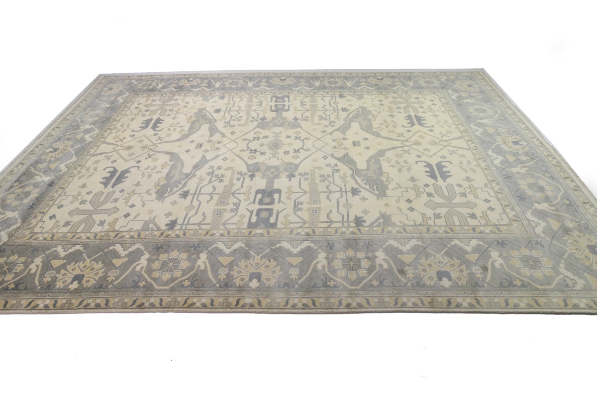 Cream Floral 12X18 Oushak Oriental Rug