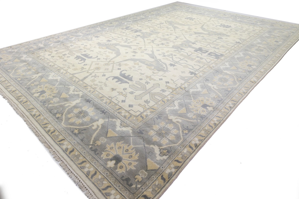 Handmade 12X18 cream oriental rug made with vegetable dyes (fine wool pile and cotton foundation), superior knot count, and appealing ancient designs. This Oriental rug never will go out of style and would be among your most valuable treasures.