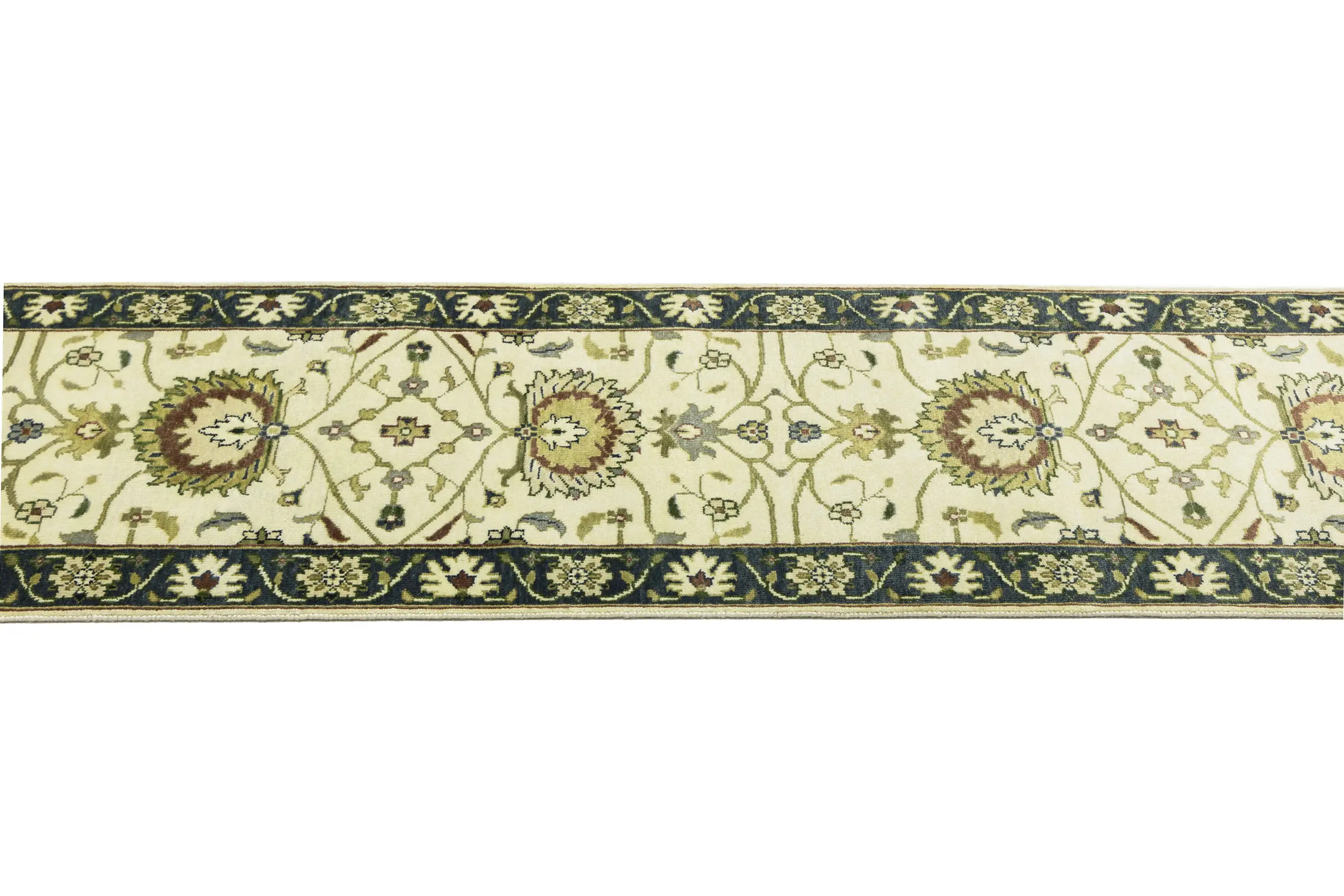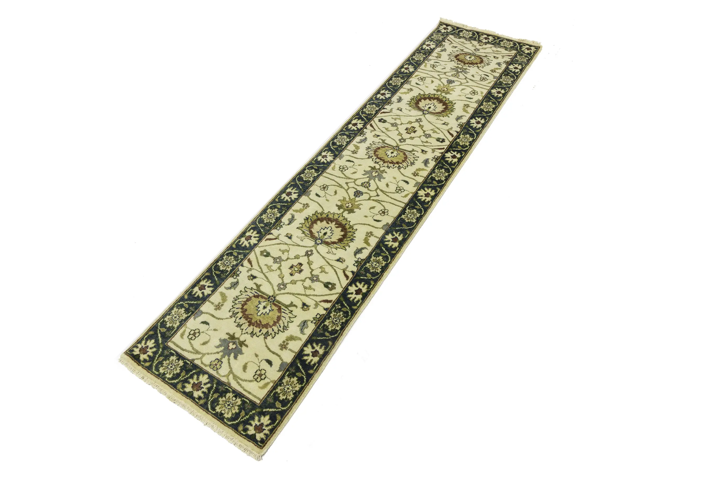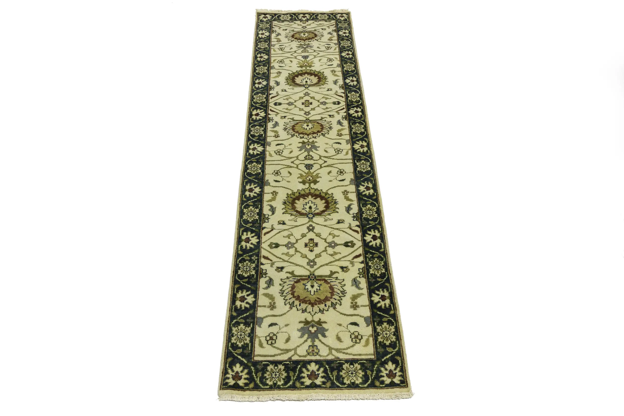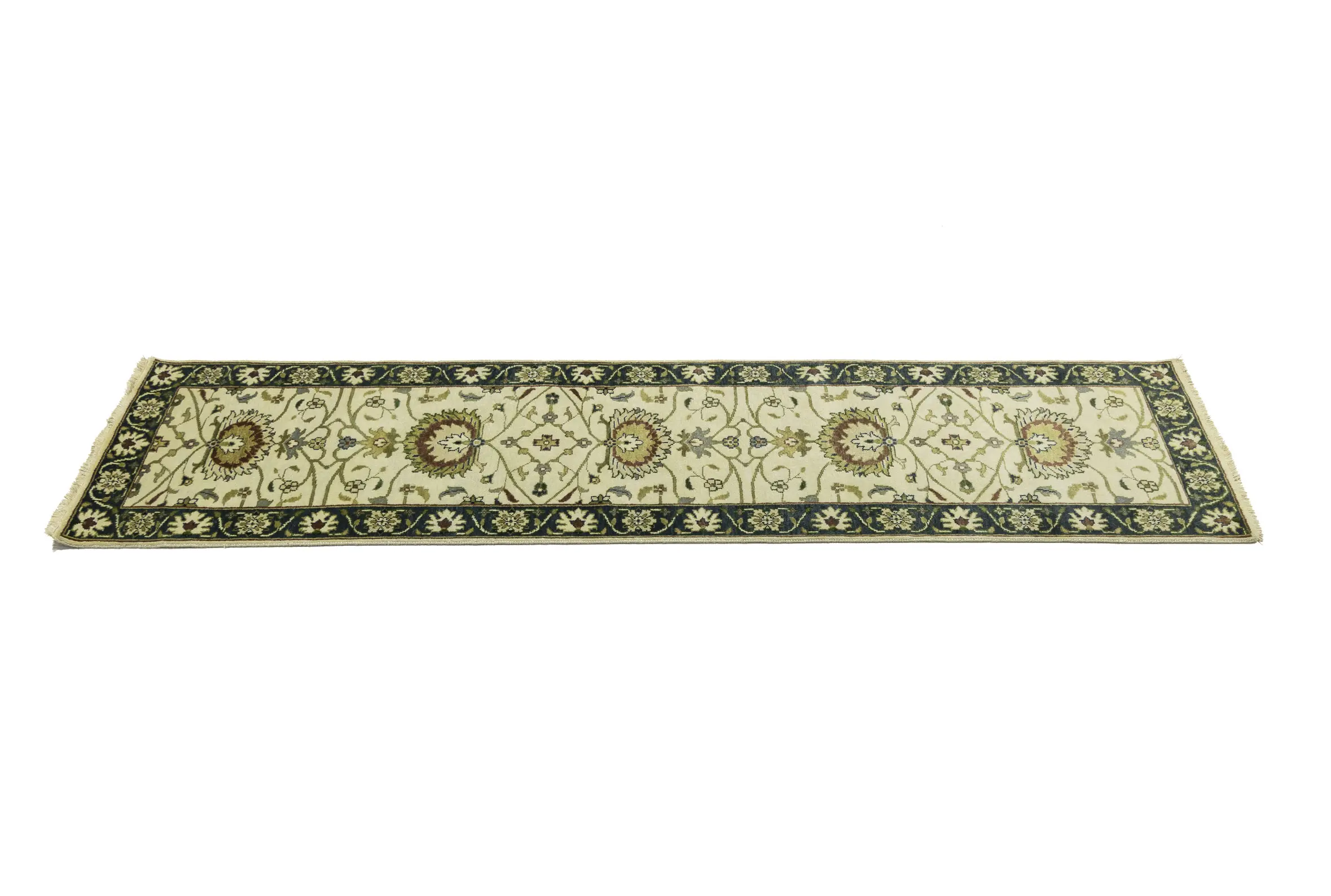 Handmade 2'5X10 cream Oriental runner made with vegetable dyes (fine wool pile and cotton foundation), superior knot count, and alluring ancient designs. This Oriental runner never will go out of style and would be among your most valuable treasures.