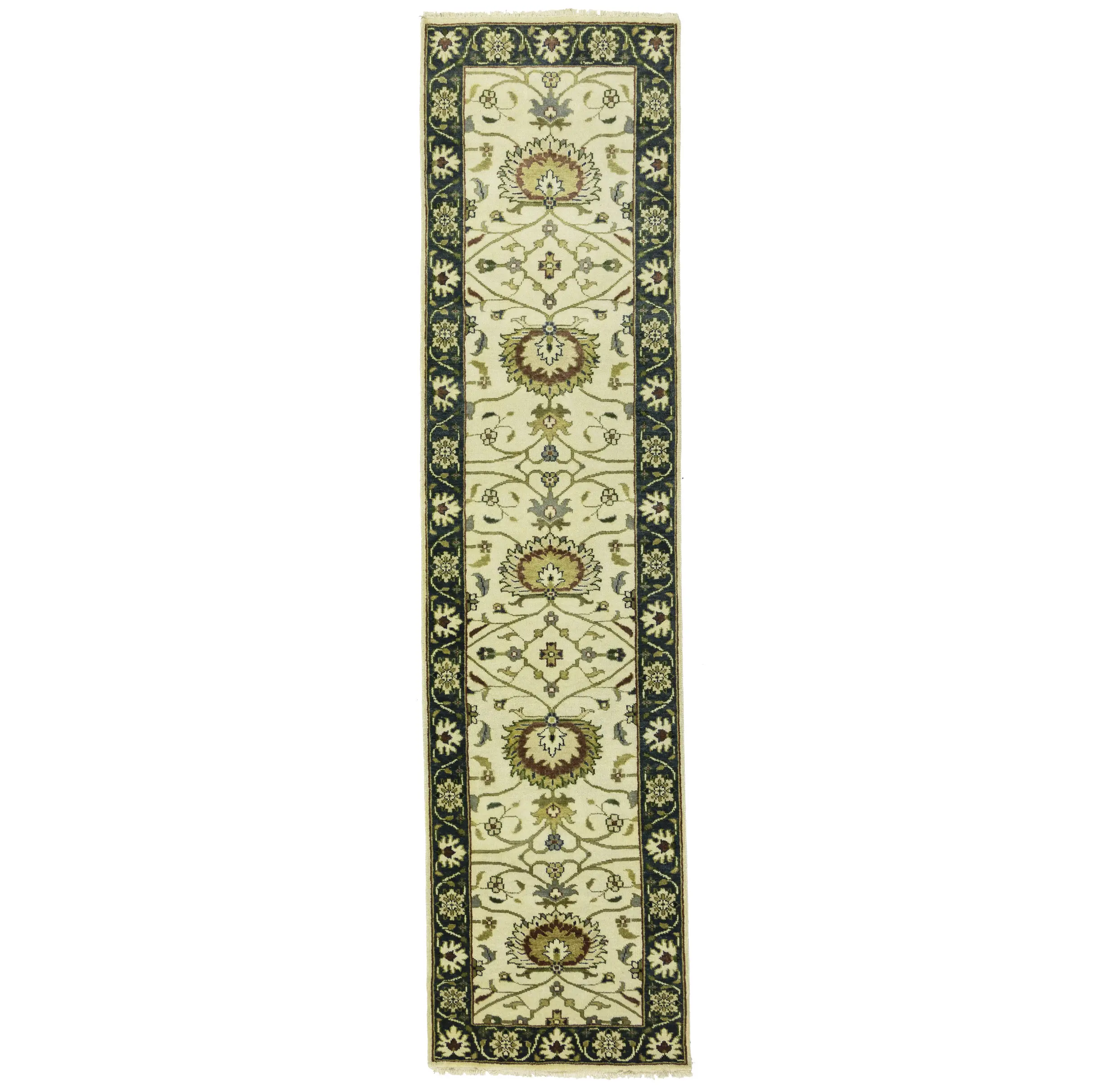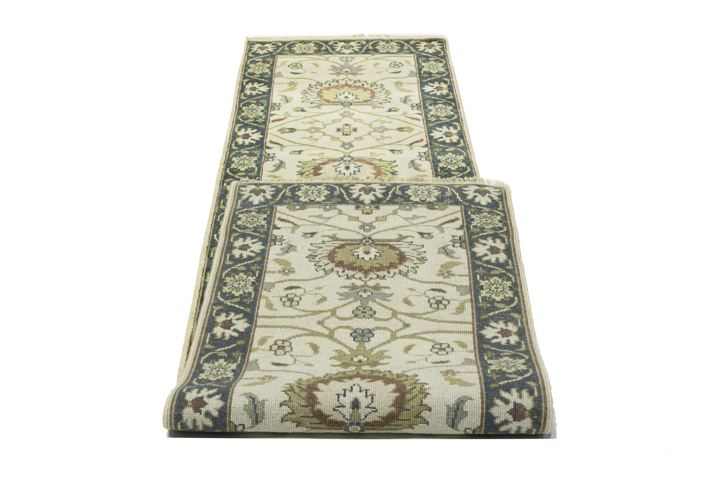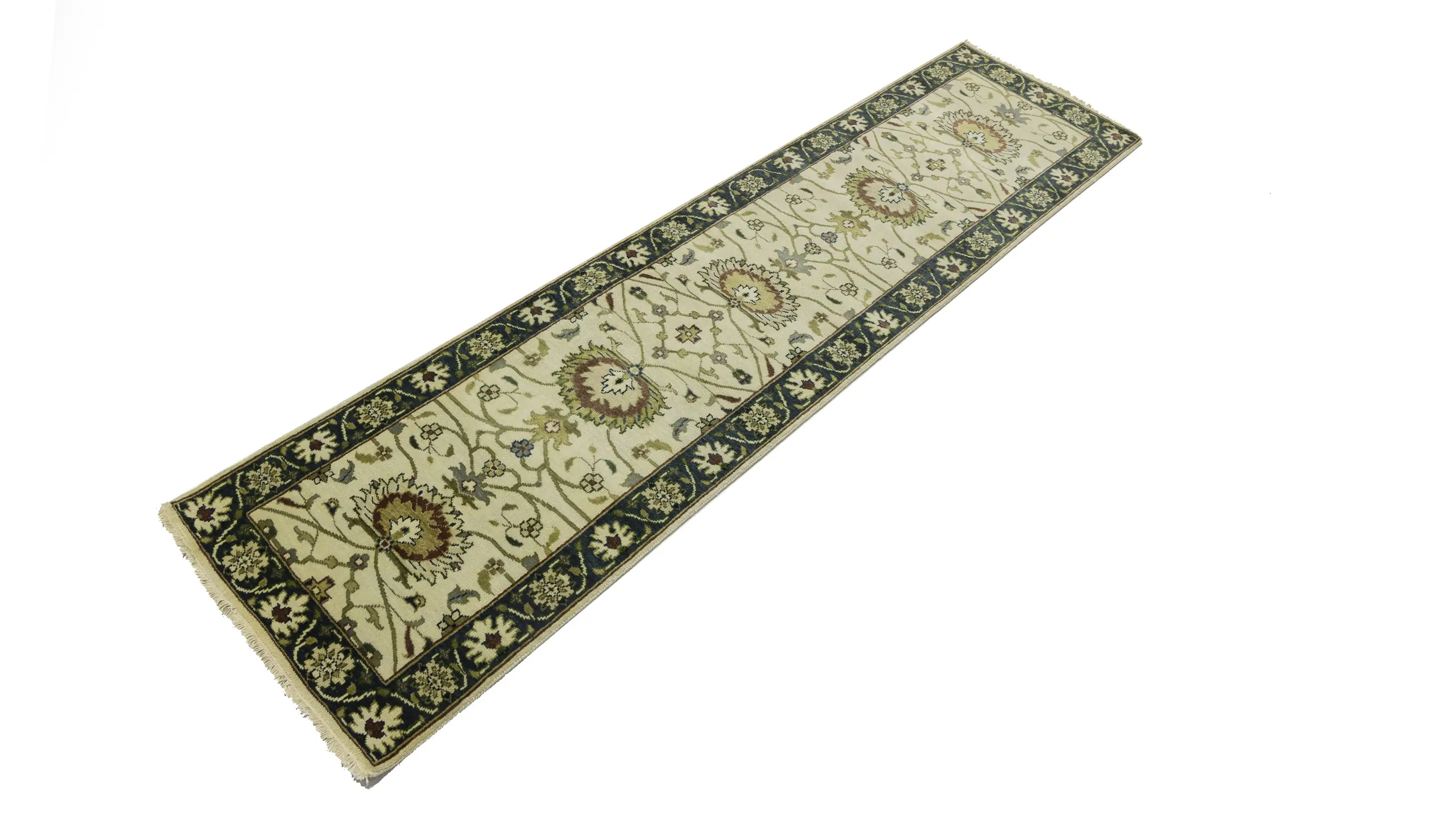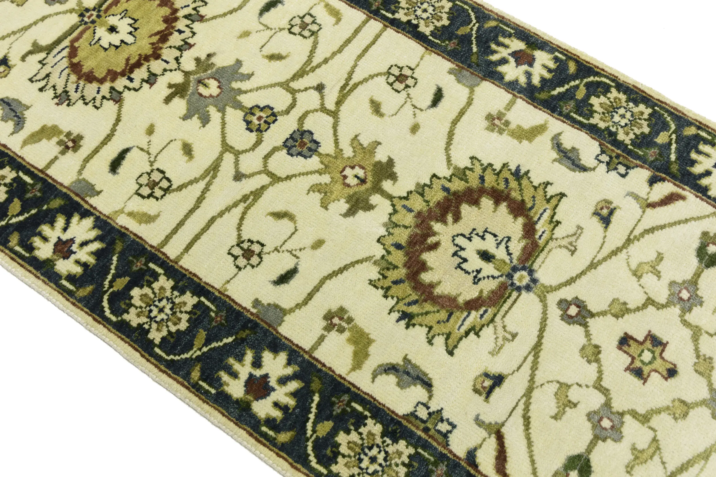 Handmade 2'5X10 cream Oriental runner made with vegetable dyes (fine wool pile and cotton foundation), superior knot count, and alluring ancient designs. This Oriental runner never will go out of style and would be among your most valuable treasures.