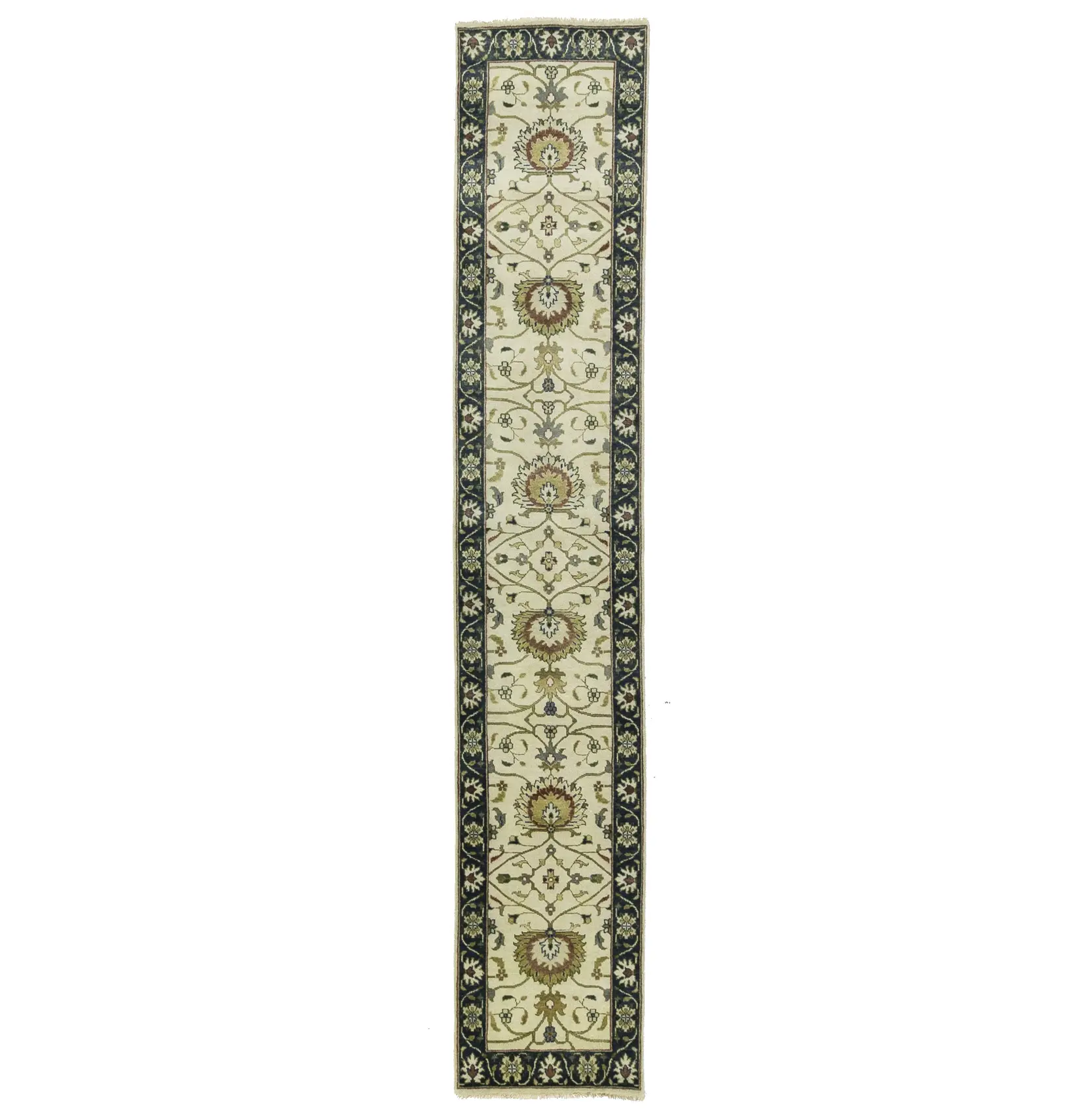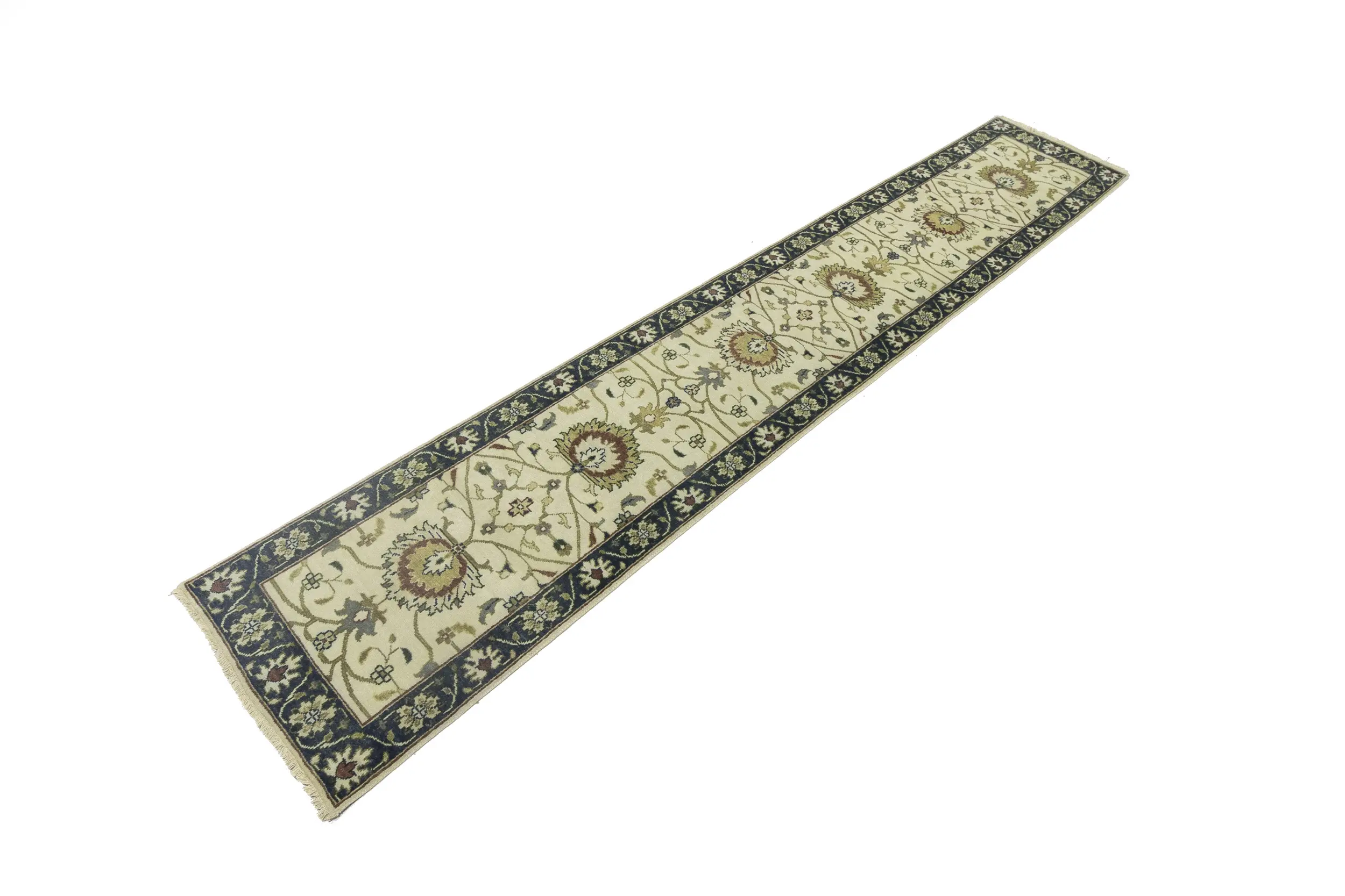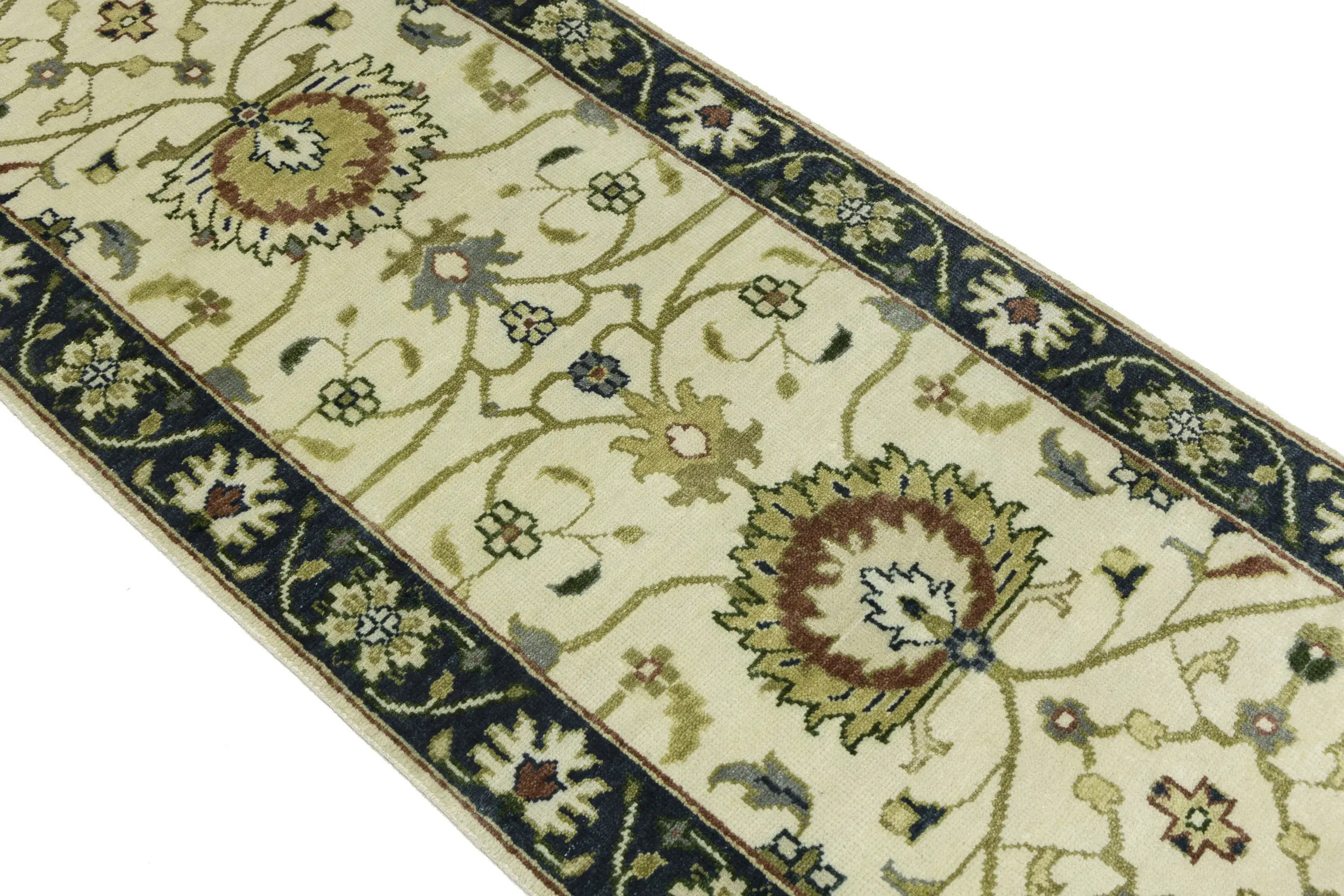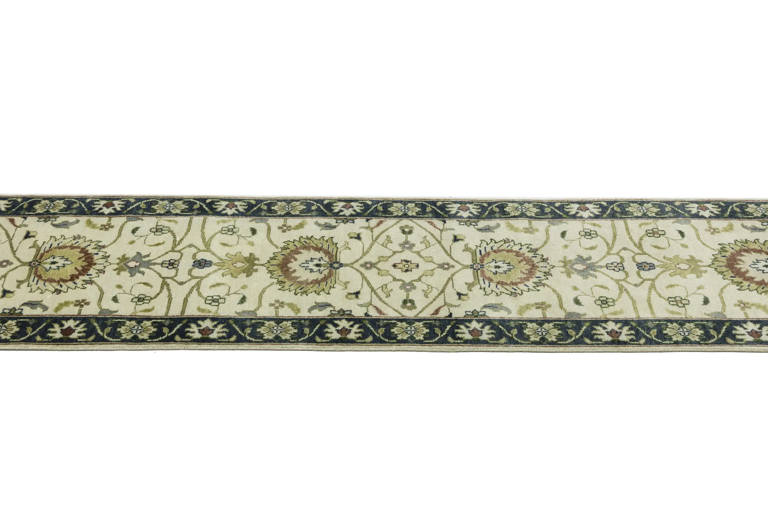 Handmade 2'5X13'4 cream oriental runner made with natural dyes (fine wool pile and cotton foundation), superior knot count, and appealing ancient designs. This Oriental runner never will go out of style and would be among your most valuable treasures.