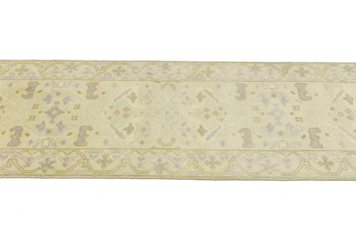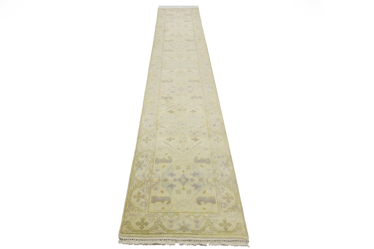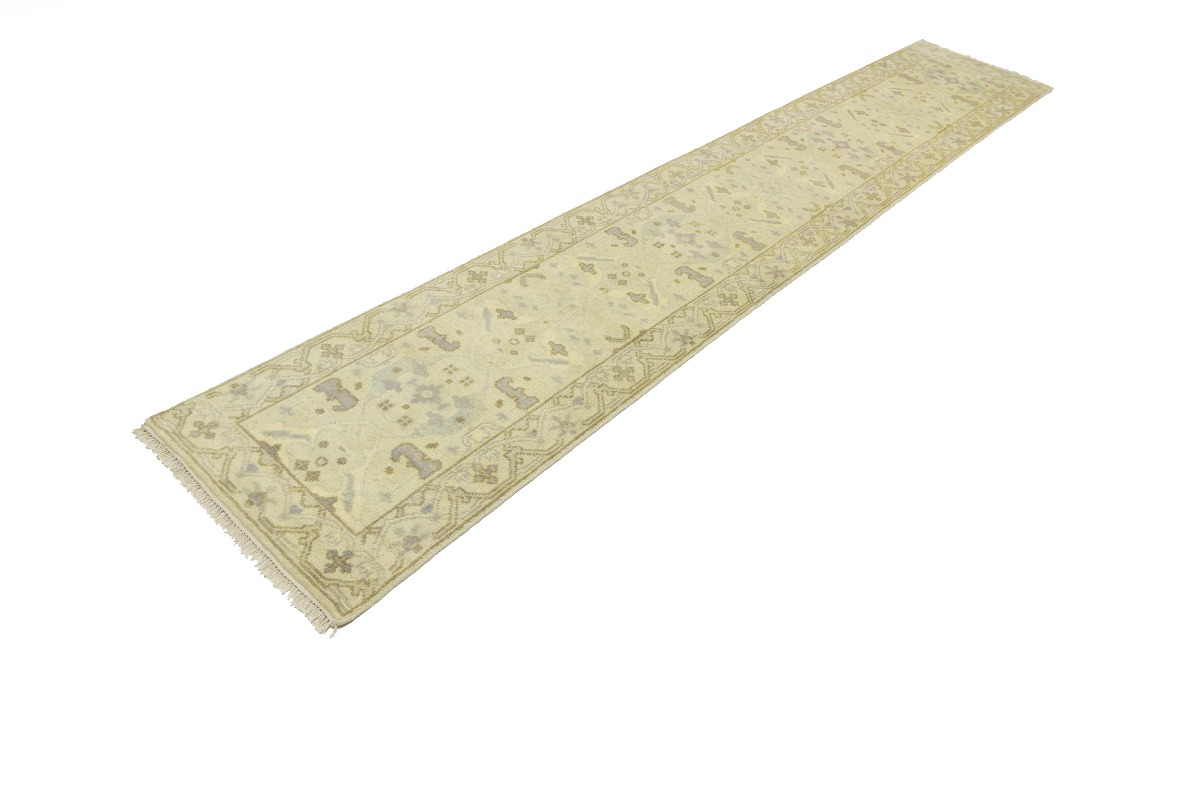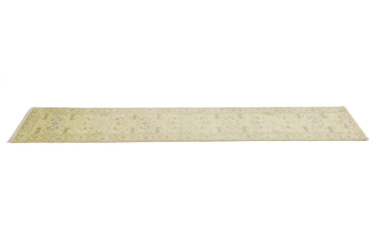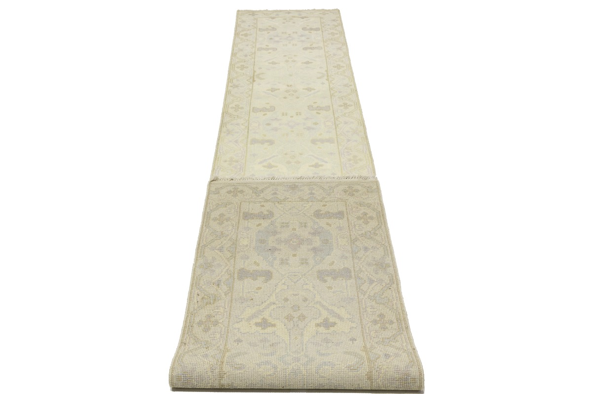 Cream Floral 2'5X13'9 Oushak Chobi Oriental Runner Rug