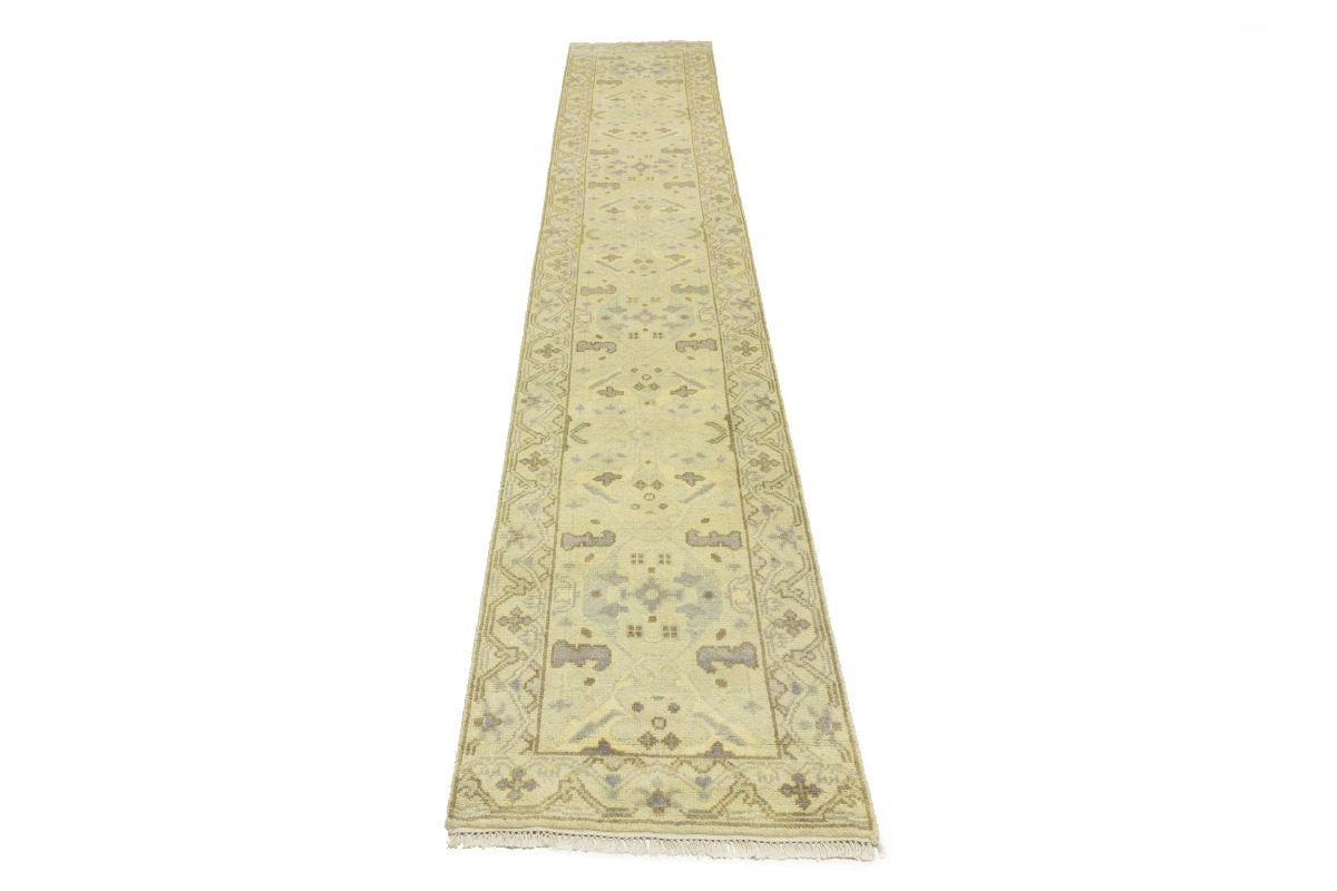 This original 2'5X13'9 cream new Oriental runner was finely knotted by the hands of weavers influenced by a variety of amazing artistic designs, to recreate the aged look of the exceptional piece with a richness of color and embellished background field. What set this vintage style Oriental area runner from the others are the material and dye used (wool pile and cotton foundation), knot count, antique designs, fantastic grades, and its regional historical connection: it has deep roots, from the story of the people who produced it to the meaning of the symbols and colors displayed across its canvas that have been praised for centuries. This Indian home décor carpet will be completely cozy and inviting that never will go out of style! Also, this Oriental rug would be among your most valuable treasures, it is a great investment that increase in value over time, and it will last a lifetime because was woven with high-quality, all-natural wool. Eco-friendly, opulent yet affordable; this runner will give you an extra pop of character to help define your home environment with luxury and warmth that will capture the eyes and attention of your audience (homeowners, designers, decorators, family and friends). OT-7776