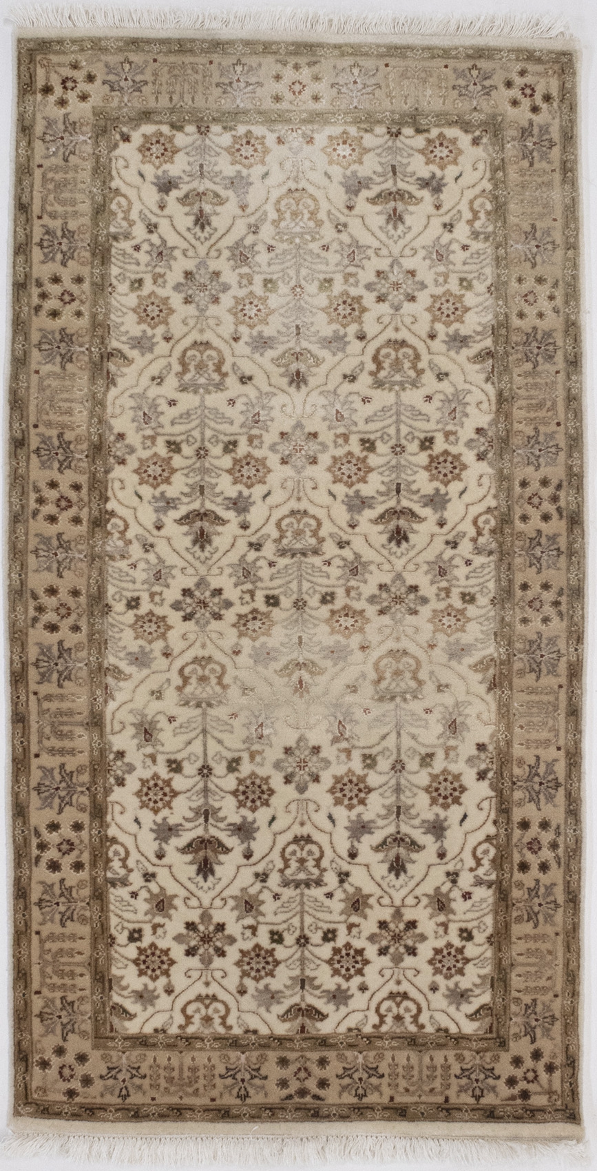 Cream Floral 2'5X4'8 Indo Tabriz Oriental Rug