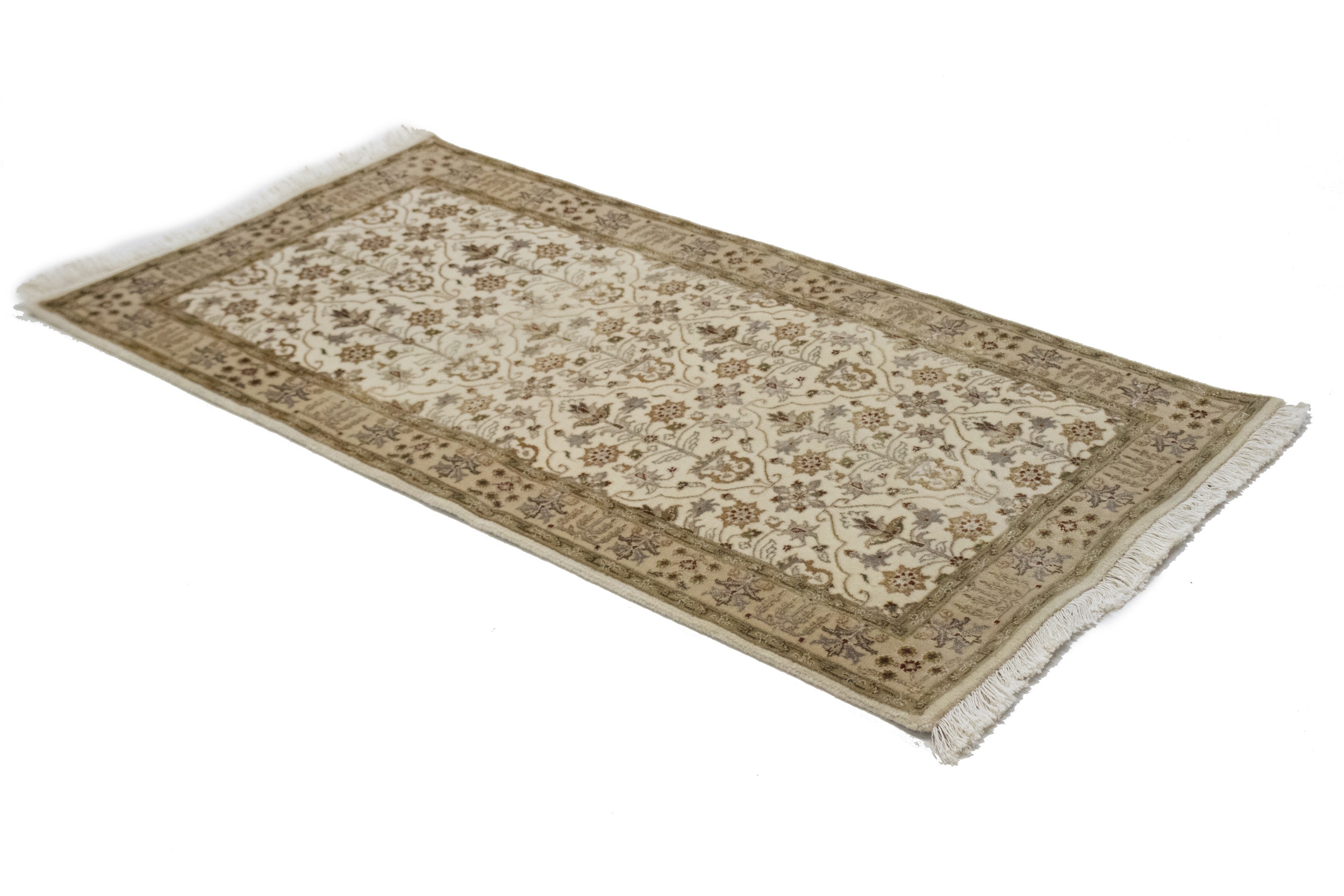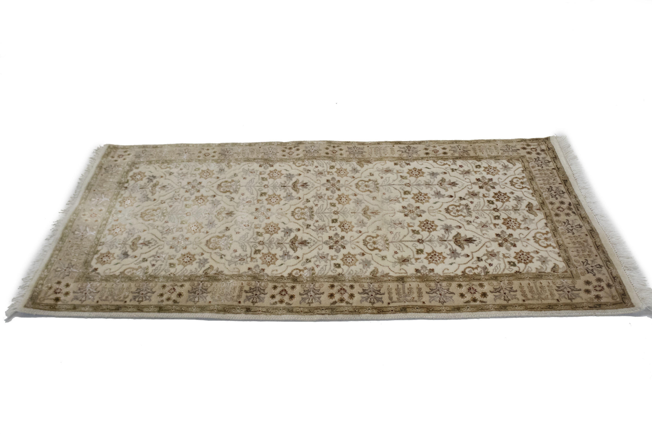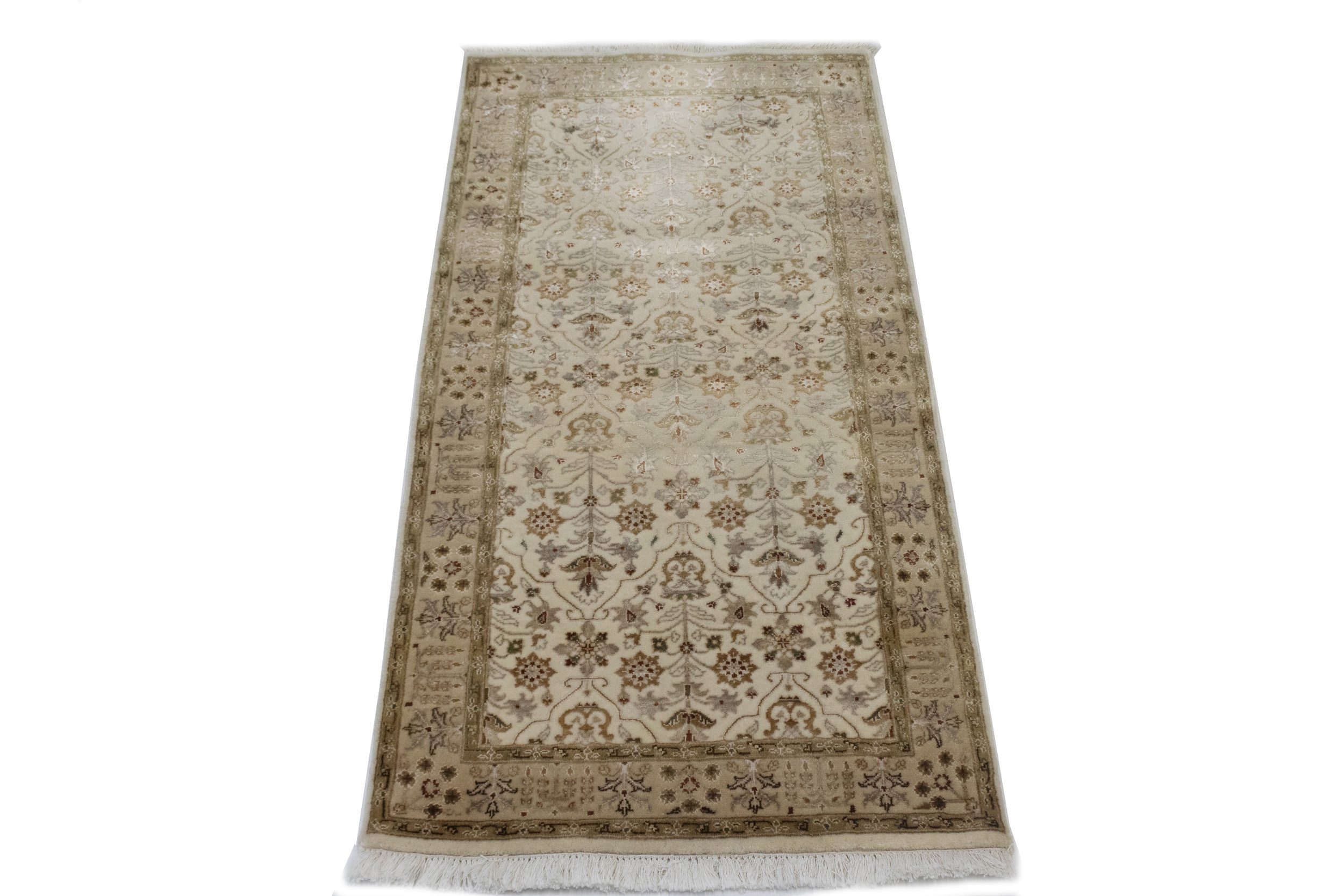 Hand Knotted 2'5X4'8 cream floral Oriental rug made with natural dyes (fine wool pile and cotton foundation), superior knot count, and appealing ancient designs. This Oriental rug never will go out of style and would be among your most valuable treasures.