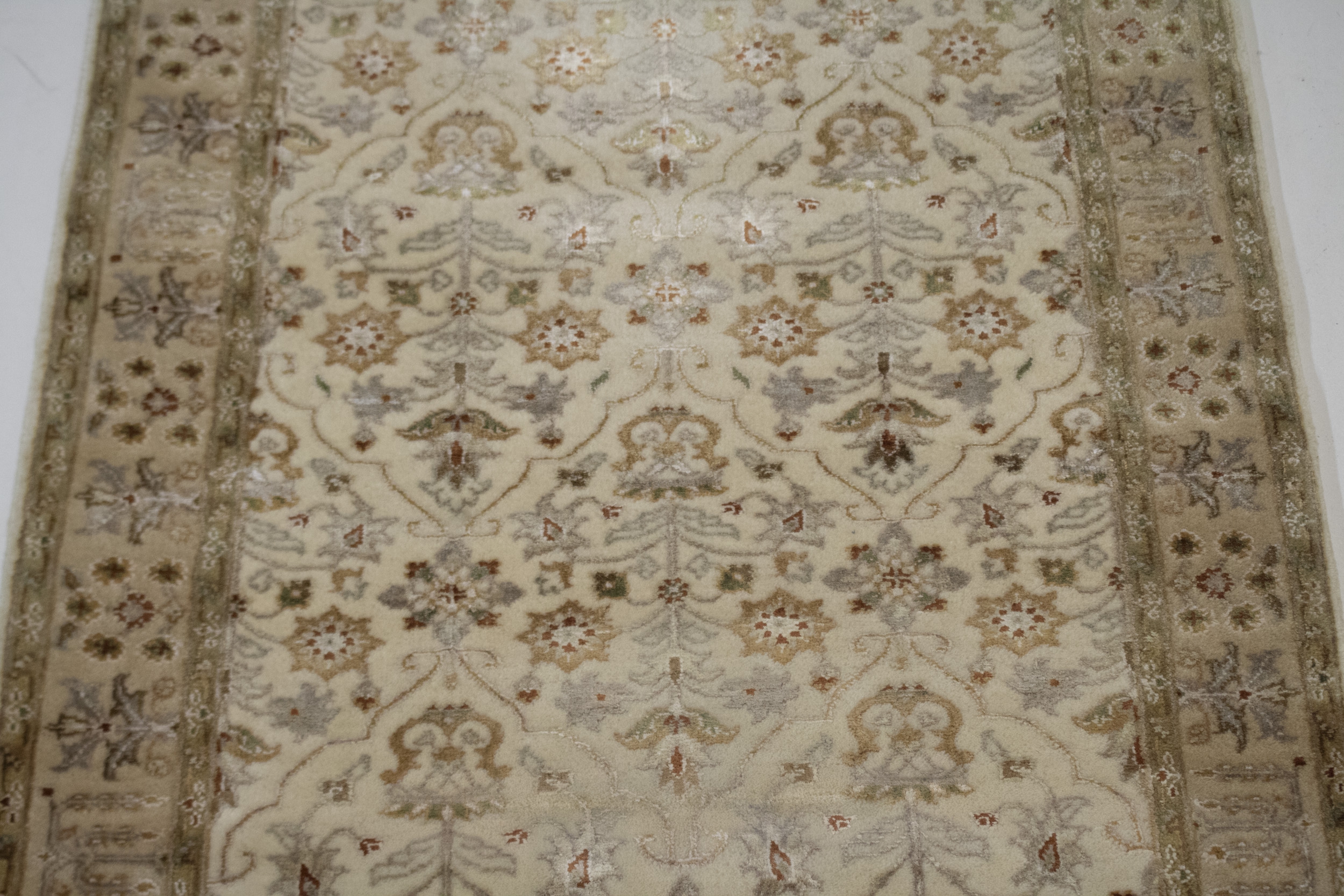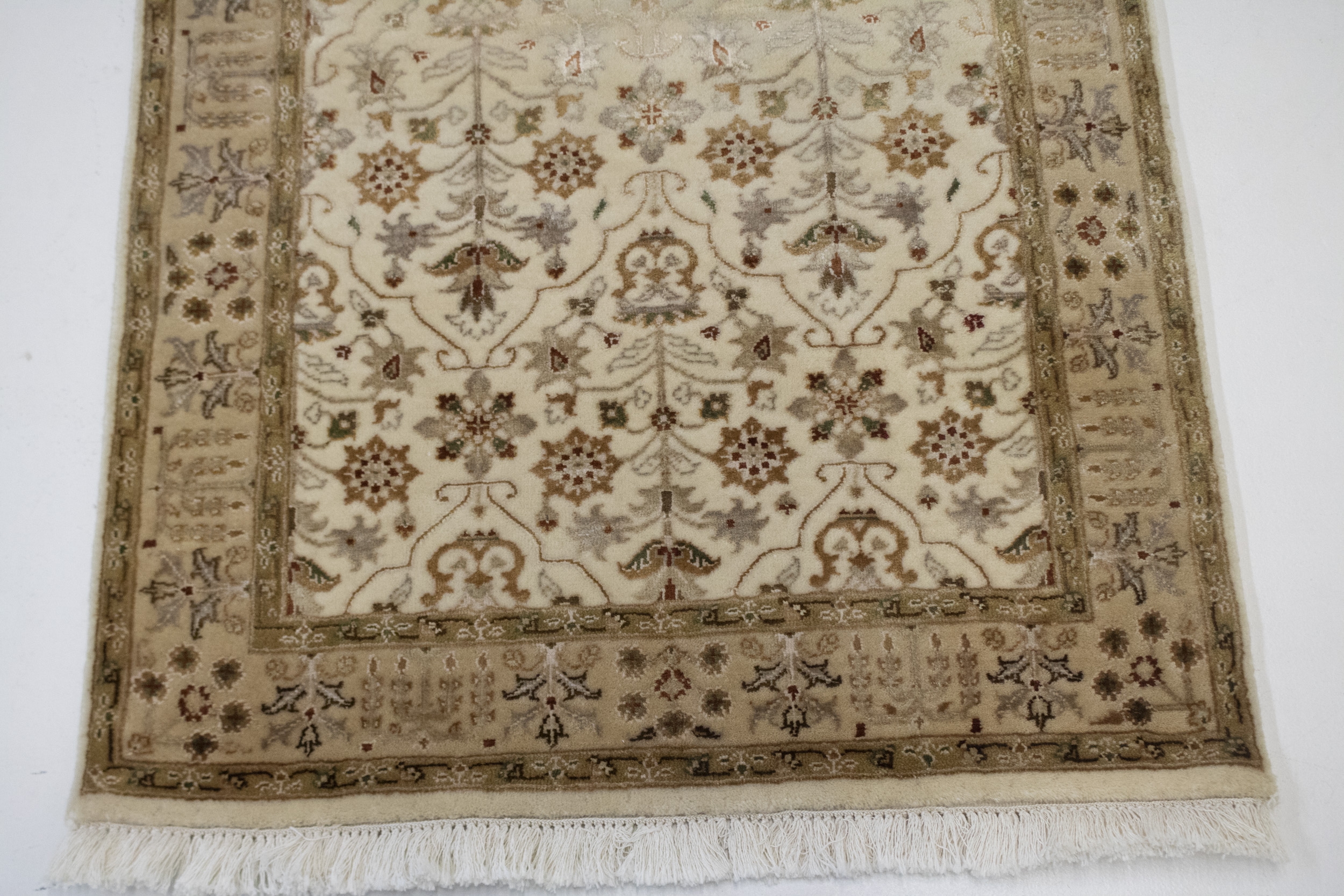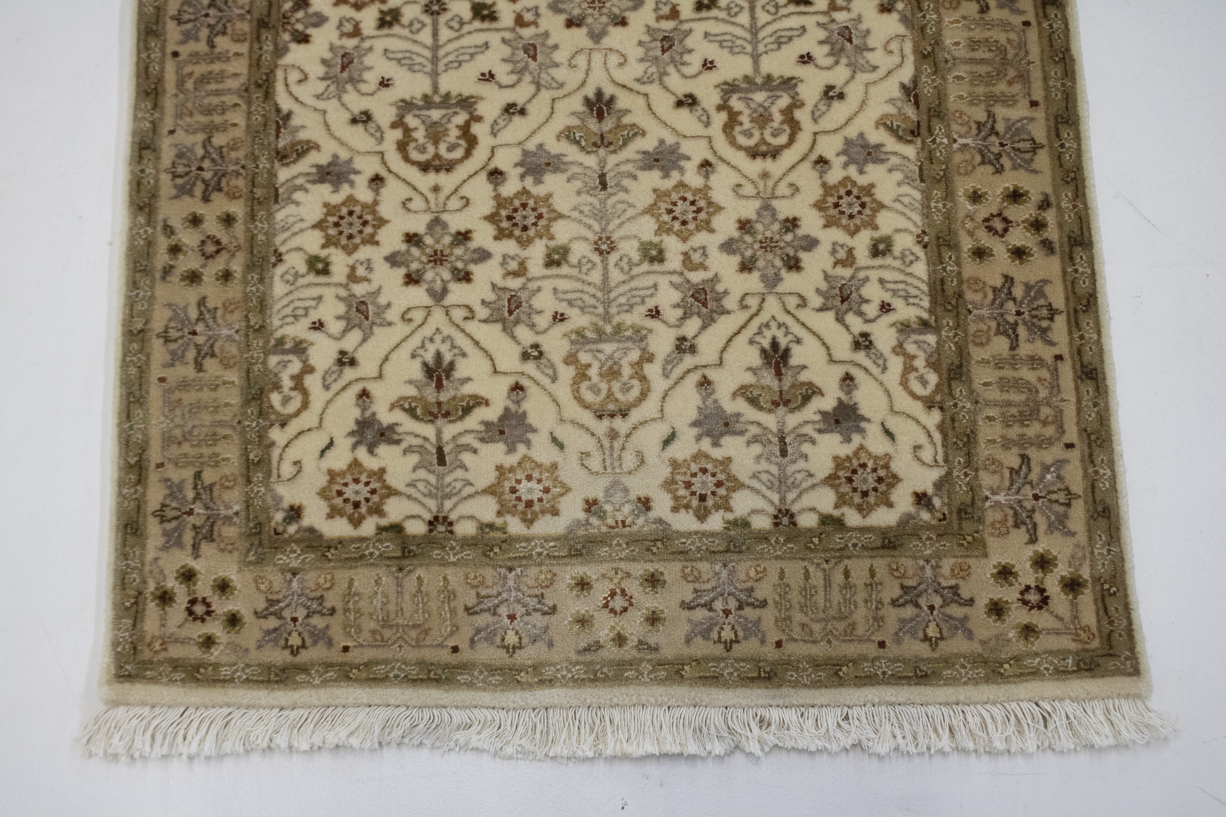 This genuine 2'5X4'8 cream new Oriental rug was well-constructed by the hands of master weavers motivated by a variety of stunning artistic designs, to recreate the aged look of the exceptional piece with a richness of color and developed decorative background field. What set this vintage style Oriental area rug from the others are the material and dye used (wool pile and cotton foundation), knot count, ancient designs, fantastic grades, and its regional historical connection: it has deep roots, from the story of the people who produced it to the meaning of the symbols and colors displayed across its canvas that have been praised for centuries. This Indian home décor carpet will be completely cozy and inviting that never will go out of style! Also, this Oriental rug would be among your most valuable treasures, it is a great investment that increase in value over time, and it will last a lifetime because was woven with high-quality, all-natural wool. Eco-friendly, opulent yet affordable; this rug/runner give you an extra pop of character to help define your home environment with elegance and warmth that will capture the eyes and attention of your audience (homeowners, designers, decorators, family and friends). OT-2146
