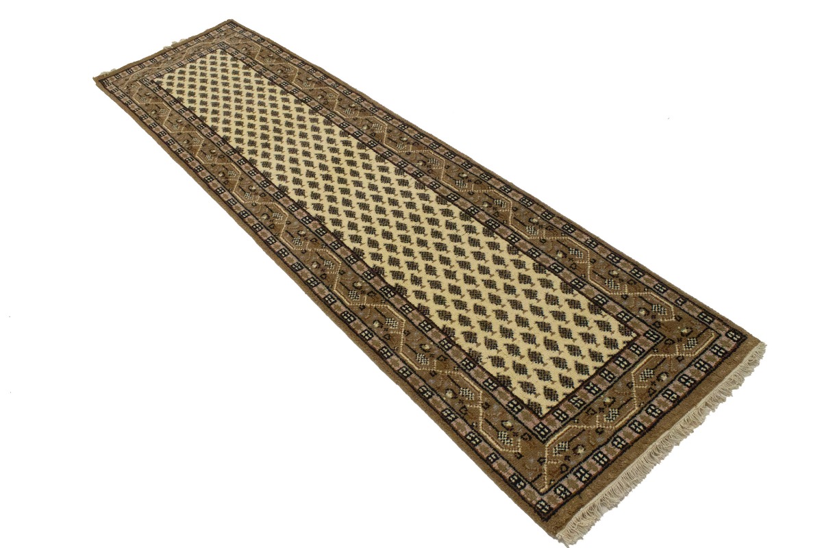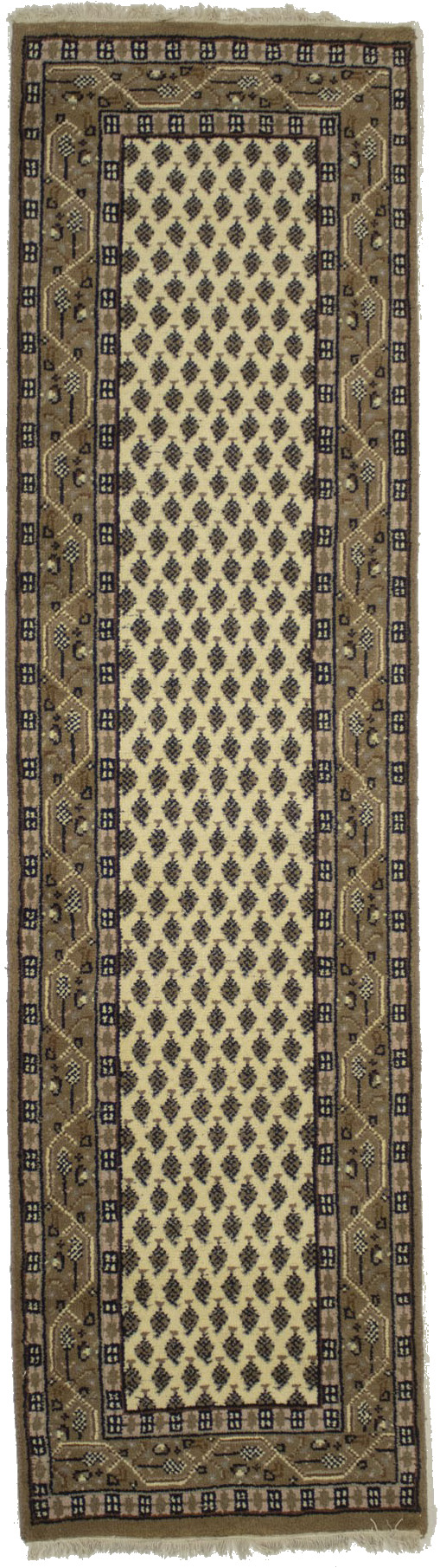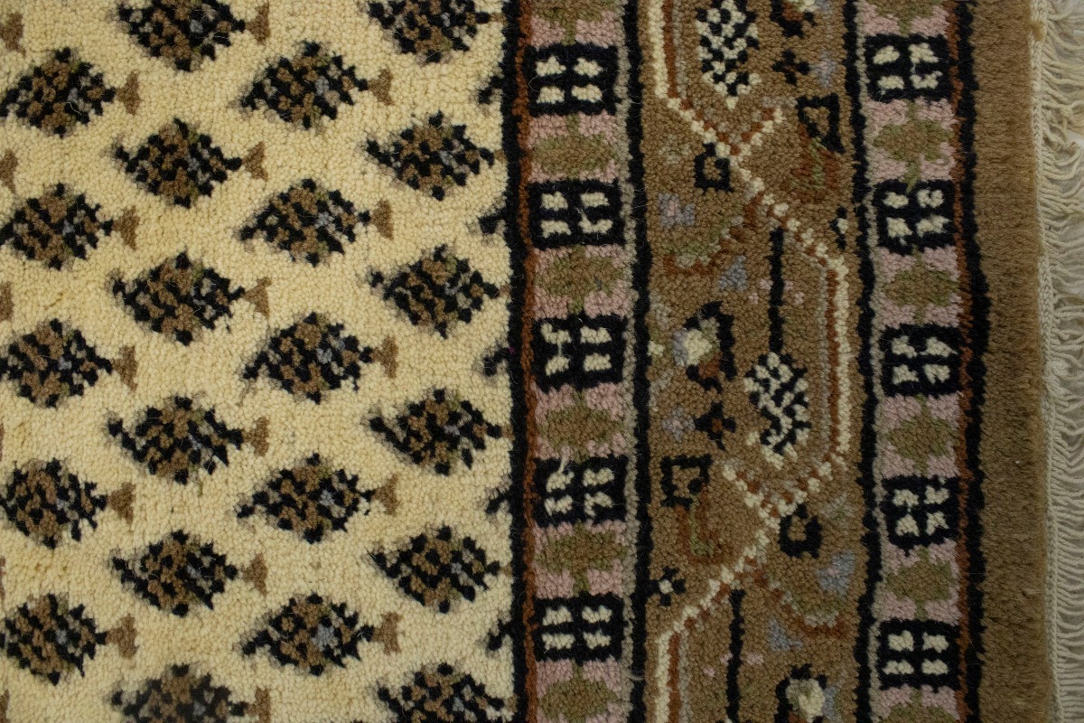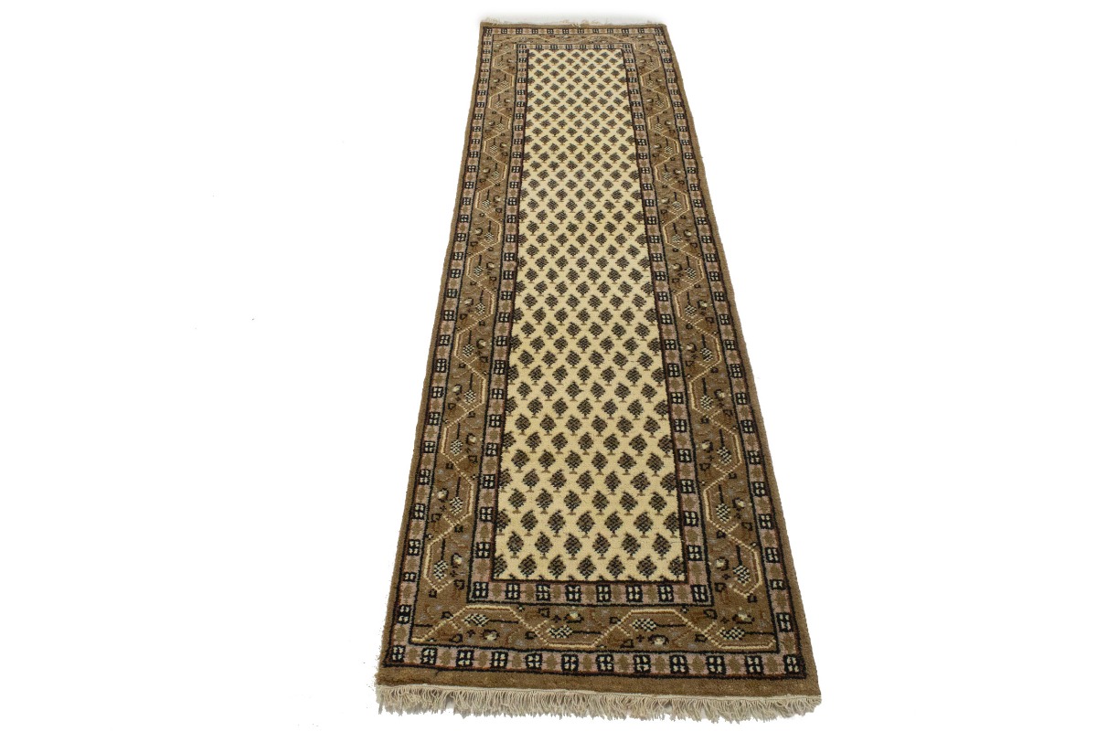 This original 2'5X8'9 cream new Oriental runner was made by the hands of talented weavers influenced by a variety of gorgeous symmetrical artistic designs, to recreate the aged look of the unique piece with a richness of color and very balanced background field. What set this vintage style Oriental area runner from the others are the material and dye used (wool pile and cotton foundation), knot count, antique designs, fantastic grades, and its regional historical connection: it has deep roots, from the story of the people who produced it to the meaning of the symbols and colors displayed across its canvas that have been praised for centuries. This Indian home décor carpet will be completely cozy and inviting that never will go out of style! Also, this Oriental rug would be among your most valuable treasures, it is a great investment that accrues value over time, and it will last a lifetime because was woven with high-quality, all-natural wool. Eco-friendly, opulent yet affordable; this runner will give you an extra pop of character to help define your home environment with sophistication and warmth that will capture the eyes and attention of your audience (homeowners, designers, decorators, family and friends). OT-6535