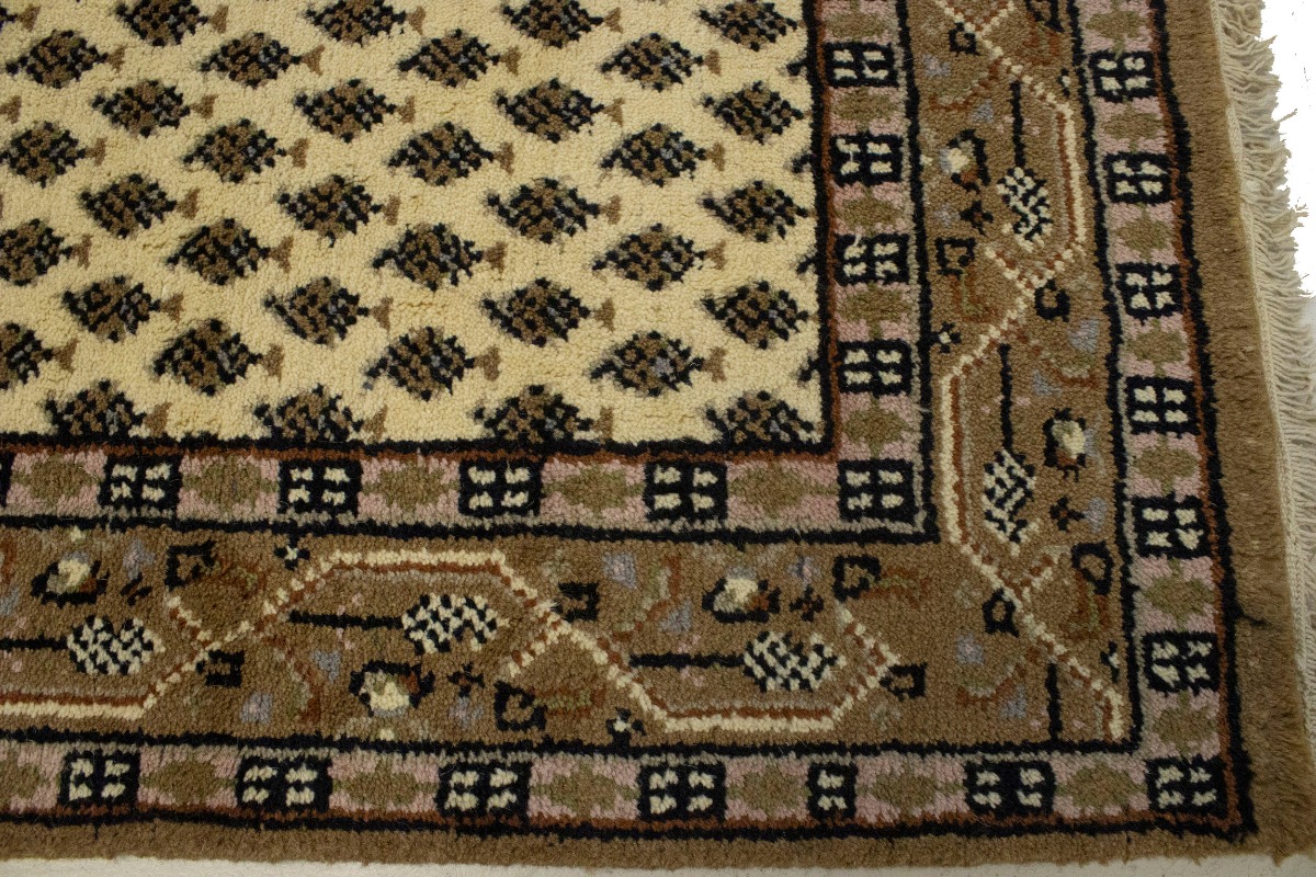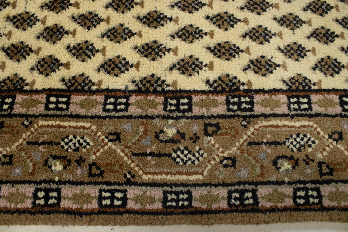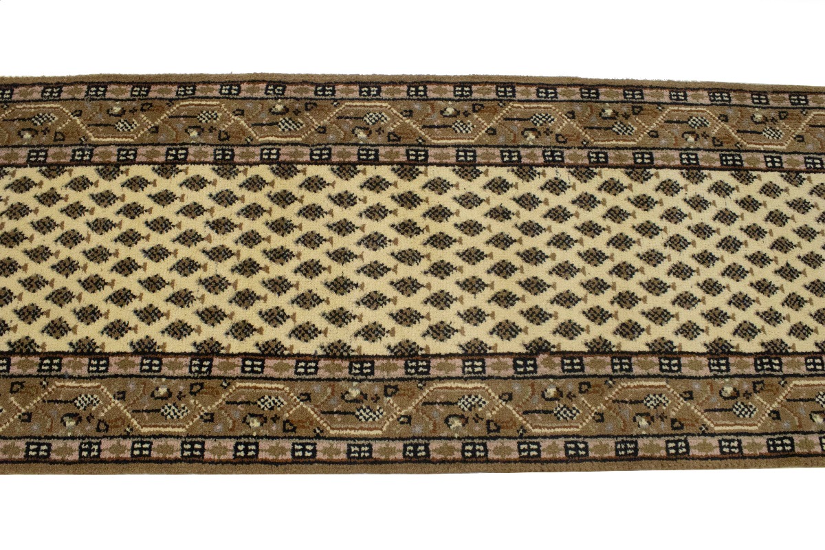 This original 2'5X8'9 cream new Oriental runner was made by the hands of talented weavers influenced by a variety of gorgeous symmetrical artistic designs, to recreate the aged look of the unique piece with a richness of color and very balanced background field. What set this vintage style Oriental area runner from the others are the material and dye used (wool pile and cotton foundation), knot count, antique designs, fantastic grades, and its regional historical connection: it has deep roots, from the story of the people who produced it to the meaning of the symbols and colors displayed across its canvas that have been praised for centuries. This Indian home décor carpet will be completely cozy and inviting that never will go out of style! Also, this Oriental rug would be among your most valuable treasures, it is a great investment that accrues value over time, and it will last a lifetime because was woven with high-quality, all-natural wool. Eco-friendly, opulent yet affordable; this runner will give you an extra pop of character to help define your home environment with sophistication and warmth that will capture the eyes and attention of your audience (homeowners, designers, decorators, family and friends). OT-6535
