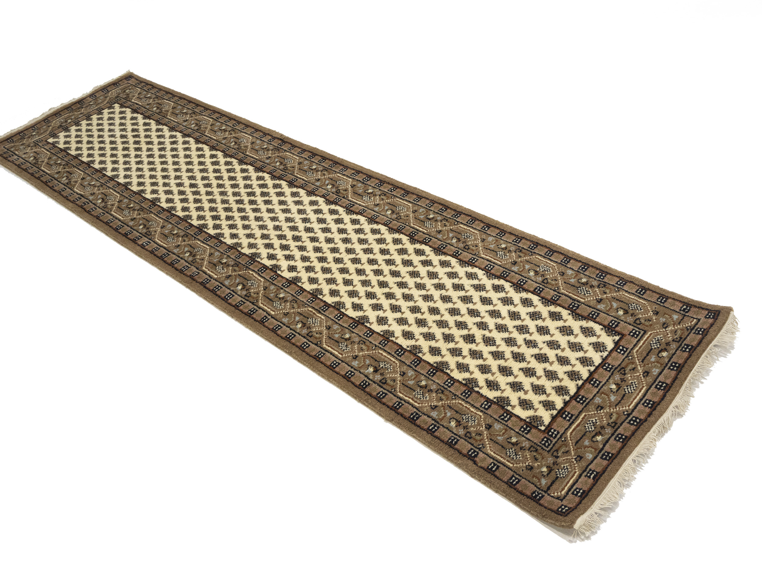 Cream Floral 2'5X9 Indo Botemir Oriental Runner Rug